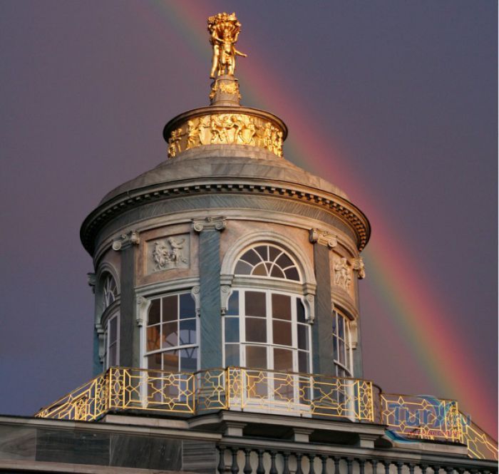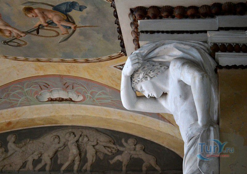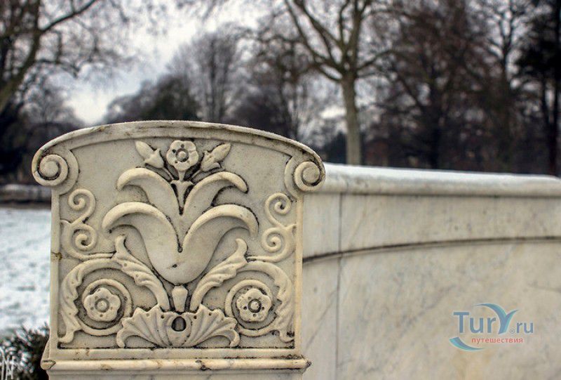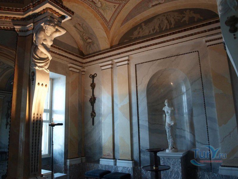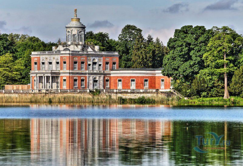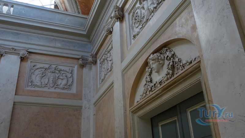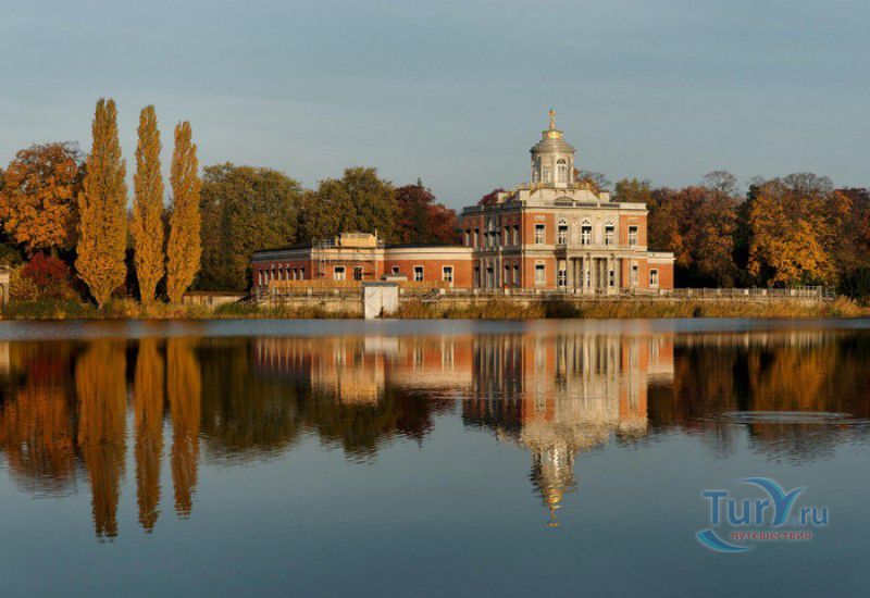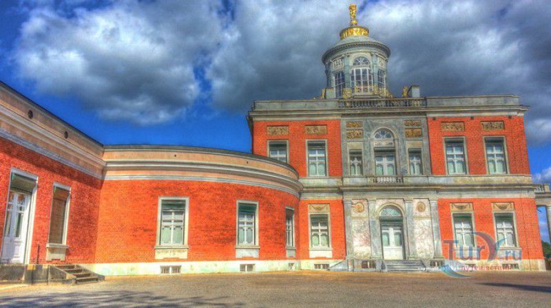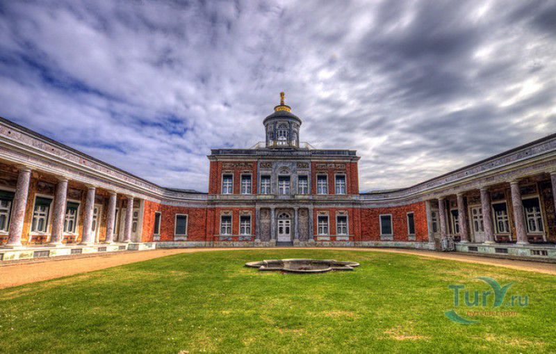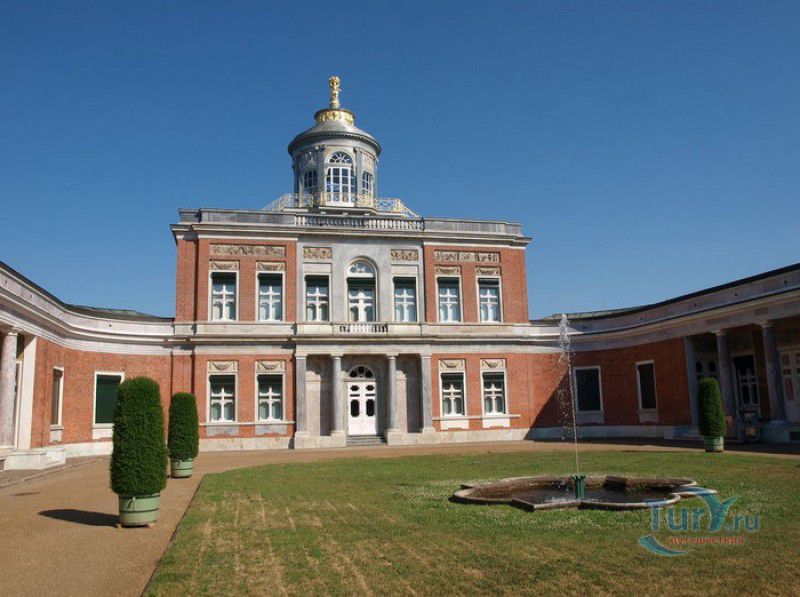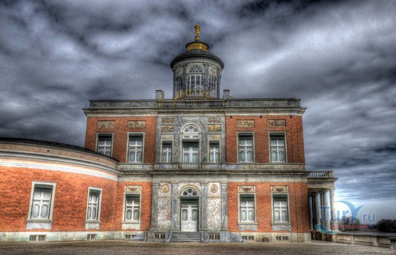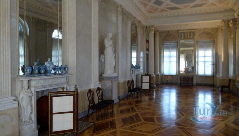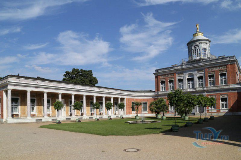 Мраморный Дворец расположен в Потсдаме, в Новом саду, на берегу Святого озера. Дворец был построен в 1787-1793 годах королём Пруссии Фридрихом Вильгельмом II, сменившим на престоле своего дядю - Фридриха II Великого. Фридрих Великий, не имевший детей, проявлял большую заботу о воспитании своего племянника и наследника трона - уже в трёхлетнем возрасте Фридриха Вильгельма забрали в Берлинский дворец, а его воспитание было поручено швейцарскому учёному Николасу де Бегелину. Наследный принц с детства не любил бывать в Сан-Суси, любимой резиденции Фридриха II Великого, где в тишине и уединении король "корпел" над бумагами, занимаясь государственными делами. Фридрих Вильгельм, в отличие от своего дяди-короля, любил развлечения, весёлые пирушки и женщин. Когда Фридрих II умер в 1786 году, Фридрих Вильгельм II не пожелал жить в Сан-Суси. Местом для своей новой летней резиденции он избрал Новый сад, где в 1787 году началось строительство дворца в классическом стиле по проекту архитектора Карла фон Гонтарда. Дворец представляет собой двухэтажное квадратное здание, построенное из красного кирпича. Фасады здания богато украшены силезским серым и белым мрамором - отсюда и название Мраморный дворец. На плоской крыше дворца возвышается ротонда, увенчанная куполом, с неё открывается великолепный вид на Святое озеро и остров Пфауэнинзель (Павлиний остров), на котором в 1794 году Фридрихом Вильгельмом II для встреч со своей фавориткой Вильгельминой Энке, впоследствии графиней Лихтенау, был построен небольшой замок. С террасы дворца, расположенной со стороны озера, к самой воде можно было спуститься по двум боковым лестницам. Здесь располагался лодочный причал, и Фридрих Вильгельм II, большой любитель лодочных прогулок, часто катался по озеру в лодке. К 1790 году внешние работы были практически завершены, и оформление интерьеров дворца было поручено архитектору Карлу Готтгарду Ланггансу. Вестибюль и парадная дворцовая лестница, ведущая на второй этаж, богато отделаны мрамором, украшены скульптурами и барельефами. Рядом с вестибюлем, в восточной части дворца, расположен Гротовый зал, используемый в летнее время в качестве столовой. Его соединял подземный ход с дворцовой кухней, расположенной на берегу озера (здание кухни в виде развалин античного храма также спроектировал Карл Готтгард Лангганс). На первом этаже также располагались личные покои короля, на втором этаже - Восточный кабинет и большой Концертный зал. Для декора внутренних помещений Лангганс использовал мраморные камины, специально изготовленные для Мраморного дворца в Италии, шёлковые обои, драгоценный паркет, разноцветный мрамор, антикварную мебель, античные статуи, картины, керамические вазы, сделанные на английской фабрике Веджвуд, и, даже, старинные часы из дома мадам Помпадур. Всего через несколько лет после завершения строительства Мраморного дворца Фридрих Вильгельм II решил его значительно расширить. В 1797 году по проекту Михаэля Филиппа Боумана слева и справа от главного здания, со стороны сада, было начато строительство боковых флигелей - одноэтажных зданий с галереями, мраморные колонны для которых были взяты из колоннады в парке Сан-Суси. В этом же году скончался Фридрих Вильгельм II, и строительные работы приостанавлены. Завершено строительство дворца было только в 1840-х годах пр