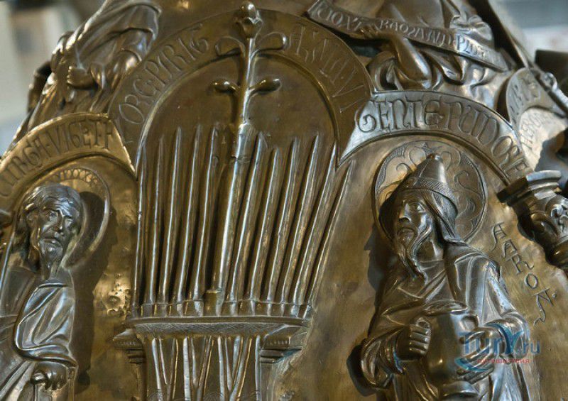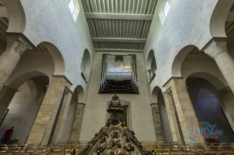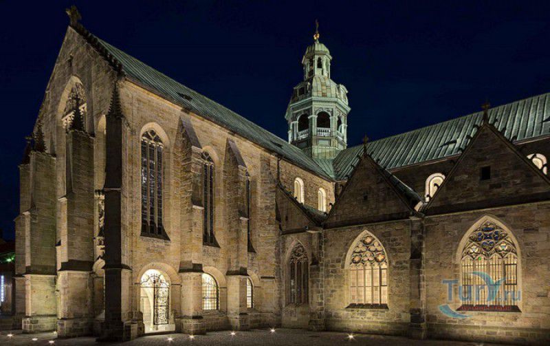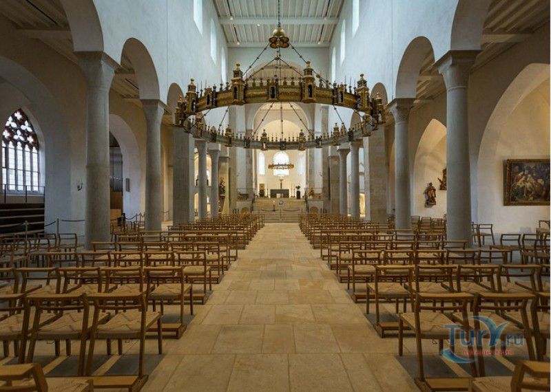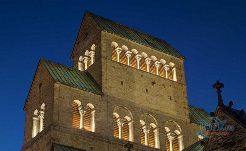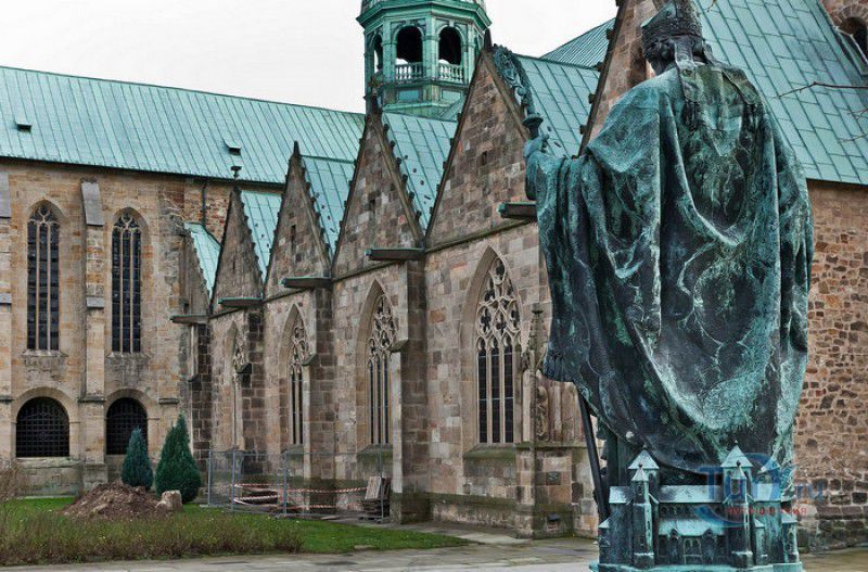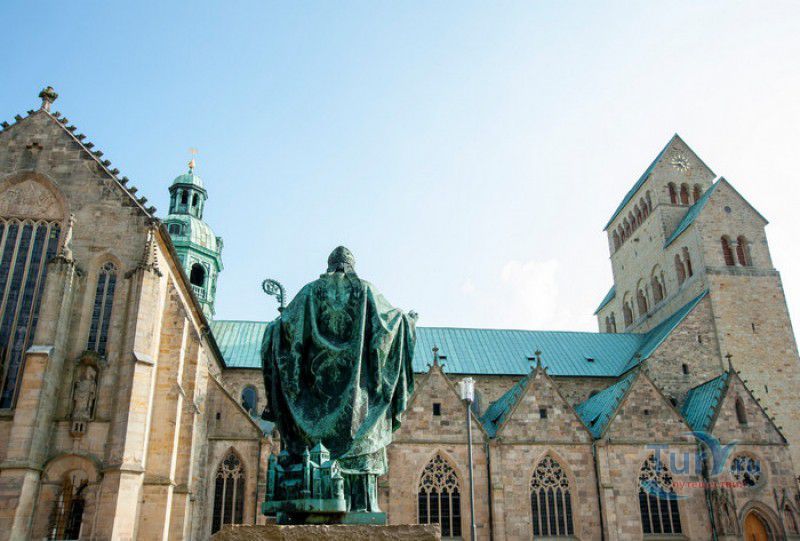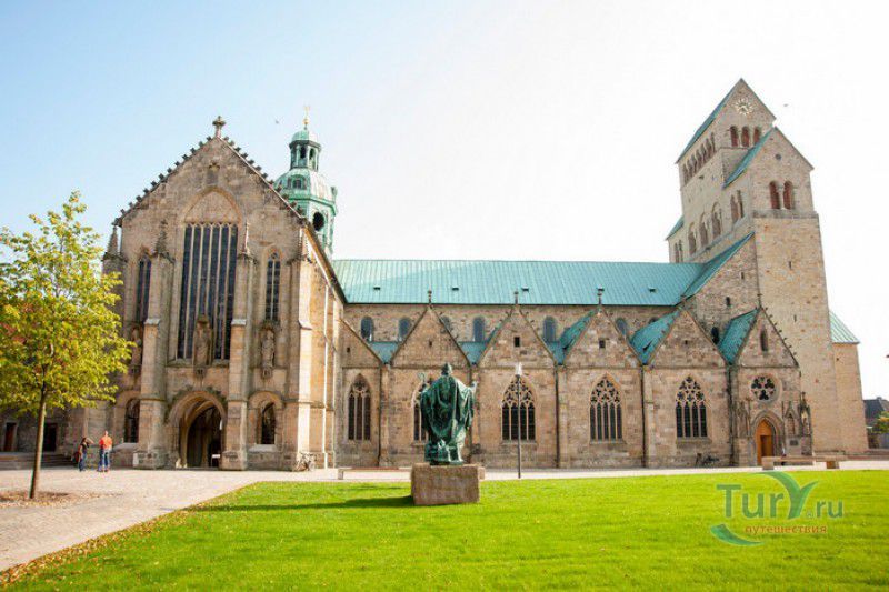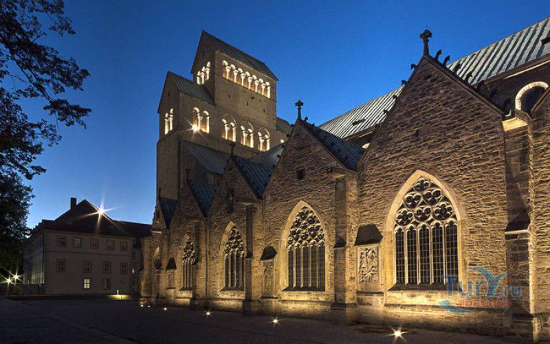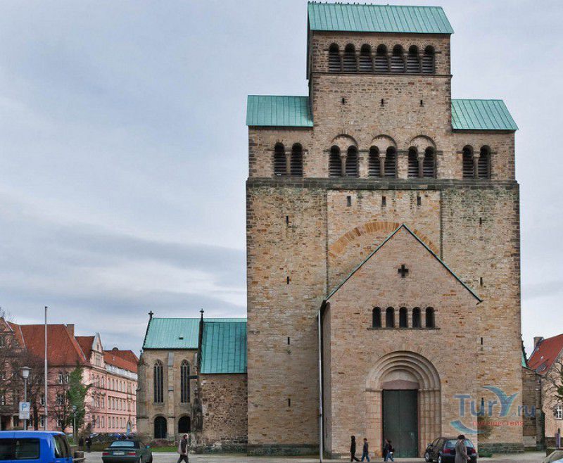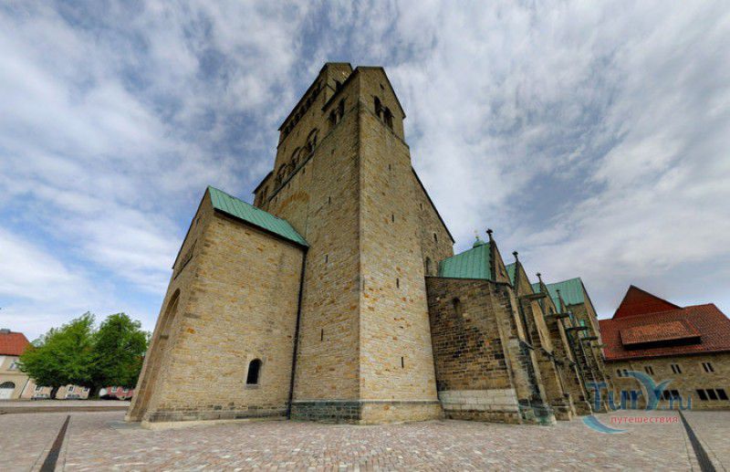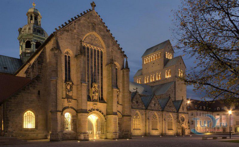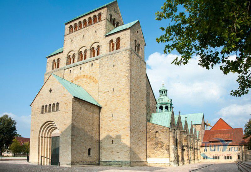 Хильдесхаймский Собор (Кафедральный Собор Вознесения Святой Марии) расположен в Германии, в Нижней Саксонии, в городе Хильдесхайм. Один из старейших соборов Германии ведёт свою историю с 815 года, с даты основания Хильдесхаймского епископства. Существует старинная легенда, согласно которой король Людовик Благочестивый, сын и преемник Карла Великого, отправляясь на охоту, приказал перед её началом отслужить мессу прямо в лесной чаще, для чего на ветку дикой розы был повешен реликварий, посвящённый Божьей Матери. Когда служба закончилась, ковчежец не смогли снять с розового куста. Расценив это как предзнаменование, Людовик основал епископскую кафедру не в Эльце, как планировал, а на месте будущего Хильдесхайма. В месте, где была отслужена месса и рос розовый куст, была построена часовня в честь Святой Марии. Позже, южнее часовни, была построена небольшая базилика с двумя круглыми башнями, освящённая в честь Святой Цецилии, которая выполняла роль собора. В 872 году, при епископе Альтфриде, на месте часовни и базилики был возведен Собор Вознесения Святой Марии - романская крестообразная трёхнефная базилика с двухэтажным вестверком (монументальным западным фасадом, расположенным перпендикулярно главному нефу). В 993-1022 годах главой епископства был Бернвард Хильдесхаймский, вошедший в историю не только как святой, но и как основатель знаменитой хильдесхаймской школы искусств, из которой вышли выдающиеся живописцы, скульпторы, золотых дел мастера и книгооформители. К эпохе Бернварда относятся два главных художественных сокровища Хильдесхаймского собора, изготовленные лично Святым Бернвардом - "Колонна Христа", отлитая из бронзы по образцу знаменитой римской колонны Траяна, и "Врата Бернварда" - массивные бронзовые двери с изображением сцен из Священного писания, которые и сейчас можно увидеть в соборе. В 1046 году собор сильно пострадал от вспыхнувшего в нём пожара, при его восстановлении были использованы фундамент и остатки стен здания времён Альтфрида. Новый собор был освящён 5 мая 1061 года. В дальнейшем собор неоднократно расширялся и перестраивался, в готический период с северной и южной сторон храма были пристроены боковые приделы, в 1708-1731 годах интерьер собора был оформлен в стиле барокко, а в XIX веке первоначальный романский фасад был заменён на неоготический с двумя башнями. 22 марта 1945 года Хильдесхаймский собор был практически полностью разрушен во время массированных бомбёжек города. В 1950-1960 годах собор был заново отстроен, при этом зданию был возвращён его раннероманский вид - сохранена структура территории, которая была при епископе Бернварде Хильдесхаймском, крытая галерея соответствует 1150 году, крипта восстановлена в том виде, какой она имела в 1061 году. В 2010-2014 годах в соборе была проведена полномасштабная реконструкция, а в апреле 2015 году свои двери посетителям открыл обновлённый Музей Хильдесхаймского собора, в котором представлены произведения сакрального искусства, церковная утварь и реликвии собора - усыпальница святого Епифания, статуя "Большой Золотой Мадонны" времён Бернварда, реликварий святого Освальда, реликварий Cuneiform Reliquary с мощами Пресвятой Богородицы, святых Космы и Дамиана, мучеников Кантиуса и Панкратия, три золотых дисковых креста XII века, реликварий Волхвов и многие другие. Ещё одно сокровище 