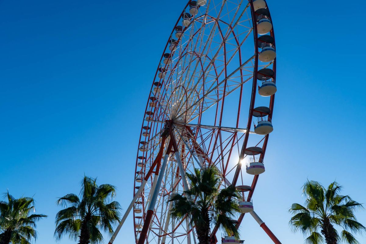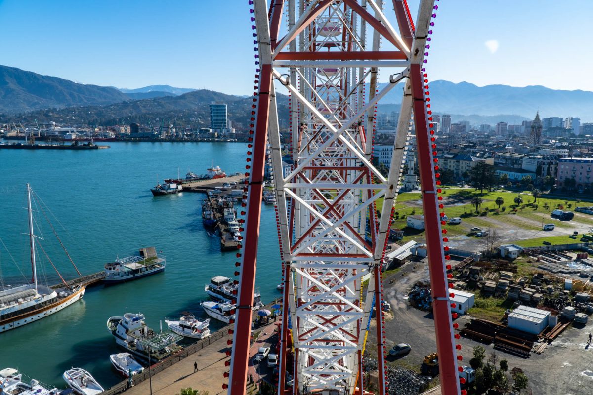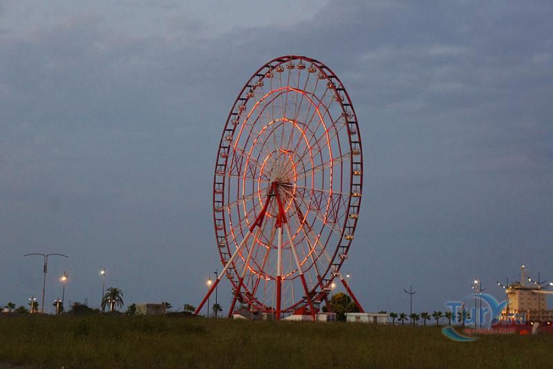 Окинуть взглядом великолепие курортного города Батуми и насладиться видами моря с высоты птичьего полета можно с помощью современного колеса обозрения, построенного на побережье Черного моря. В кабинке колеса можно уединиться возлюбленным и полюбоваться на открывающиеся красоты.