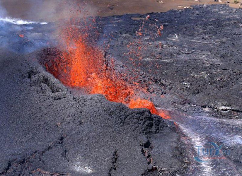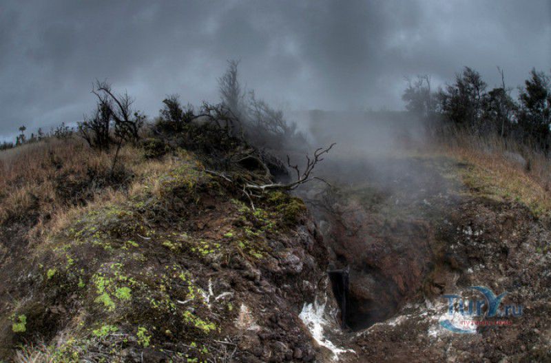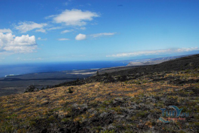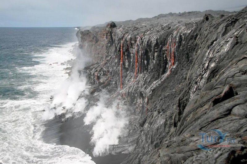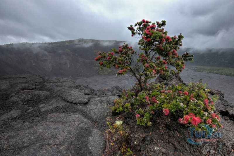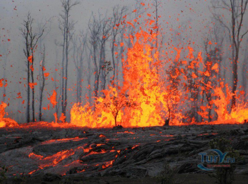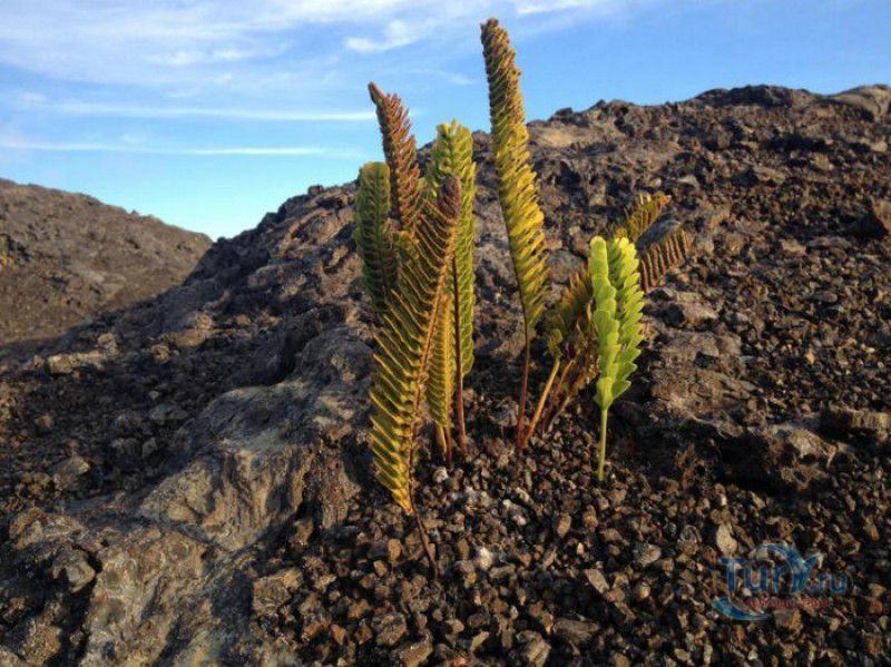 Национальный Парк Гавайские Вулканы расположен на юго-востоке острова Гавайи, в 48 километрах к юго-западу от города Хило. Парк Гавайские Вулканы - одно из немногих мест на планете, где можно вблизи увидеть множество гейзеров, выбрасывающих тонны вулканических газов, наблюдать за потоками раскалённой лавы и бурлящими лавовыми озёрами, а также стать свидетелем одного из самых завораживающих зрелищ - извержения вулканов. Парк Гавайские Вулканы был создан в 1916 году, он занимает территорию площадью 1308 квадратных километров, на которой расположены один из самых больших на Земле действующих вулканов - Мауна-Лоа (его высота над уровнем моря - 4169 метров, а общая высота, с учётом подводной части, - 9170 метров) и один из самых активных вулканов на планете - Килауэа (1247 метров над уровнем моря). Первое извержение Мауна-Лоа произошло около 700 000 лет назад, последнее - в 1984 году, а Килауэа, самый молодой из Гавайских вулканов, активен постоянно с момента своего образования. Последнее его извержение, начавшееся в 1983 году, продолжается и по сей день, в 2008 году оно перешло в фазу интенсивной активности - из кратера Халемаумау, расположенного в центре кальдеры Килауэа, постоянно выделяются вулканические газы, выбрасываются столбы вулканического пепла и непрерывно стекают в океан потоки раскалённой лавы. Следствием постоянной вулканической активности на протяжении тысячелетий стало большое разнообразие ландшафтов и экосистем парка - бесплодные пустыни, покрытые застывшей лавой, шлаковые конусы, пещеры, реки и озёра из расплавленной лавы, участки вечнозелёных влажных тропических лесов и пляжи из чёрного песка на океаническом побережье. В зимний период вершина Мауна-Лоа часто покрыта снегом, при этом на побережье острова температура никогда не опускается ниже + 20° С. Такое разнообразие экосистем и природных зон способствовали появлению на территории парка большого количества видов животных и растений, значительная часть которых являются эндемиками острова. В парке произрастают 36 видов редких или находящихся под угрозой исчезновения видов растений, в числе которых знаменитые Гавайский древовидный папоротник, древовидный "колокольчик" Клермонтия пелеана - растение, почти исчезнувшее в дикой природе, и Метросидерос - кустарник с большими ярко-красными цветами. В парке обитают 23 эндемичных вида птиц, в том числе огненная гавайская цветочница, гавайский гусь, гавайский буревестник и гавайский ястреб. На территории парка водятся плотоядные гусеницы, огромные стрекозы, улыбающийся паук, в прибрежных водах можно встретить находящуюся под угрозой исчезновения черепаху бисса. А вот млекопитающие в парке представлены всего одним видом летучих мышей. Среди исторических и археологических памятников парка Гавайские Вулканы самой известной является долина петроглифов Пуу Лоа, расположенная на южном склоне вулкана Килауэа. Пуу Лоа представляет собой огромное поле, состоящее из 23 000 рисунков (прямых линий, геометрических фигур, концентрических колец, изображений людей и животных), высеченных гавайскими аборигенами в застывшей лаве более 200 000 лет назад. Через поле петроглифов проложен деревянный настил, по которому посетители, желающие увидеть загадочные рисунки, могут отправиться в поход по долине Пуу Лоа. Ещё один интересный объект парка - окаменел