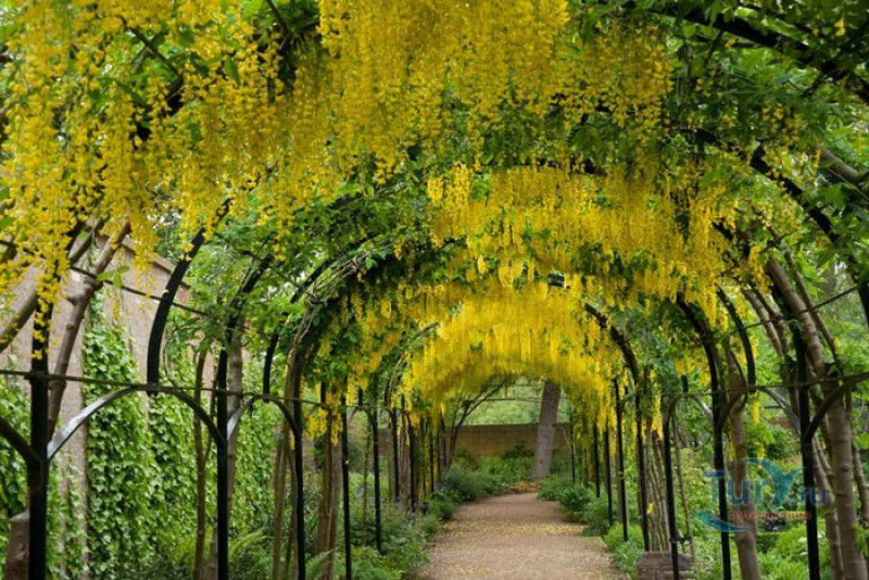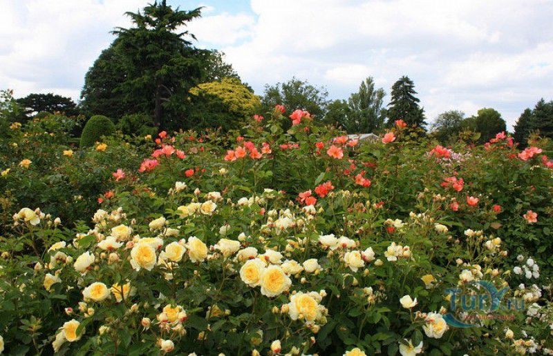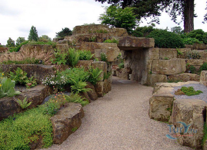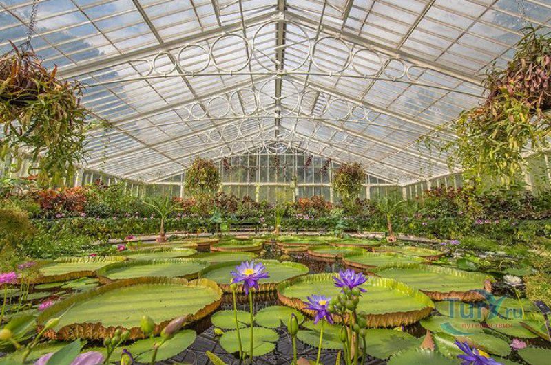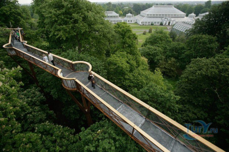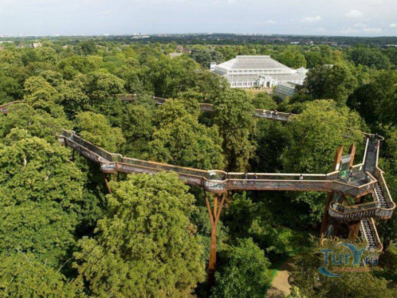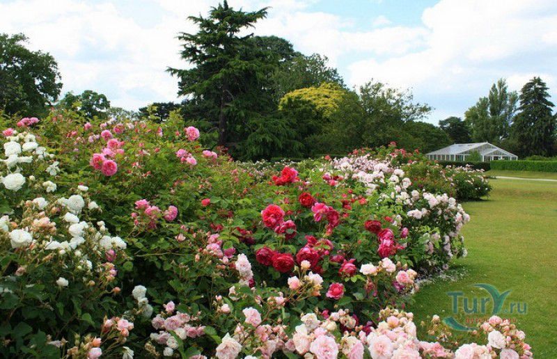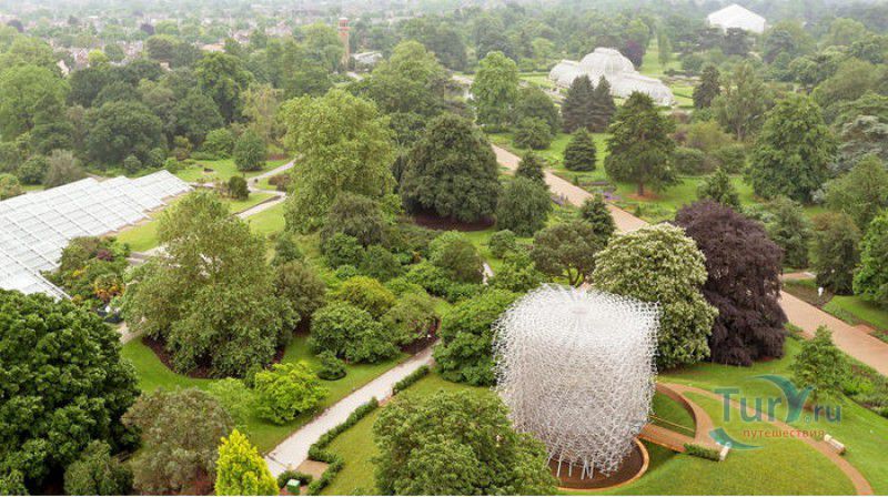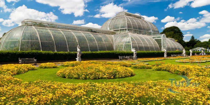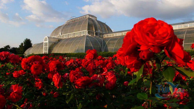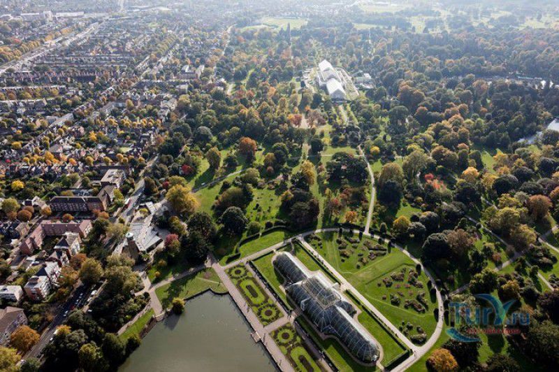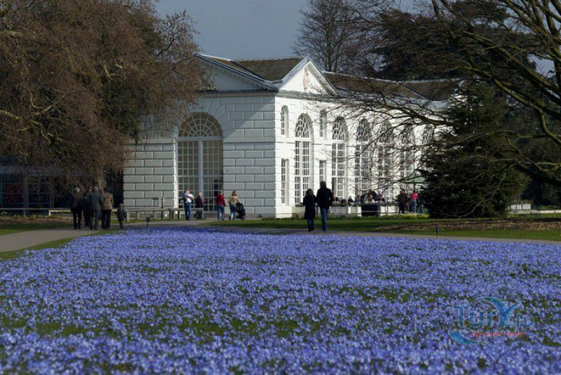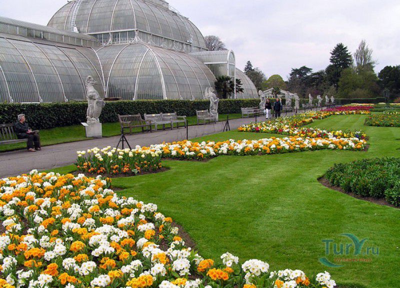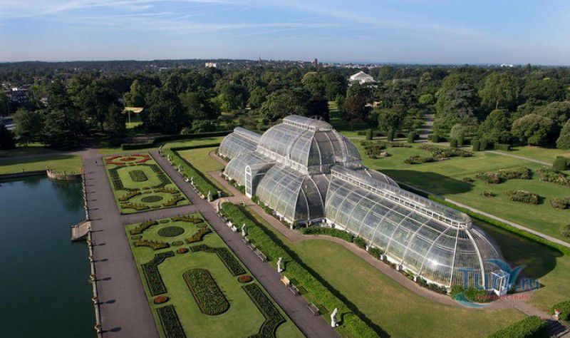 Королевские Ботанические Сады Кью (Сады Кью) расположены в Великобритании, в юго-западном пригороде Лондона, между Ричмондом и Кью, на южном берегу Темзы. Сады Кью занимают территорию площадью 120 гектаров, на которой произрастают более 30 000 видов растений со всего мира. Гербарий, собранный сотрудниками сада, является одним из крупнейших в мире и насчитывает более 7 000 000 образцов растений. Один из самых красивых и больших ботанических садов Англии был основан в 1759 году принцессой Августой, вдовствующей принцессой Уэльской. При ней в поместье Ричмонд-Лодж, унаследованном принцессой после смерти супруга, принца Фредерика, был заложен "экзотический сад" площадью 3,6 гектаров и создан питомник для выращивания деревьев и кустарников. Принцессой Августой был приглашён известный архитектор Уильям Чемберс, под руководством которого в её саду были построены 25 садовых зданий, из которых до наших дней сохранились лишь пять - оранжерея, храм Аретузы, храм Беллоны, разрушенная арка и 49-метровая китайская пагода. После смерти Августы в 1772 году поместье перешло к Георгу III. Королём был приглашён ландшафтный архитектор Ланселот Браун, который провёл полную перепланировку садов и значительно расширил их плошадь. В 1802 году Уайт-хаус (бывший дом принцессы Августы) был снесен, а на его месте возведен дворец Кью, ставший загородной королевской резиденцией. В это же время королевская резиденция в Кью и Ричмонд-Лодж были объединены в одно большое поместье. Коллекция растений Садов Кью стала стремительно пополняться новыми видами после привлечения Георгом III к работе над созданием ботанического сада сэра Джозефа Бэнкса - известного английский натуралиста, ботаника и географа, президента Королевского общества по развитию знаний о природе. В 1779 году для него даже была утверждена должность - Советник короля по Королевским ботаническим садам Кью. Джозефом Бэнксом были организованы экспедиции в Австралию, на Азорские острова и Канарские острова, в Китай, Африку, Индию и на острова Вест-Индии с целью сбора видов экзотических растений для Садов Кью. В 1840 году Сады Кью получили статус Национального ботанического сада, первым официальным директором Королевских ботанических садов Кью в марте 1841 года был назначен сэр Уильям Хукер, профессор ботаники Университета Глазго. При нём территория садов увеличилась до 30 гектаров, а площадь дендрария составила 109 гектаров. В это время в саду был создан научный исследовательский центр, основана библиотека, которая в наши дни насчитывает более 750 тысяч книг по ботанике и около 175 тысяч рисунков растений, а также было начато создание гербария. В 1844-1848 годах была построена Пальмовая оранжерея (Palm House). Оранжерея выполнена из стекла и кованой стали по проекту архитектора Децимуса Бертона при участии инженера-металлурга Ричарда Тернера. Позже в саду были построены оранжерея "Дом умеренного климата", оранжерея "Дом кувшинок", в которой выращивают самую большую в мире водяную лилию - Викторию Амазонскую, и оранжерея принцессы Уэльской, торжественно открытая в 1987 году принцессой Дианой. В этой оранжерее можно увидеть большое количество видов орхидей, суккулентов, кактусов, плотоядных растений и бромилиевых. В ботаническом саду есть также Альпийский домик, Галерея ботанического искусства Ширли Шервуд, Галерея Марианны Норт,