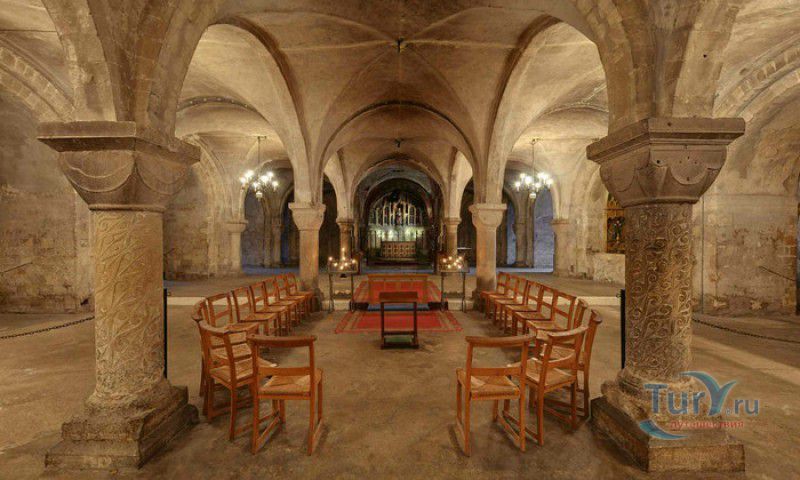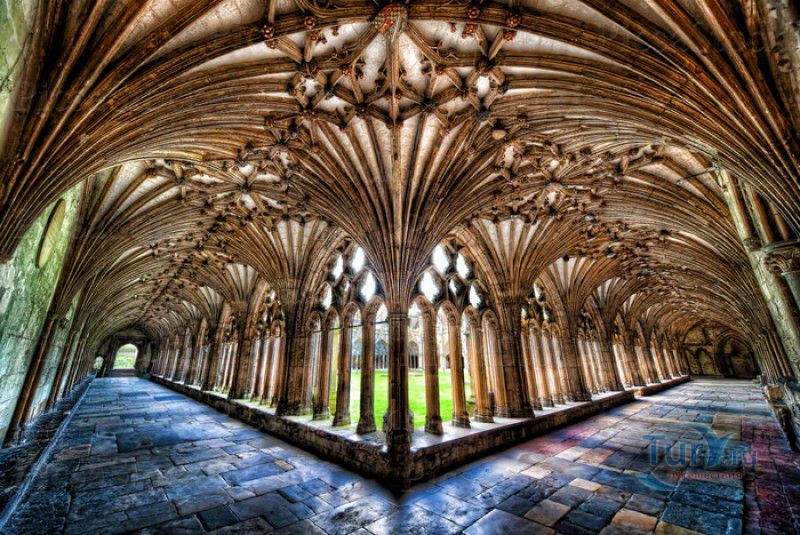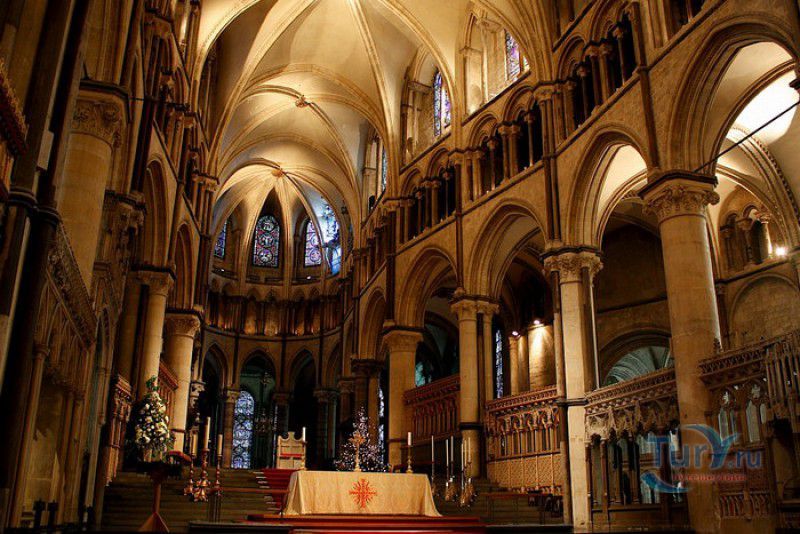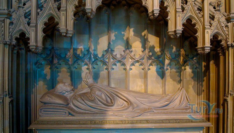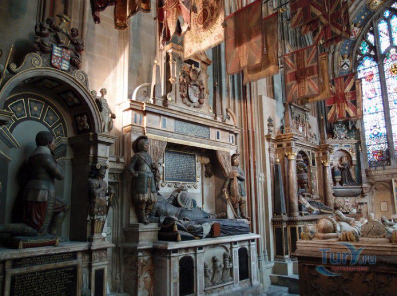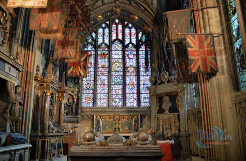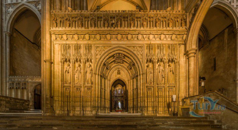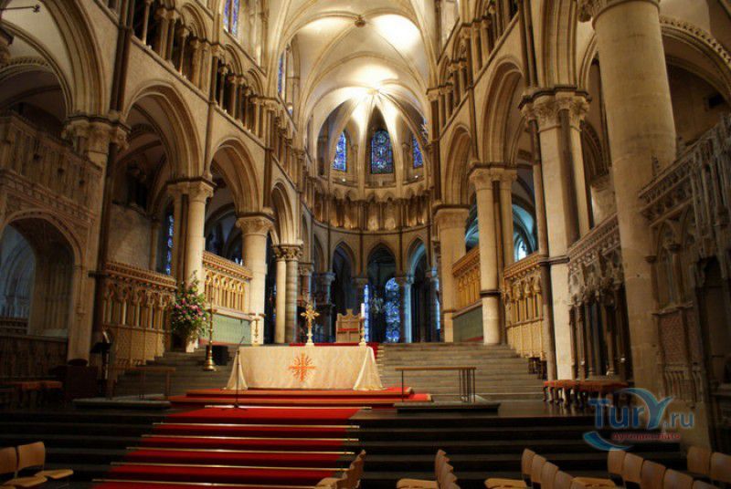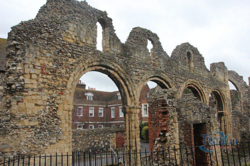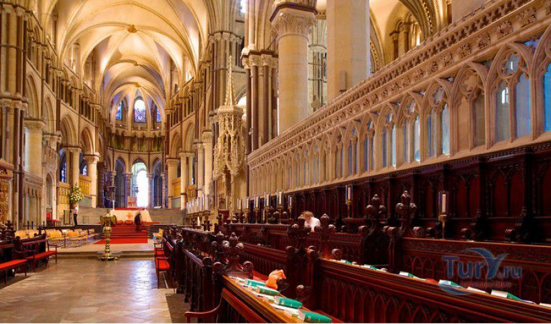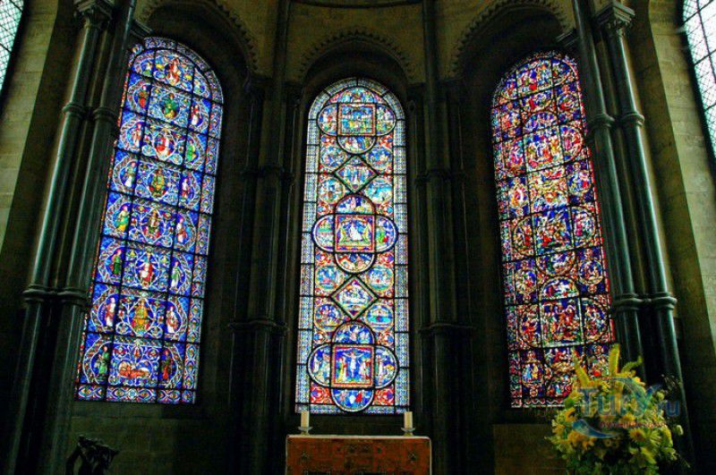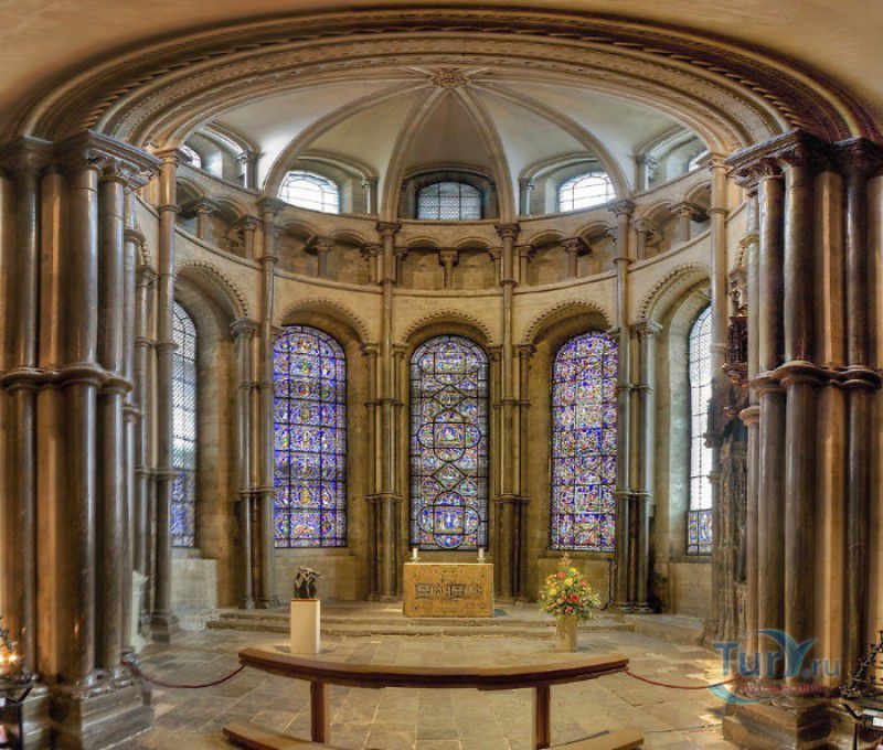 Кентерберийский Собор - главный англиканский храм Великобритании, расположен на юго-востоке Англии, в графстве Кент, в центре города Кентербери. Собор был основан в 597 году Блаженным Августином, будущим первым архиепископом Кентерберийским, прибывшим в Кент в качестве миссионера Папы римского Григория Великого. После получения разрешения поселиться в Кентербери Августину удалось склонить короля Кента Этельберта I принять христианство и крестить тысячи его подданных. Первый христианский храм, возведенный Августином в Кентербери, был освящён в честь Христа Спасителя (в 1993 году археологами был обнаружен фундамент этого строения). В 1067 году, через год после норманнского завоевания Англии, церковь была уничтожена пожаром. В 1070 году, при архиепископе Ланфранке, она была восстановлена в романском стиле и значительно расширена. Позже, при архиепископе Ансельме Кентерберийском, в церкви была построена крипта (подземное сводчатое помещение), а при архиепископе Конраде, в 1107 году, - новый хор, трансепт, три часовни и амбулаторий. С 1162 по 1170 год архиепископом Кентерберийским был Томас Бекет, убитый на ступенях алтаря собора 29 декабря 1170 года, как предполагают, по велению короля Генриха II Плантагенета. В 1173 Томас Бекет был канонизирован, а его гробница, расположенная в Кентерберийском соборе, стала местом массового паломничества. В 1174 году в соборе вспыхнул сильный пожар, почти полностью уничтоживший здание. Во время восстановления храма к нему была пристроена Троицкая капелла, в которую в 1220 году были перенесены мощи священномученика Томаса Бекета. В 1538 году, во времена английской Реформации, по приказу Генриха VIII, гробница Томаса Бекета была вскрыта, хранившиеся в ней ценности, принесенные в дар святому, были конфискованы в пользу королевской казны, мощи Томаса Бекета были сожжены, а его прах развеян по ветру (существует версия, что мощи святого были тайно перезахоронены). Сейчас на месте, где когда-то в соборе располагалась гробница Томаса Бекета, постоянно горит свеча. Нынешний свой вид Кентерберийский собор приобрёл лишь в XV веке. В это время неф храма был перестроен в стиле английской (перпендикулярной) готики, а центральная башня немного "подросла". В начале XIX столетии была разобрана находившаяся в полуразрушенном состоянии северо-западная башня, и на её месте в 1830 году построена точная копия юго-западной башни, что придало симметричность западному фасаду. Из-за большого числа перестроек, собор имеет сложную структуру, состоящую из ряда следующих друг за другом помещений, окружённых пристройками, в его архитектуре присутствуют элементы романского, раннего (украшенного) и перпендикулярного готических стилей. Длина храма составляет 160 метров. В центре собора расположена высокая Центральная башня, западный фасад венчают две менее высокие башни. Вокруг храма расположены два клуатра, монастырский садик и многочисленные подсобные помещения. Кентерберийский собор славится великолепными витражами XII-XIII веков, общая площадь витражей в соборе - 1200 квадратных метров. К большому готическому хору собора примыкают капеллы с множеством реликвий и средневековых произведений искусства. Интерьер храма украшен колоннами с капителями, лепниной, фресками, настенными и потолочными росписями, картинами и скульптурами. Самая древняя часть К