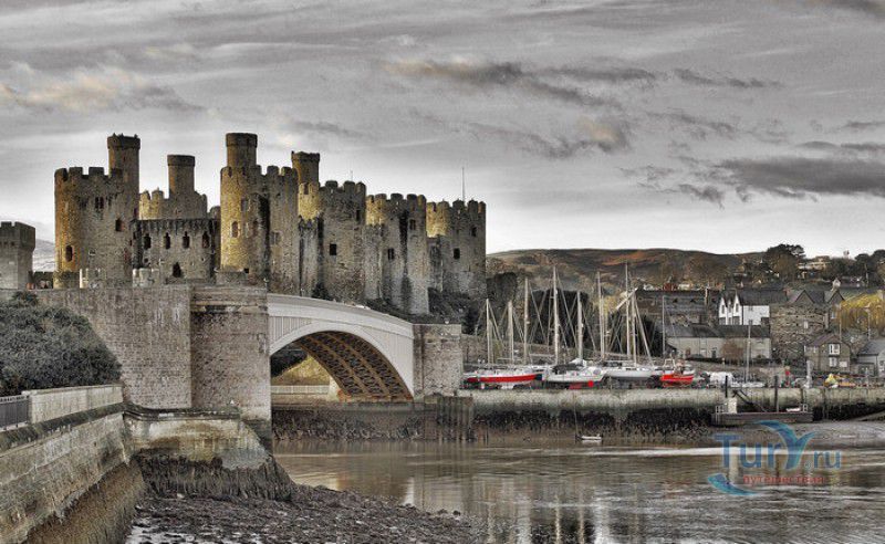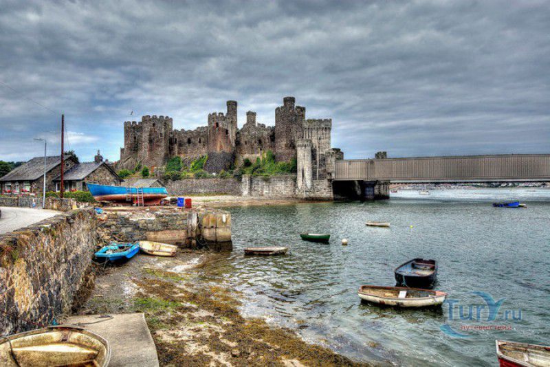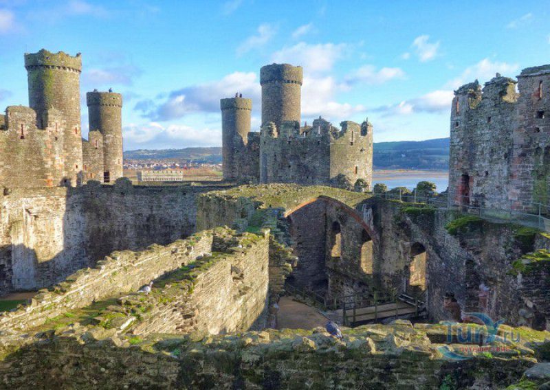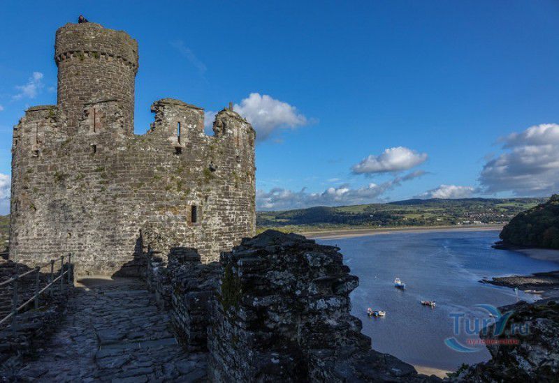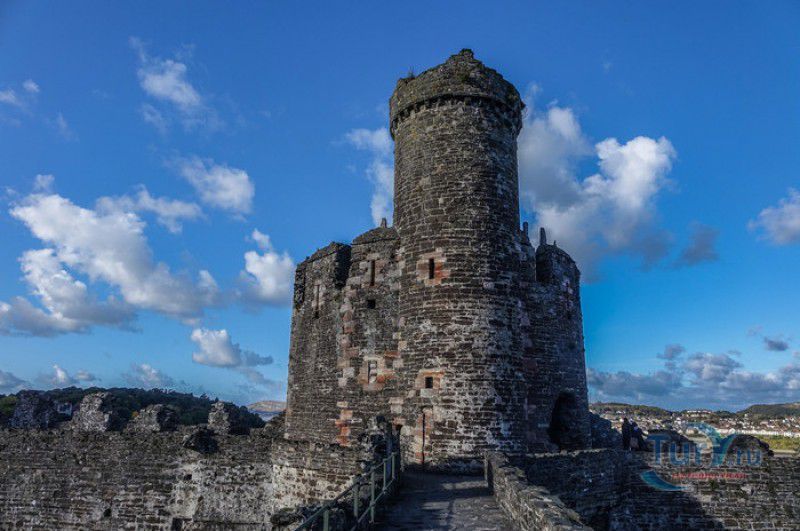 Замок Конуи расположен в Великобритании, в Северном Уэльсе, в городе Конуи. Его строительство было начато Эдуардом I в 1283 году, во время второй валлийской кампании по завоеванию Уэльса. Для укрепления своей власти на завоёванных территориях английский монарх приказал построить несколько замков и крепостей, которые должны были замкнуть северный Уэльс в "железное кольцо". Среди них замок Конуи является одним из самых больших и мощных. Возведение замка было поручено королевскому военному архитектору мастеру Джеймсу из Сен-Джорджа, работы велись в течение шести лет - с 1283 по 1289 год, на строительстве были заняты около 1500 рабочих, королевской казне новый замок обошёлся в 15 000 фунтов стерлингов. Конуи был построен на вершине скалистого утёса, омываемого рекой Конуи, что делало крепость практически неприступной для неприятеля. Замок в плане имеет форму вытянутого прямоугольника, разделённого поперечной стеной на два двора, каждый из которых, в свою очередь, окружён мощными стенами с четырьмя башнями по углам. Башни имели несколько уровней и высоту около 20 метров. Замок был обнесен высокими зубчатыми стенами, с южной и северной стороны которых расположены 8 больших круглых башен. Главный вход в замок располагался на его западной стороне и охранялся барбаканом, построенным над подъёмным мостом, и воротами с опускающимися решётками. Во внутренних замковых дворах и башнях располагались королевские апартаменты, жилые и служебные помещения, зал для приёмов, часовня, кухня, склады и конюшни. Одновременно с замком был построен и укрепленный город, окружённый крепостными стенами, имевшими трое ворот, каждые из которых охранялись двумя дозорными башнями. За свою историю Конуи не раз оказывался в эпицентре военных и исторических событий. В 1295 году замок был осаждён валлийскими повстанцами под предводительством Мэдога ап Лливелина, гарнизон крепости численностью 30 человек выдержал двухнедельную осаду, прежде чем восстание было подавлено войсками Эдуарда I. В 1399 году замок Конуи служил кратковременным пристанищем последнему королю из династии Плантагенетов - Ричарду II, в замке монарх укрывался от Генриха Болингброка, будущего короля Генриха IV. В 1401 году, во время восстания Оуайна Глендура, валлийцы смогли захватить замок и удерживали его в течение трёх месяцев, пока не капитулировали перед войсками Генриха IV. Во время войны Алой и Белой розы (1455-1485 годы) замок Конуи неоднократно пытались захватить противоборствующие партии Ланкастеров и Йорков. Последние военные действия в замке произошли во время Английской революции - один из последних оплотов роялистов (сторонников Карла I) после трёхмесячной осады был захвачен войсками английского парламента под предводительством Томаса Миттона. С этого момента Конуи утратил своё стратегическое значение, был заброшен и медленно разрушался. В 1865 году замок был передан в управление муниципалитета города Конуи, выделившего средства на реконструкцию замка. Большие восстановительные работы в замке были проведены в 1958 году, а в 1986 году в составе "замков Эдуарда I в Уэльсе" замок Конуи внесен в список Всемирного наследия ЮНЕСКО. В настоящее время он находится на попечении Cadw, организации по сохранению исторического наследия Уэльса, и открыт для посетителей.