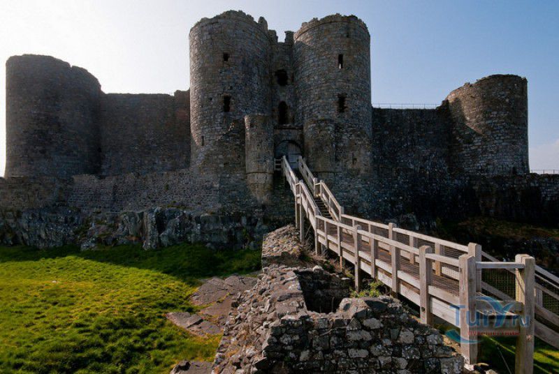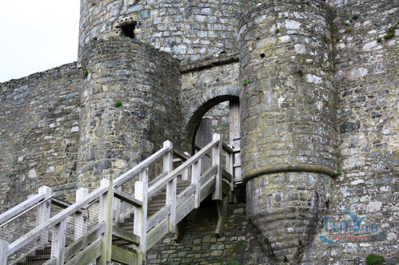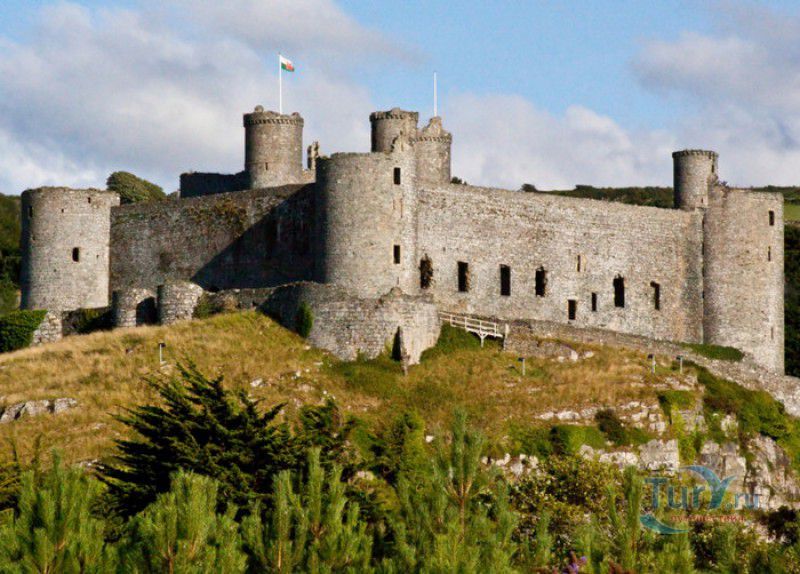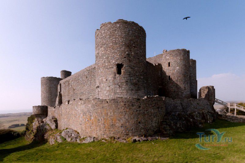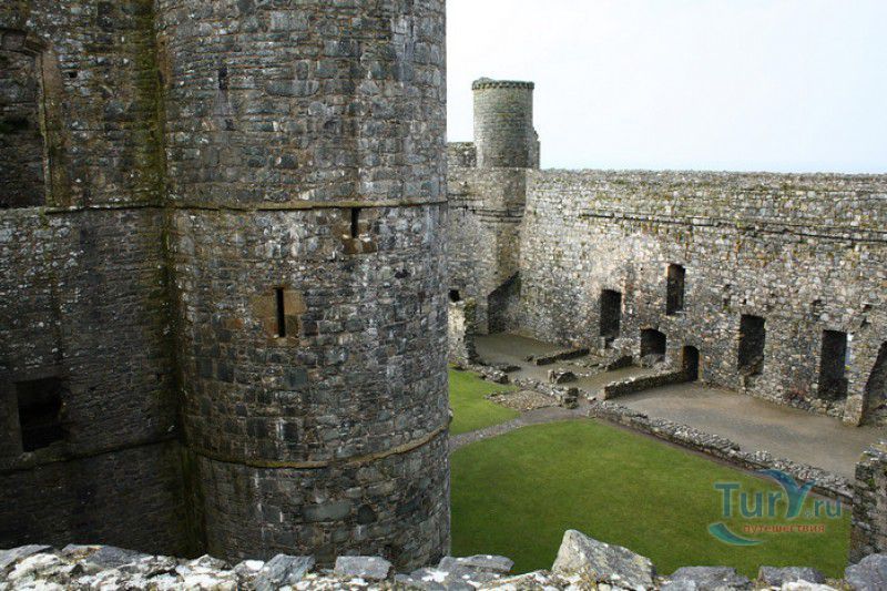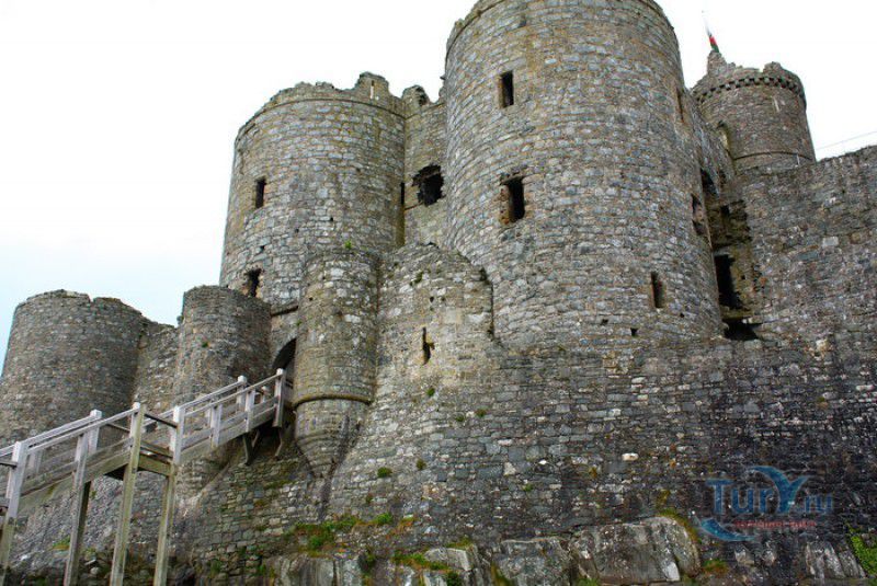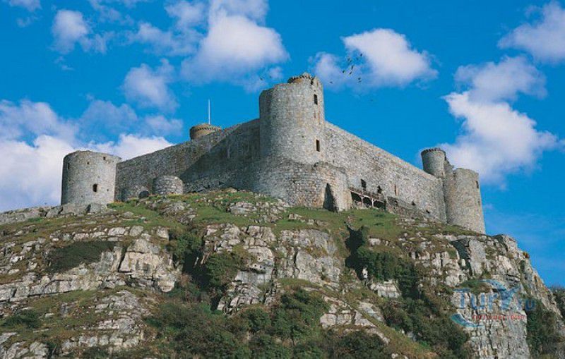 Замок Харлех расположен в Великобритании, на северо-западе Уэльса, в графстве Гвинед, в городе Харлч. Строительство замка было начато в 1283 году по приказу короля Англии Эдуарда I, сразу после успешного завершения второго валлийского похода в Северный Уэльс, предпринятого монархом для подавления восстаний валлийцев. Замок Харлех стал частью так называемого "железного кольца", состоявшего из замков Карнарвон, Конви, Бомарис и других крепостей, возведенных с целью усиления английского влияния в Уэльсе. Строительство замка Харлех велось в течение семи лет, с 1283 по 1290 год, работами лично руководил королевский архитектор - мастер Джеймс из Сен-Джорджа, на строительстве были задействованы около 1000 лучших каменщиков, плотников и кузнецов со всего королевства. Харлех был построен на вершине 60-метрового скалистого утёса, на самом берегу моря (за прошедшие века море отступило, и замок находится теперь в 800 метрах от береговой линии). Замок имеет концентрическую конструкцию, окружён двумя линиями мощных оборонительных стен, при этом внутренняя стена выше и толще внешней. Главный вход замка с обеих сторон охранялся полукруглыми башнями и был оборудован тремя опускающимися решётками, двойными воротами и бойницами. Внутренний двор в плане имеет форму четырёхугольника, по углам которого расположены круглые сторожевые башни. Во внутреннем дворе располагались большой зал, кухня и другие хозяйственные помещения, у северной стены находились часовня и пекарня, на юге - зернохранилище и второй зал. В угловых башнях размещались жилые помещения. От северо-западной башни замка к основанию скалы, прямо в море, вела 60-метровая лестница, известная как "путь с моря", служившая для доставки грузов с кораблей в крепость, благодаря чему гарнизон замка выдержал не одну осаду. Так, в 1294-1295 замок безуспешно пытались взять войска валлийцев под предводительством Мэдога ап Лливелина, но "уморить голодом" гарнизон Харлеха не удалось, так как в крепость по морю своевременно поставлялись продовольствие и боеприпасы. Однако, в 1404 году, во время восстания валлийцев под предводительством Оуэна Глиндура, мятежникам удалось захватить замок. На пять лет Харлех стал фор-постом и штабом повстанцев, пока в 1409 году принц Уэльский (будущий король Генрих V) не вернул замок под власть английской короны. В начале войны Алой и Белой Розы замок Харлех находился в руках сторонников партии Ланкастера, в 1468 году, после семилетней осады, был захвачен сторонниками Йорка. Во время Английской революции Харлех являлся одним из последних оплотов роялистов - с 1462 по 1467 год замок удерживался войсками Карла I, но в 1467 году крепость была захвачена солдатами Кромвеля. Чтобы стереть любые воспоминания о монархии, английский парламент издал указ о разрушении замка Харлех, но он так и не был приведён в исполнение, и полуразрушенный замок на долгие годы был заброшен. В XVIII-XIX веках руины замка стали местом паломничества художников, увековечивших Харлех на своих полотнах, и поэтов, воспевших мужество защитников замка и сочинивших немало легенд о нём. С 1914 года замок находится под защитой государства, а в 1986 году в составе "замков Эдуарда I в Уэльсе" Харлех внесен в список Всемирного наследия ЮНЕСКО. В настоящее время он находится на попечении Cadw, организации по сохранению исторического наследия Уэль