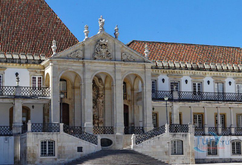 Университет Города Коимбра является самым старым университетом Португалии и одним из старейших в Европе. Он был основан в 1290 году по указу короля Диниша I Португальского, при университете были созданы факультеты искусства, медицины, права и канонического права. В этом же году учебное заведение было признано папой Николаем IV. Первоначально университет располагался в Лиссабоне, в Коимбру, первую столицу Португалии, университет был переведен в 1308 году. Однако, ещё в течение двух столетий университет "переезжал" в Лиссабон и обратно, пока, наконец, в 1537 году окончательно не обосновался в здании королевского дворца Коимбры. Со временем университет "разросся", его факультеты и колледжи располагаются в разных частях города и занимают исторические здания, являющиеся культурными и архитектурными памятниками мирового значения. Символом университета Коимбры является часовая башня главного корпуса, построенная в 1728-1733 годах по проекту итальянского архитектора Антонио Каневари. Её высота - 34 метра, на самом верху башни находится смотровая площадка, с которой открывается красивый панорамный вид на город и реку Мондегу. Часы, установленные на башне, последний раз заменялись в 1867 году, колокола башни и сегодня звонят, призывая студентов на занятия. Главный корпус университета занимает здание королевского дворца Коимбры (Royal Palace of Alcáçova). Здесь расположены парадные и личные покои португальских королей. В Зале Великих деяний происходят основные академические церемонии, защита диссертаций, присуждение докторских степеней. Нынешний свой вид бывший тронный зал приобрёл в XVII веке, он оформлен в стиле мануэлино, его деревянный потолок имеет великолепную роспись, стены облицованы разноцветными изразцами, трибуны украшены портретами португальских королей. В Частной смотровой (бывших покоях короля) студенты-медики сдавали устные экзамены, в Оружейной комнате хранятся алебарды бывшей Королевской академической гвардии, сейчас это оружие используется только во время торжественных церемоний. Одна из достопримечательностей университета - часовня Святого Мигеля, построенная в XI веке. В XVI-XVII столетиях её интерьер был полностью обновлён в стиле мануэлино, для которого характерны богатая декоративная отделка изразцами-азулежу, роспись и лепнина. Внутри часовни находится большой орган, изготовленный в 1737 году и работающий по сей день. Библиотека университета Коимбры (Biblioteca Joanina) - одна из самых больших и красивых библиотек мира. Она была построена в 1717-1728 годах в архитектурном стиле барокко, спонсировал её возведение король Жуан V. Внутреннее убранство библиотеки роскошно - декоративная резьба, лепнина, богатый орнамент, позолота, огромные люстры, книжные полки и мебель выполнены из ценных пород дерева и инкрустированы сусальным золотом. В библиотеке хранятся более 300 000 книг, многие из которых просто бесценны. Университетский колледж Иисуса был построен в 1542 году и является старейшим иезуитским колледжем в мире, сейчас в его здании размещаются научный музей, физическая и зоологическая галереи. Среди достопримечательностей университета - Железные ворота, представляющие собой часть оборонительных сооружений, сохранившихся со времён мусульманской крепости X века, Ботанический сад, колледжи Святой Троицы, Святого Иеронима, святого Бенедикта, 