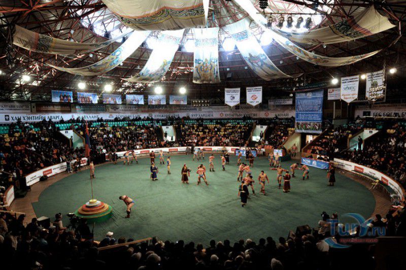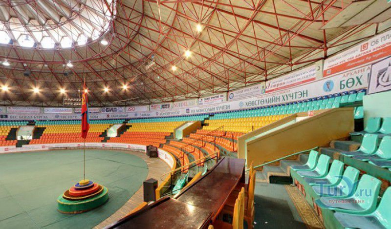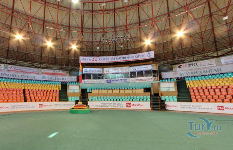 Дворец Монгольской Национальной Борьбы расположен в восточной части Улан-Батора, в районе Баянзурх, рядом с музеем Истории и Реконструкции Улан-Батора. Строительство Дворца для проведения национальных и международных чемпионатов по монгольской национальной борьбе, одному из самых популярных видов спорта в Монголии, велось с 1992 по 1998 год, средства на его строительство были собраны за счёт пожертвований жителей столицы. Здание круглой формы с куполообразной крышей своим внешним видом напоминает гигантскую юрту. Диаметр борцовской арены - 31 метр, зрительный зал способен вместить 2500 человек. На трибунах оборудованы места для комментаторов и прессы, во Дворце есть также зал для подготовки спортсменов к соревнованиям, раздевалки, 12 гостиничных номеров, кафетерий и сауна. Во Дворце проводятся чемпионаты не только по монгольской борьбе, но и соревнования по самбо, дзюдо, сумо, вольной борьбе, а также проходят концерты, развлекательные шоу, театральные постановки.
