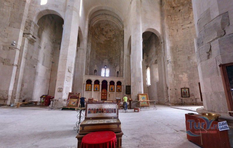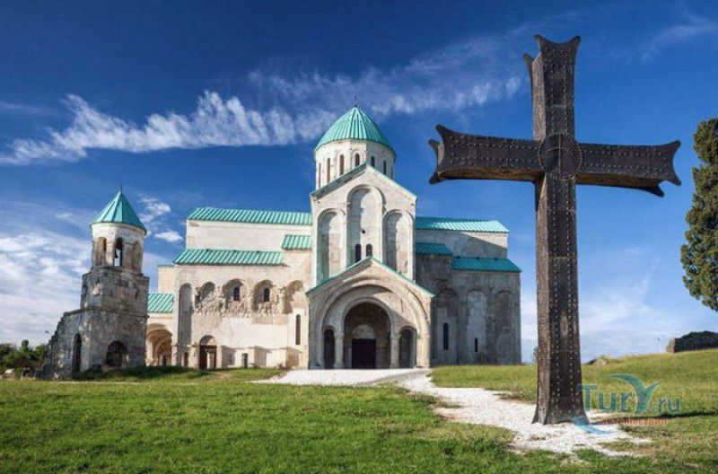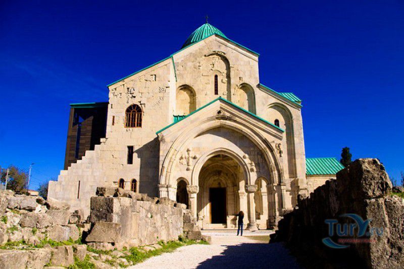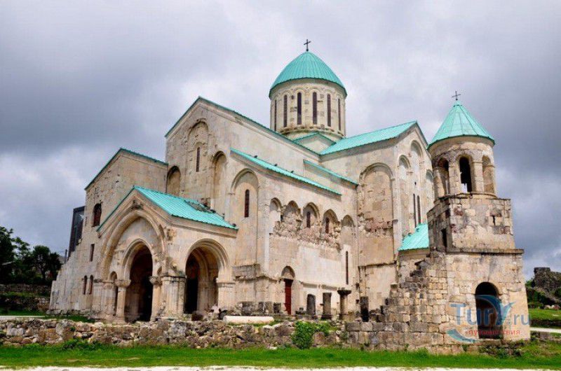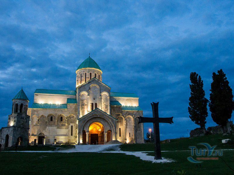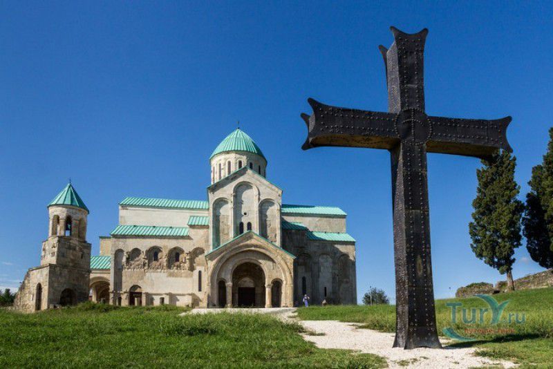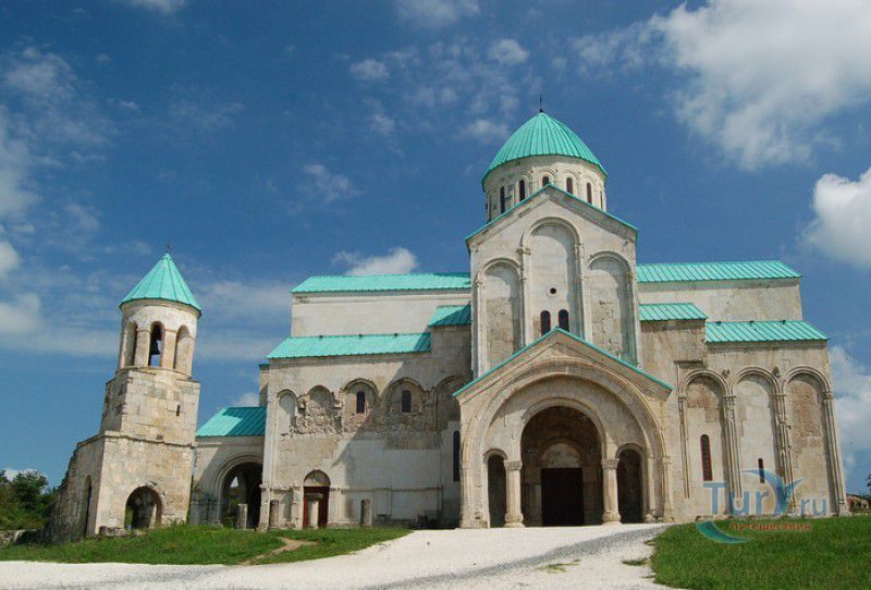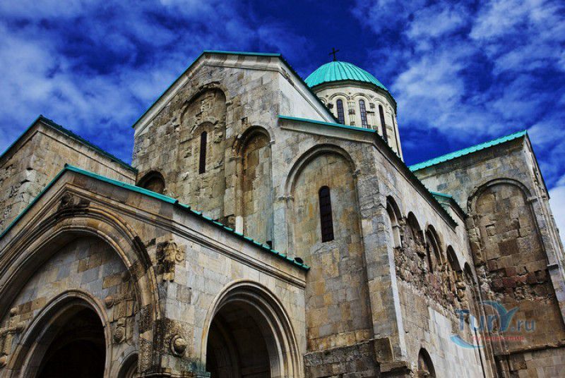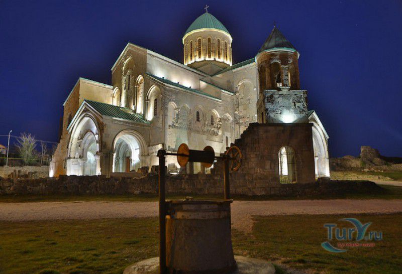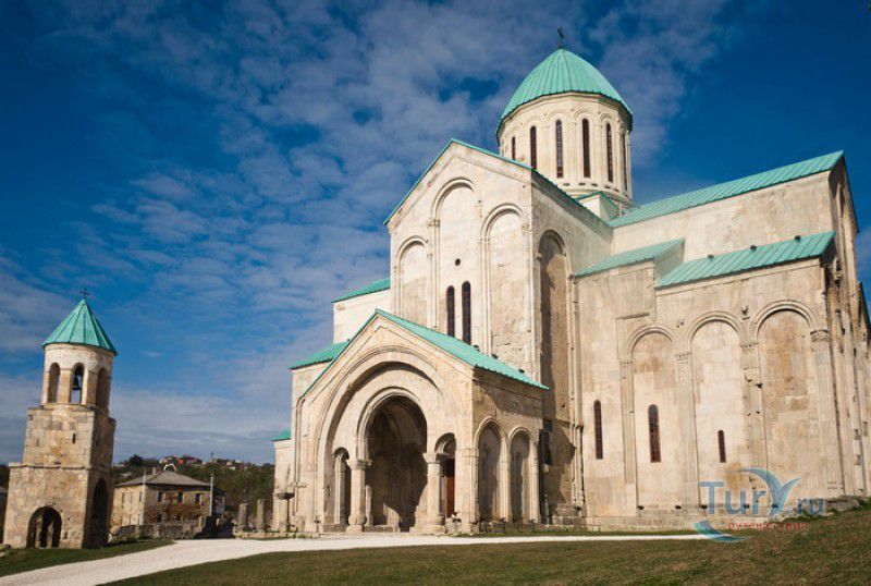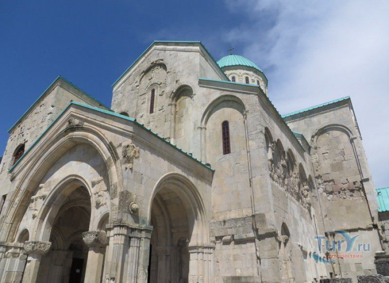 Храм Баграта (Баграти) - один из самых больших и величественных храмов в Грузии, является шедевром средневекового грузинского зодчества, в 1994 году он внесен в список Всемирного наследия ЮНЕСКО. Храм расположен в центре Кутаиси, на вершине скалистого холма Укимериони, на правом берегу реки Риони. Строительство храма было начато в 970-х годах и завершено в 1003 году, во время правления первого царя объединённой Грузии Баграта III, в честь которого храм и получил своё название. В этом же году собор был освящён в честь Успения Богородицы, на торжественной церемонии присутствовали сам Баграт III, грузинские князья и высшее духовенство. В 1089 году в храме Баграта состоялась коронация грузинского царя из династии Багратионов - Давида IV Строителя, во время правления которого произошло объединение грузинских княжеств в единое централизованное государство. Храм был действующим до конца XVII века и по праву считался культурным и религиозным центром Имеретинского царства. В 1691 году Кутаиси был захвачен турками. В 1692 году от взрыва порохового склада, который захватчики разместили в соборе Багарта, храм был разрушен - в здании обвалилась кровля и рухнул купол. В 1769 году, по просьбе царя Ираклия II, российской императрицей Екатериной II в Грузию были направлены войска под командованием генерал-майора Тотлебена для ведения боевых действий против турок в Имеретии. В 1770 году, при освобождении Кутаиси от турецких войск, русская артиллерия уничтожила Кутаисскую крепость, а вместе с ней и всю восточную часть храма Баграта. Так, в руинах, Баграти простоял до 1952 года, в котором, под руководством грузинского архитектора Вахтанга Цинцадзе, в храме начались первые реставрационные работы. Полное восстановление храма в его первоначальном виде было инициировано президентом Грузии Михаилом Саакашвили и выполнено в 2010-2012 годах под руководством итальянского архитектора Андреа Бруно. Окончание работ 17 августа 2012 года ознаменовалось установкой на куполе храма Баграта бронзового креста весом 300 килограммов и высотой 2 метра. И снова, как и тысячу лет назад, над Кутаиси возвышается величественный храм, который видно практически из любой точки города. Баграти - это единственный в Грузии большой храм, построенный на горе, кроме того, храм Баграта - один из лучших образцов средневекового кавказского зодчества. Квадратное в плане здание собора построено из огромных каменных блоков, центральный вход оформлен арочным портиком с лепными украшениями, капители украшены декоративным резным орнаментом, поражающим своими изяществом и изысканностью. Стены и пол храма были отделаны великолепными мозаиками, некоторые фрагменты которых сохранились до наших дней. В южном вестибюле просматриваются фрагменты старинной фрески с изображением Пресвятой Богородицы. ЮНЕСКО и многие искусствоведы выразили озабоченность по поводу вмешательства в ходе восстановительных работ в оригинальный облик храма - в первую очередь это касалось стеклянного лифта, пристроенного к храму с северной стороны. Но все - искусствоведы, паломники и туристы сходятся во мнении, что собор действительно великолепен, как и виды, которые открываются с вершины холма - на Кутаиси, реку Риони и, даже, на Рачинский хребет.
