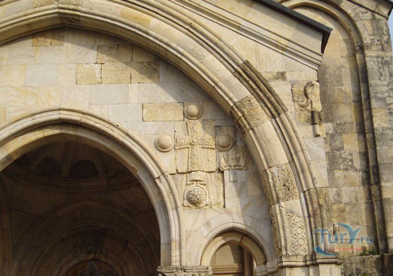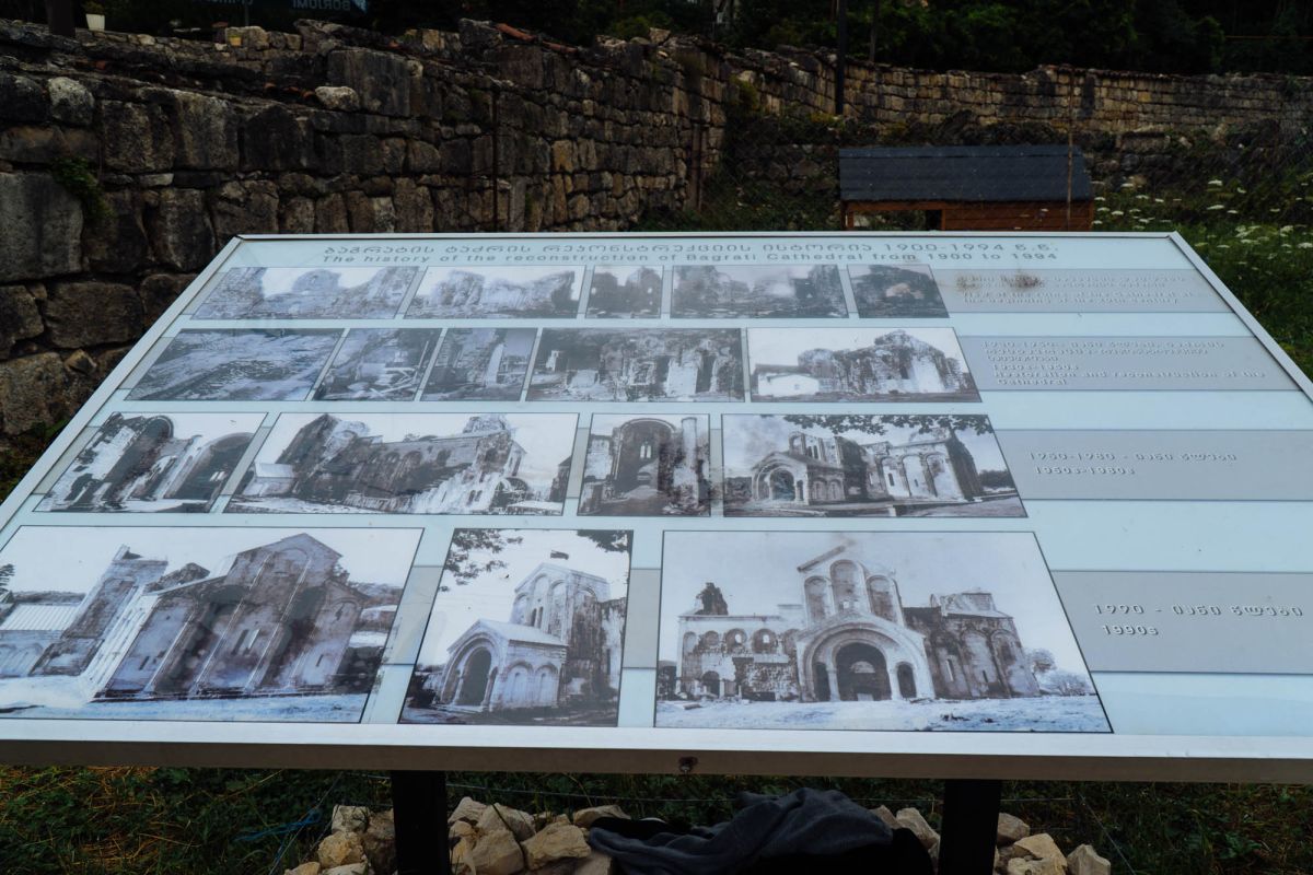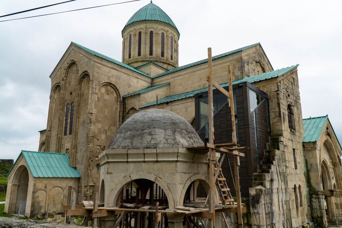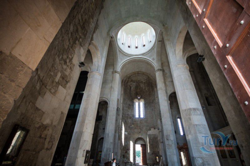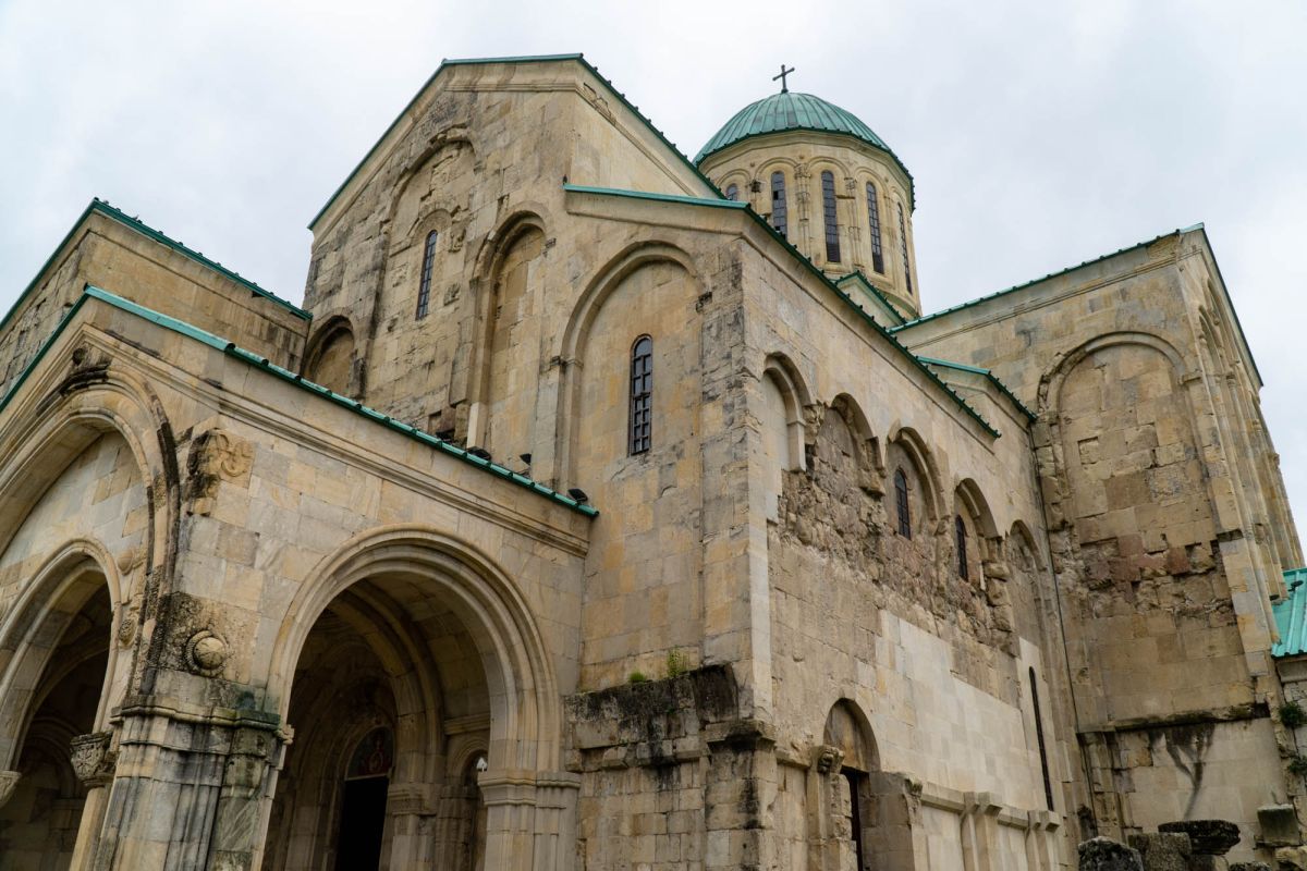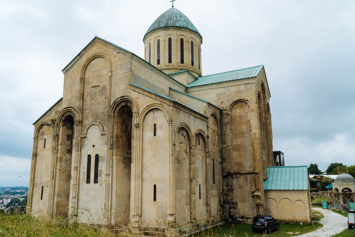 Храм Баграта (Баграти) - один из самых больших и величественных храмов в Грузии, является шедевром средневекового грузинского зодчества, в 1994 году он внесен в список Всемирного наследия ЮНЕСКО. Храм расположен в центре Кутаиси, на вершине скалистого холма Укимериони, на правом берегу реки Риони. Строительство храма было начато в 970-х годах и завершено в 1003 году, во время правления первого царя объединённой Грузии Баграта III, в честь которого храм и получил своё название. В этом же году собор был освящён в честь Успения Богородицы, на торжественной церемонии присутствовали сам Баграт III, грузинские князья и высшее духовенство. В 1089 году в храме Баграта состоялась коронация грузинского царя из династии Багратионов - Давида IV Строителя, во время правления которого произошло объединение грузинских княжеств в единое централизованное государство. Храм был действующим до конца XVII века и по праву считался культурным и религиозным центром Имеретинского царства. В 1691 году Кутаиси был захвачен турками. В 1692 году от взрыва порохового склада, который захватчики разместили в соборе Багарта, храм был разрушен - в здании обвалилась кровля и рухнул купол. В 1769 году, по просьбе царя Ираклия II, российской императрицей Екатериной II в Грузию были направлены войска под командованием генерал-майора Тотлебена для ведения боевых действий против турок в Имеретии. В 1770 году, при освобождении Кутаиси от турецких войск, русская артиллерия уничтожила Кутаисскую крепость, а вместе с ней и всю восточную часть храма Баграта. Так, в руинах, Баграти простоял до 1952 года, в котором, под руководством грузинского архитектора Вахтанга Цинцадзе, в храме начались первые реставрационные работы. Полное восстановление храма в его первоначальном виде было инициировано президентом Грузии Михаилом Саакашвили и выполнено в 2010-2012 годах под руководством итальянского архитектора Андреа Бруно. Окончание работ 17 августа 2012 года ознаменовалось установкой на куполе храма Баграта бронзового креста весом 300 килограммов и высотой 2 метра. И снова, как и тысячу лет назад, над Кутаиси возвышается величественный храм, который видно практически из любой точки города. Баграти - это единственный в Грузии большой храм, построенный на горе, кроме того, храм Баграта - один из лучших образцов средневекового кавказского зодчества. Квадратное в плане здание собора построено из огромных каменных блоков, центральный вход оформлен арочным портиком с лепными украшениями, капители украшены декоративным резным орнаментом, поражающим своими изяществом и изысканностью. Стены и пол храма были отделаны великолепными мозаиками, некоторые фрагменты которых сохранились до наших дней. В южном вестибюле просматриваются фрагменты старинной фрески с изображением Пресвятой Богородицы. ЮНЕСКО и многие искусствоведы выразили озабоченность по поводу вмешательства в ходе восстановительных работ в оригинальный облик храма - в первую очередь это касалось стеклянного лифта, пристроенного к храму с северной стороны. Но все - искусствоведы, паломники и туристы сходятся во мнении, что собор действительно великолепен, как и виды, которые открываются с вершины холма - на Кутаиси, реку Риони и, даже, на Рачинский хребет.