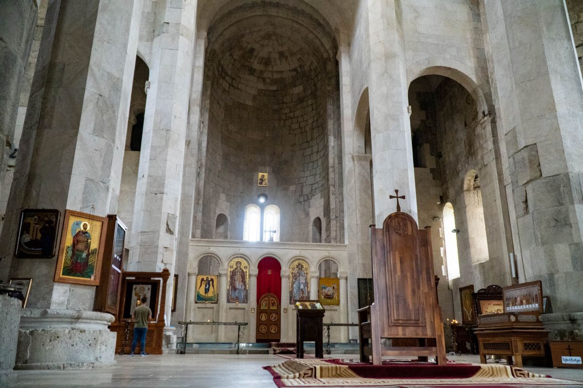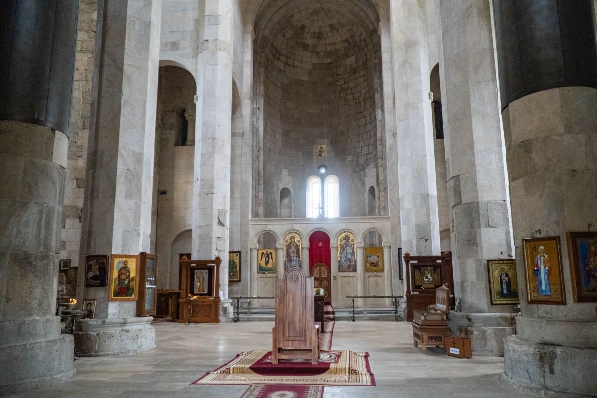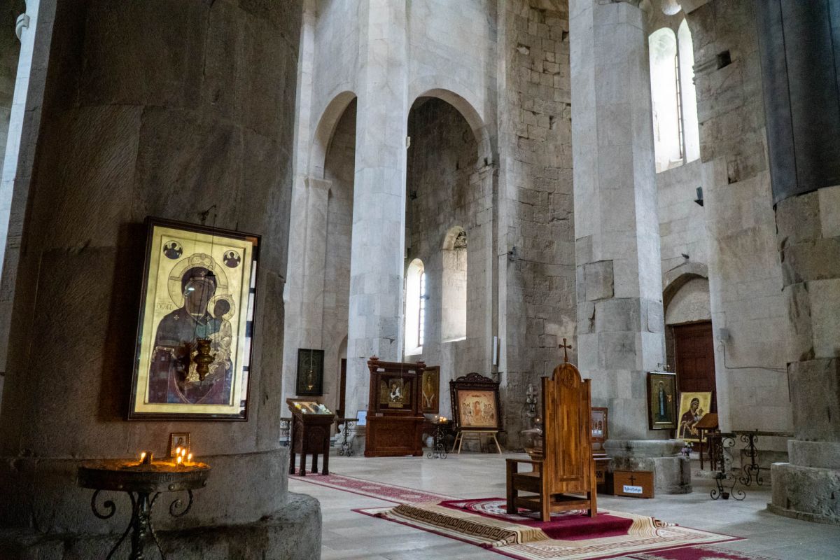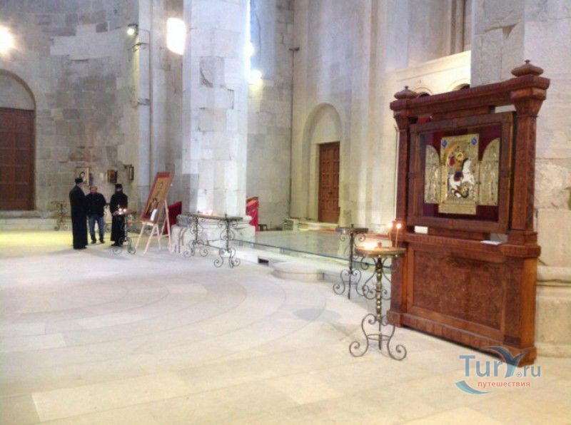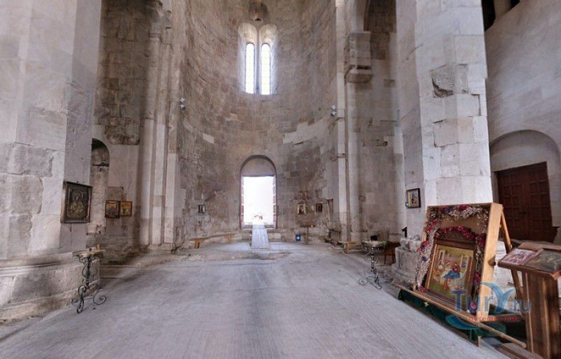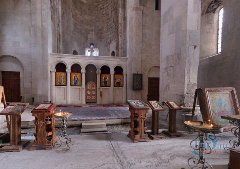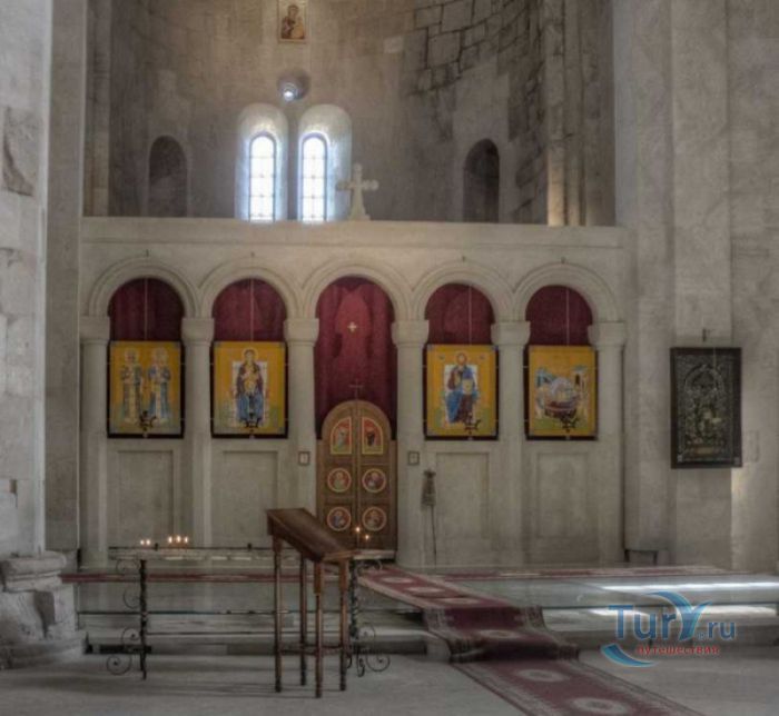 Храм Баграта (Баграти) - один из самых больших и величественных храмов в Грузии, является шедевром средневекового грузинского зодчества, в 1994 году он внесен в список Всемирного наследия ЮНЕСКО. Храм расположен в центре Кутаиси, на вершине скалистого холма Укимериони, на правом берегу реки Риони. Строительство храма было начато в 970-х годах и завершено в 1003 году, во время правления первого царя объединённой Грузии Баграта III, в честь которого храм и получил своё название. В этом же году собор был освящён в честь Успения Богородицы, на торжественной церемонии присутствовали сам Баграт III, грузинские князья и высшее духовенство. В 1089 году в храме Баграта состоялась коронация грузинского царя из династии Багратионов - Давида IV Строителя, во время правления которого произошло объединение грузинских княжеств в единое централизованное государство. Храм был действующим до конца XVII века и по праву считался культурным и религиозным центром Имеретинского царства. В 1691 году Кутаиси был захвачен турками. В 1692 году от взрыва порохового склада, который захватчики разместили в соборе Багарта, храм был разрушен - в здании обвалилась кровля и рухнул купол. В 1769 году, по просьбе царя Ираклия II, российской императрицей Екатериной II в Грузию были направлены войска под командованием генерал-майора Тотлебена для ведения боевых действий против турок в Имеретии. В 1770 году, при освобождении Кутаиси от турецких войск, русская артиллерия уничтожила Кутаисскую крепость, а вместе с ней и всю восточную часть храма Баграта. Так, в руинах, Баграти простоял до 1952 года, в котором, под руководством грузинского архитектора Вахтанга Цинцадзе, в храме начались первые реставрационные работы. Полное восстановление храма в его первоначальном виде было инициировано президентом Грузии Михаилом Саакашвили и выполнено в 2010-2012 годах под руководством итальянского архитектора Андреа Бруно. Окончание работ 17 августа 2012 года ознаменовалось установкой на куполе храма Баграта бронзового креста весом 300 килограммов и высотой 2 метра. И снова, как и тысячу лет назад, над Кутаиси возвышается величественный храм, который видно практически из любой точки города. Баграти - это единственный в Грузии большой храм, построенный на горе, кроме того, храм Баграта - один из лучших образцов средневекового кавказского зодчества. Квадратное в плане здание собора построено из огромных каменных блоков, центральный вход оформлен арочным портиком с лепными украшениями, капители украшены декоративным резным орнаментом, поражающим своими изяществом и изысканностью. Стены и пол храма были отделаны великолепными мозаиками, некоторые фрагменты которых сохранились до наших дней. В южном вестибюле просматриваются фрагменты старинной фрески с изображением Пресвятой Богородицы. ЮНЕСКО и многие искусствоведы выразили озабоченность по поводу вмешательства в ходе восстановительных работ в оригинальный облик храма - в первую очередь это касалось стеклянного лифта, пристроенного к храму с северной стороны. Но все - искусствоведы, паломники и туристы сходятся во мнении, что собор действительно великолепен, как и виды, которые открываются с вершины холма - на Кутаиси, реку Риони и, даже, на Рачинский хребет.