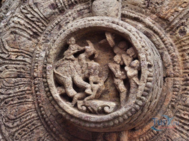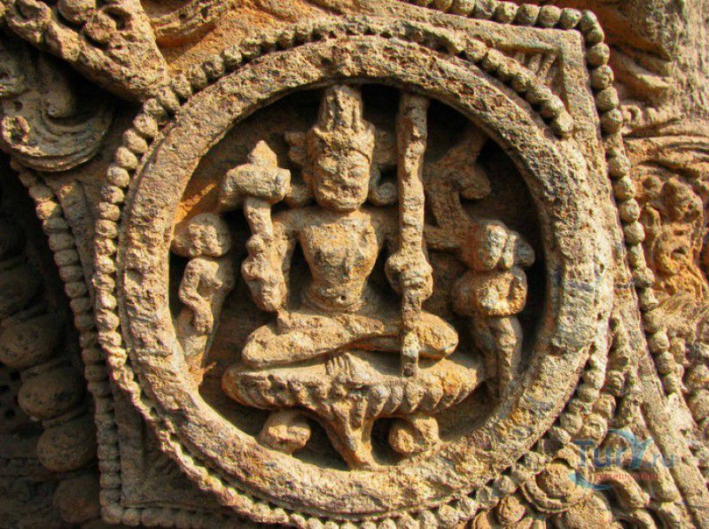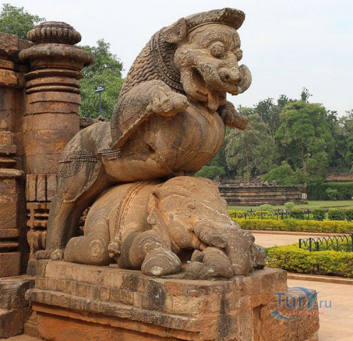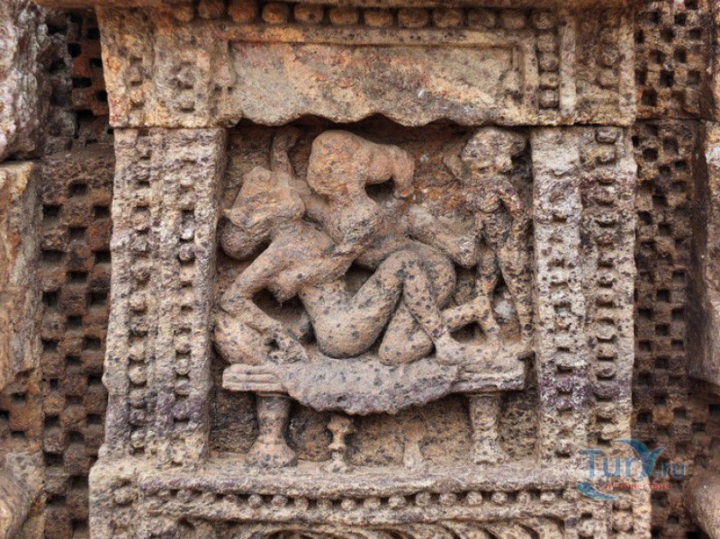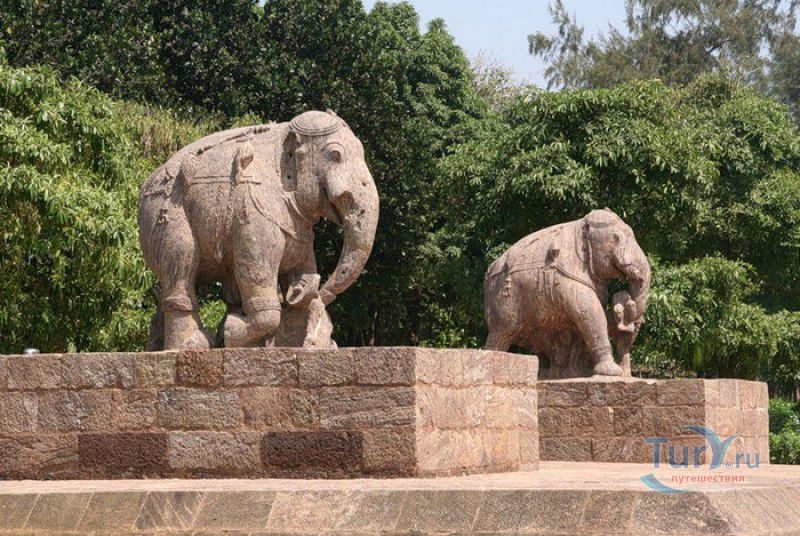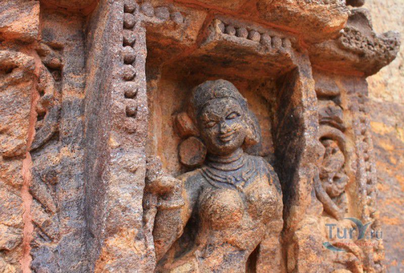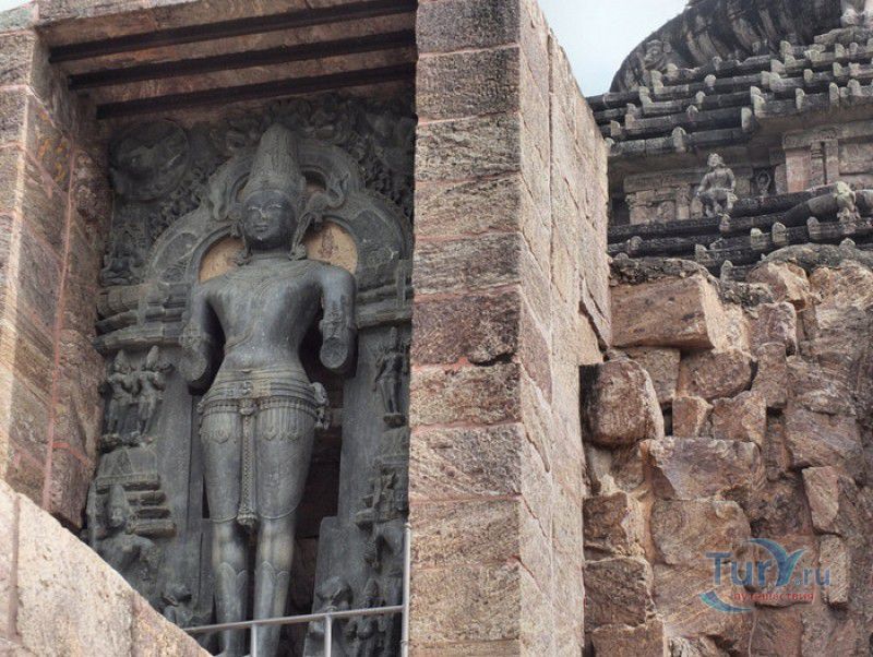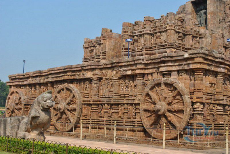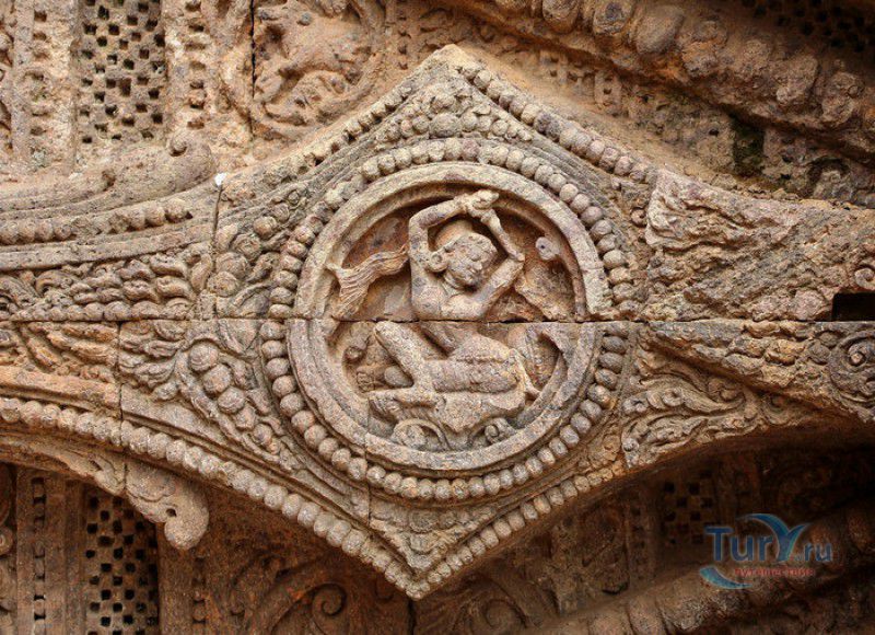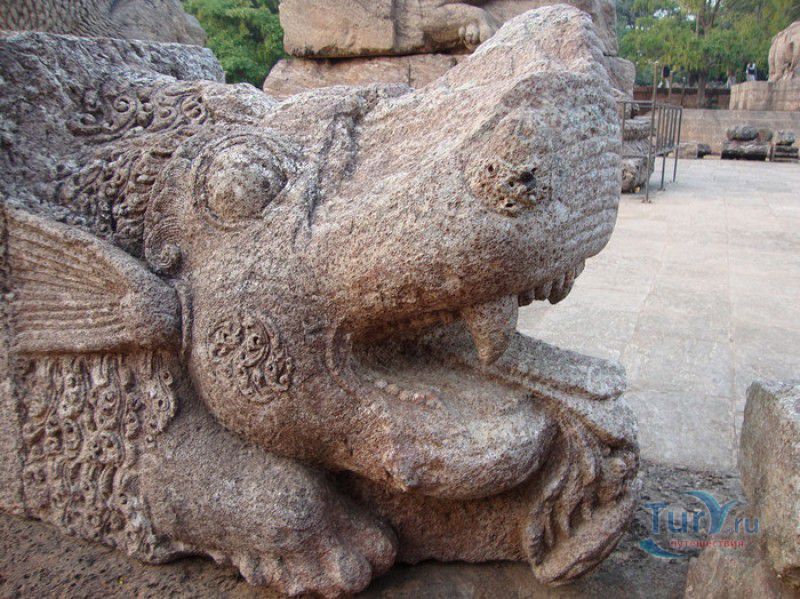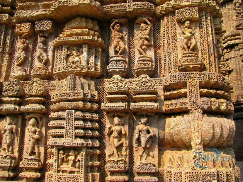 Храм Солнца в Конараке (Чёрная Пагода) расположен в Индии, в штате Орисса, в городе Конарак. Храм был возведен в 1243-1255 годах по приказу Нарасимхадевы I, короля Ориссы из династии Восточная Ганга. Правитель Ориссы поклонялся богу солнца Сурье и верил, что всеми своими успехами обязан его защите и покровительству - Нарасимхадева I не только успешно отражал нападения мусульман на Ориссу, но и освободил из-под их владычества большую часть Бенгалии. В честь победы Нарасимхадевы I над армией Туграл Туган-хана и был возведен храм Солнца в Конараке. Местность, в которой расположен храм, издавна считалась священной, здесь был наиболее развит культ бога Солнца, а само назване Конарак переводится как "уголок Солнца". Изначально храм располагался на самом берегу Бенгальского залива, но со временем океан отступил, и сейчас храм Солнца находится примерно в трёх километрах от побережья. Храм Солнца выполнен в традиционном стиле архитектуры Калинга (древнего королевства в Восточной Индии), его строительство длилось 12 лет, и всё это время здесь неустанно трудились около 1200 лучших мастеров - архитекторов, каменотёсов, резчиков и скульпторов. Храм построен в виде колесницы бога Солнца, в которой по верхнему и нижнему небу передвигался великий Сурья. Храм-колесница "запряжён" в упряжку из семи каменных лошадей, на цоколе храма, с северной и южной сторон здания, вырезаны из камня 24 огромных колеса (по 12 на каждой стороне) диаметром 3 метра, богато украшенные резьбой и декоративным орнаментом. Храм Солнца состоял из трёх структур - виманы (главного святилища), джагамохана (зала для молитв) и ната мандира (танцевального зала). Вимана была увенчана башней-шикхарой высотой около 60 метров. Очевидно, башня должна быть ещё выше, но её возведение прекратили из-за опасности обрушения - храм возводили на самом берегу океана, и песок стал оседать под тяжестью сооружения. Чтобы обезопасить храм от разрушения, строители применили инновационный на то время метод - здание было "сковано" металлическим каркасом (плиты стен скрепили железными прутьями и клиньями, а потолок джагамохана "подвесили" на металлических балках). Джагамохан, возведенный на той же платформе, что и главный храм, состоит из бады (кубического тела) и пиды (пирамидальной крыши), состоящей из трёх террас, на которые ведут каменные лестницы. На террасах установлены статуи в натуральную величину, изображающие женщин в различных танцевальных позах. Танцевальный зал расположен к востоку от главного храма и зала для молитв, он представляет собой большой колонный зал без крыши, установленный на высокой платформе. Здесь исполнялись ритуальные танцы, посвящённые богу Солнца. Вся поверхность стен храма украшена великолепными барельефами с изображениями богов, мифических животных, львов, боевых слонов, танцующих мужчин и женщин, а также эротических сцен "майтхуна". "Здесь язык камня превосходит язык человека" - так описал увиденное выдающийся индийский поэт Рабиндранат Тагор. С храмом Солнца в Конараке связаны множество легенд. По одной из них, огромная статуя бога Солнца Сурьи, расположенная в главном святилище, буквально "парила" в воздухе. Этого эффекта древние мастера смогли добиться с помощью мощнейших магнитов, расположенных сверху, снизу и по бокам скульптуры, изготовленной из материала с содержанием 