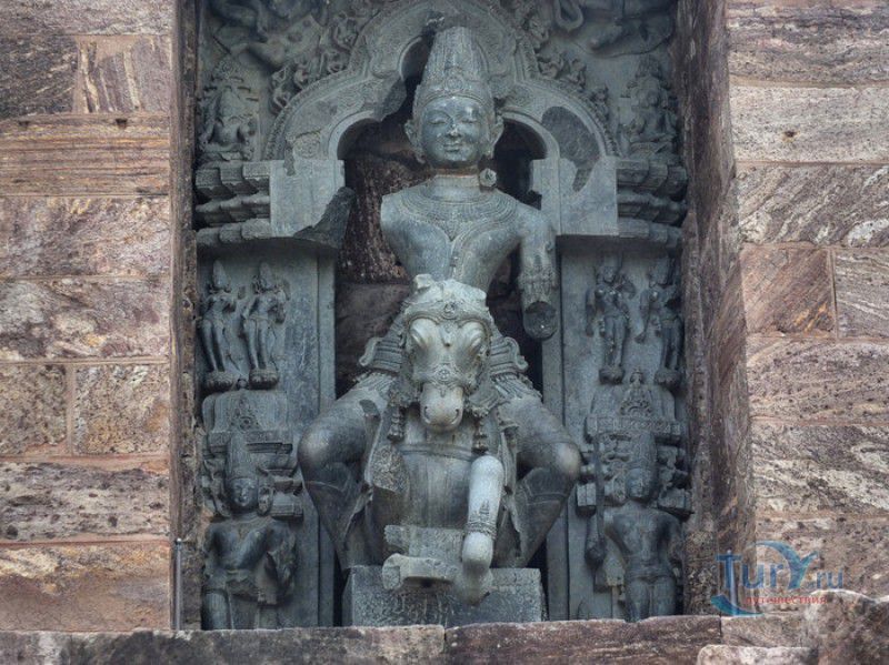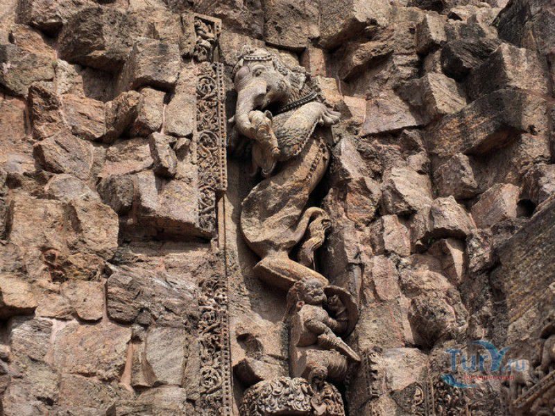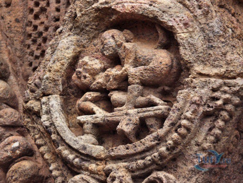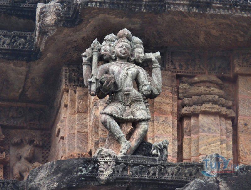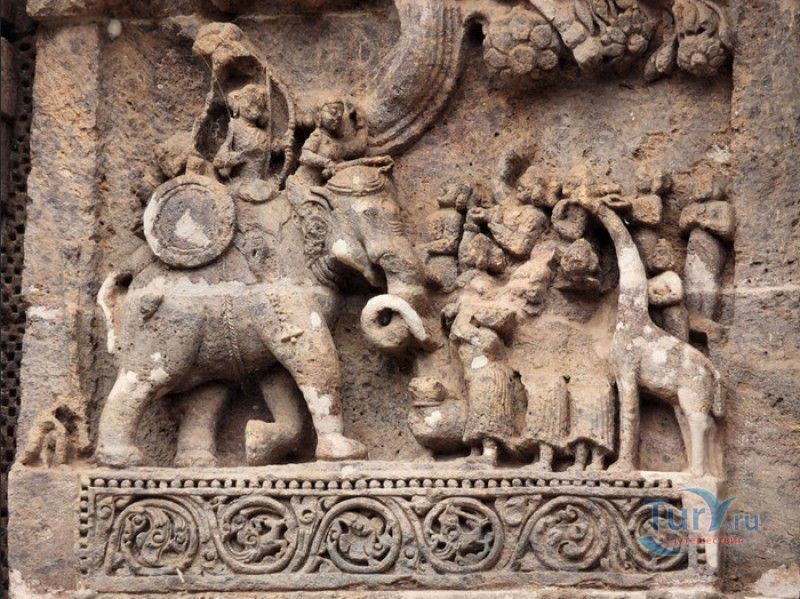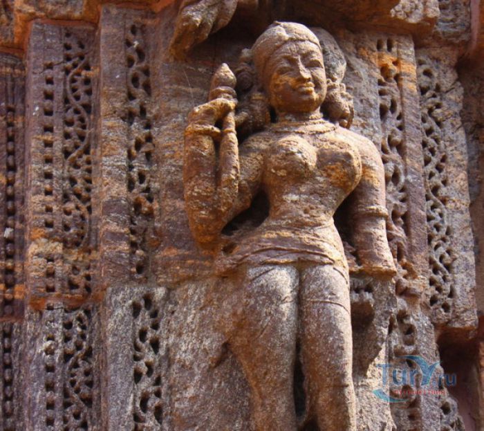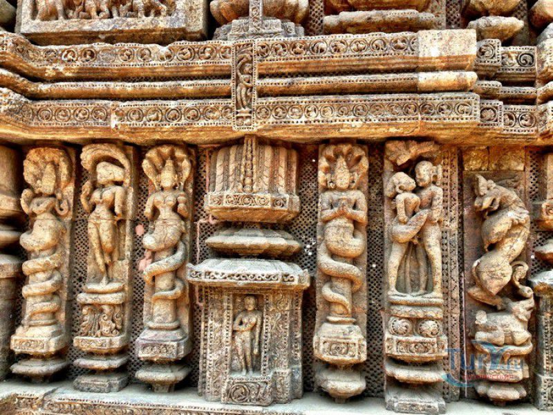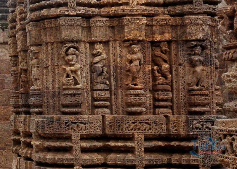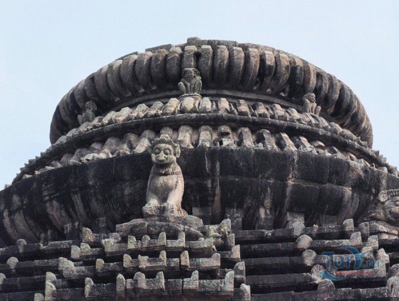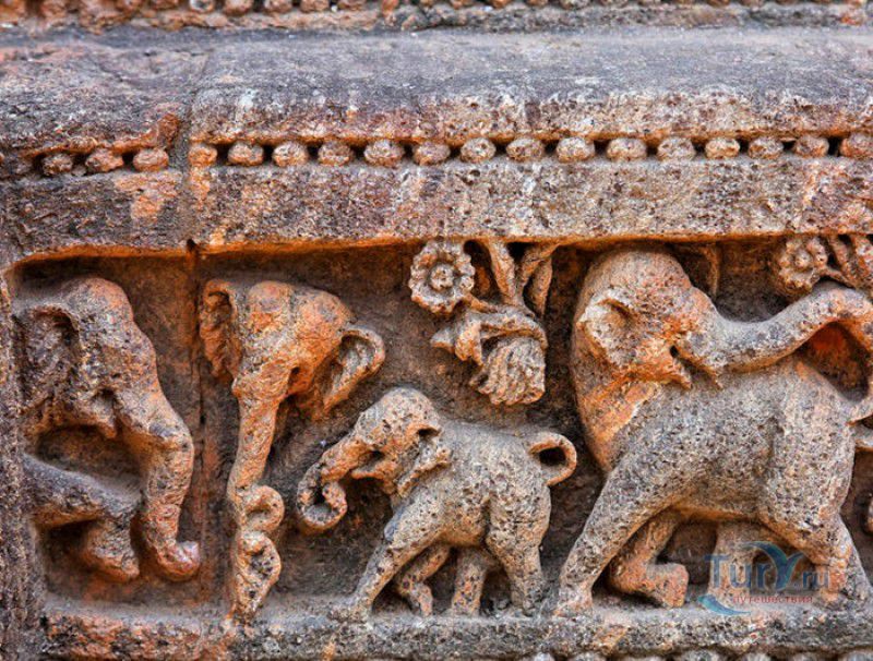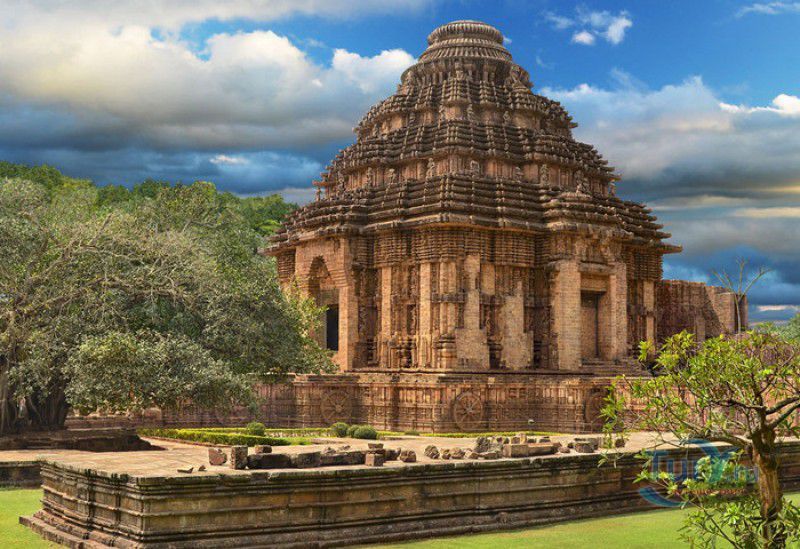 Храм Солнца в Конараке (Чёрная Пагода) расположен в Индии, в штате Орисса, в городе Конарак. Храм был возведен в 1243-1255 годах по приказу Нарасимхадевы I, короля Ориссы из династии Восточная Ганга. Правитель Ориссы поклонялся богу солнца Сурье и верил, что всеми своими успехами обязан его защите и покровительству - Нарасимхадева I не только успешно отражал нападения мусульман на Ориссу, но и освободил из-под их владычества большую часть Бенгалии. В честь победы Нарасимхадевы I над армией Туграл Туган-хана и был возведен храм Солнца в Конараке. Местность, в которой расположен храм, издавна считалась священной, здесь был наиболее развит культ бога Солнца, а само назване Конарак переводится как "уголок Солнца". Изначально храм располагался на самом берегу Бенгальского залива, но со временем океан отступил, и сейчас храм Солнца находится примерно в трёх километрах от побережья. Храм Солнца выполнен в традиционном стиле архитектуры Калинга (древнего королевства в Восточной Индии), его строительство длилось 12 лет, и всё это время здесь неустанно трудились около 1200 лучших мастеров - архитекторов, каменотёсов, резчиков и скульпторов. Храм построен в виде колесницы бога Солнца, в которой по верхнему и нижнему небу передвигался великий Сурья. Храм-колесница "запряжён" в упряжку из семи каменных лошадей, на цоколе храма, с северной и южной сторон здания, вырезаны из камня 24 огромных колеса (по 12 на каждой стороне) диаметром 3 метра, богато украшенные резьбой и декоративным орнаментом. Храм Солнца состоял из трёх структур - виманы (главного святилища), джагамохана (зала для молитв) и ната мандира (танцевального зала). Вимана была увенчана башней-шикхарой высотой около 60 метров. Очевидно, башня должна быть ещё выше, но её возведение прекратили из-за опасности обрушения - храм возводили на самом берегу океана, и песок стал оседать под тяжестью сооружения. Чтобы обезопасить храм от разрушения, строители применили инновационный на то время метод - здание было "сковано" металлическим каркасом (плиты стен скрепили железными прутьями и клиньями, а потолок джагамохана "подвесили" на металлических балках). Джагамохан, возведенный на той же платформе, что и главный храм, состоит из бады (кубического тела) и пиды (пирамидальной крыши), состоящей из трёх террас, на которые ведут каменные лестницы. На террасах установлены статуи в натуральную величину, изображающие женщин в различных танцевальных позах. Танцевальный зал расположен к востоку от главного храма и зала для молитв, он представляет собой большой колонный зал без крыши, установленный на высокой платформе. Здесь исполнялись ритуальные танцы, посвящённые богу Солнца. Вся поверхность стен храма украшена великолепными барельефами с изображениями богов, мифических животных, львов, боевых слонов, танцующих мужчин и женщин, а также эротических сцен "майтхуна". "Здесь язык камня превосходит язык человека" - так описал увиденное выдающийся индийский поэт Рабиндранат Тагор. С храмом Солнца в Конараке связаны множество легенд. По одной из них, огромная статуя бога Солнца Сурьи, расположенная в главном святилище, буквально "парила" в воздухе. Этого эффекта древние мастера смогли добиться с помощью мощнейших магнитов, расположенных сверху, снизу и по бокам скульптуры, изготовленной из материала с содержанием 