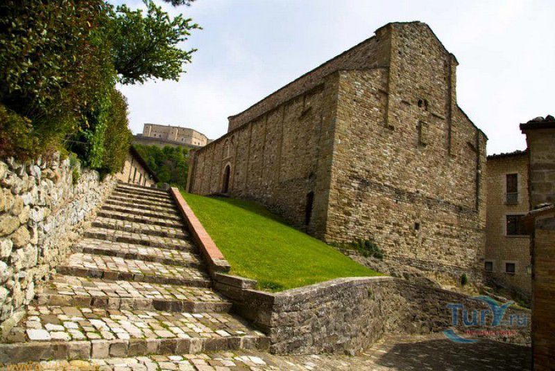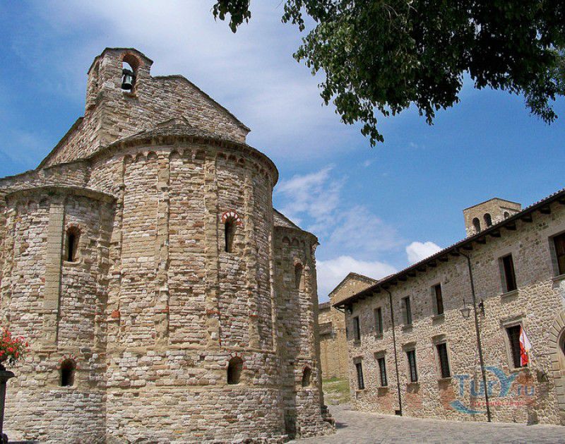 Приходская Церковь Вознесения Девы Марии - самая старая христианская церковь в городе Сан-Лео и во всём регионе Монтефельтро. Она расположена в историческом центре города, в нескольких шагах от Кафедрального собора Сан-Лео. Первая небольшая церковь была возведена на этом месте в III-IV веках, она представляла собой небольшую апсиду с двумя криптами, высеченными в скале. В IX веке, в эпоху Каролингов, церковь была значительно расширена, а в XI столетии перестроена в романском стиле. Приходская церковь Сан-Лео выполнена из тесаного камня из песчаника и известняка, здание имеет глухой центральный фасад с контрофорсами, вход в храм расположен со стороны бокового фасада. Здание церкви Вознесения Девы Марии представляет собой трёхнефную базилику с криптами и пресвитерием, возвышающимся над проходами. В пресвитерии установлен киворий, датируемый 882 годом - он был подарен церкви герцогом Орсо, о чём свидетельствует надпись: "В честь Господа, Бога нашего Иисуса Христа, и Святой Божией Матери, Пресявятой Девы Марии, я, герцог Орсо, грешник, заказал это произведение искусства. Я прошу всех вас, кто читает это, молиться за меня!". Внутреннее пространство церкви разделено массивными арками, опирающимися на чередующиеся квадратные колонны и столбы, украшенные коринфскими капителями. Эти столбы были найдены на развалинах античного храма, построенного в Монтефельтро ещё древними римлянами. Внутренние стены церкви были оштукатурены и богато украшены фресками, которые, к сожалению, до наших дней не сохранились. На протяжении столетий здание приходской церкви Сан-Лео несколько раз перестраивалось, в 1930-х годах были проведены реставрационные работы, в результате которых приходская церковь Вознесения Девы Марии в Сан-Лео приобрела тот вид, который она имела в XI веке.