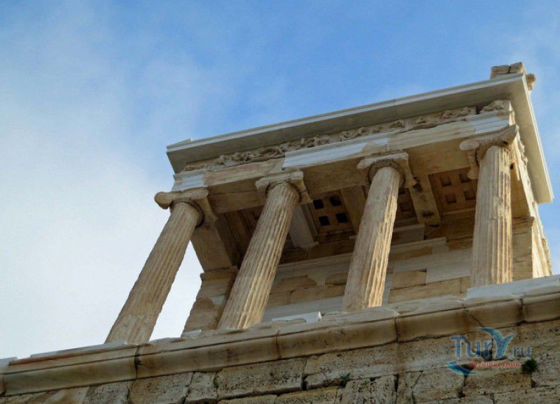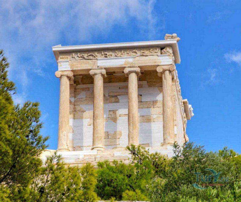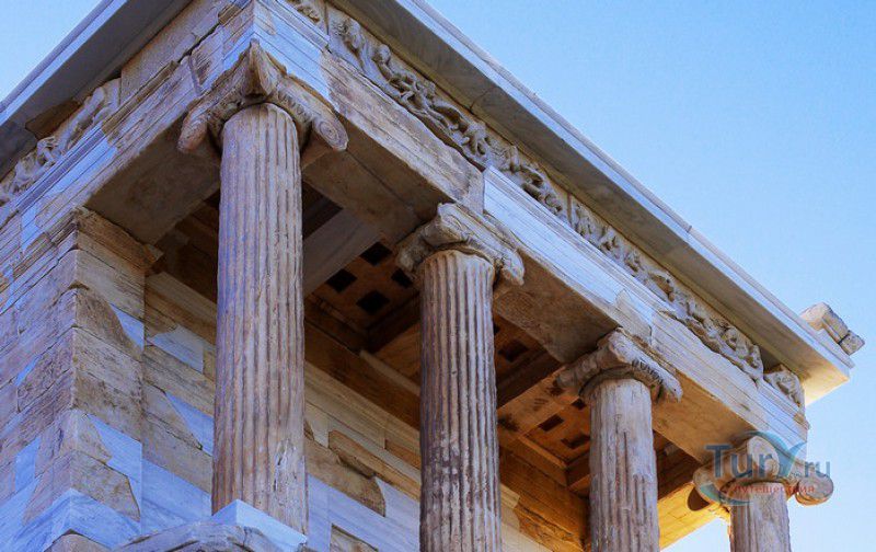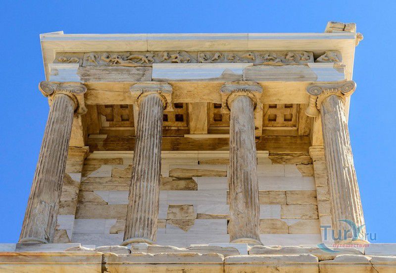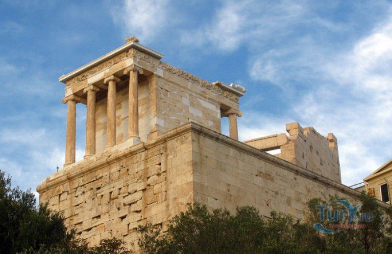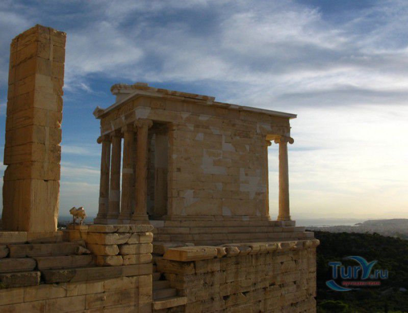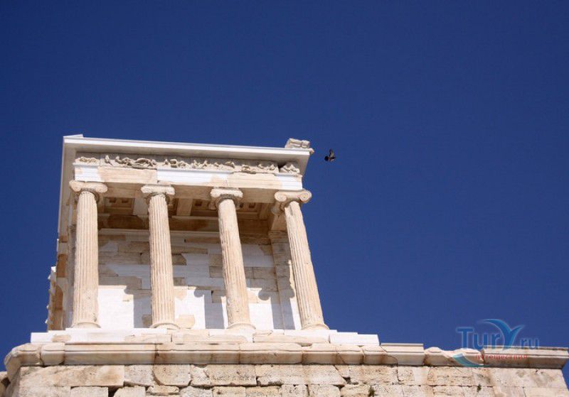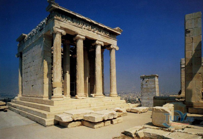 Храм Ники Аптерос расположен в юго-западной части Афинского Акрополя, справа от Пропилей - парадного входа в Акрополь. Храм Ники Аптерос - один из первых храмов на территории Акрополя, он был возведен на месте древнего святилища, построенного на отвесном плато скалистого холма ещё в микенскую эпоху. В VI веке до нашей эры на месте святилища возвели храм, посвящённый богине Афине, но в 480 году до нашей эры, во время вторжения в Элладу войск персидского царя Ксеркса, он был полностью разрушен. На его руинах в 426-421 годах до нашей эры, по проекту древнегреческого архитектора Калликрата, был построен новый храм в ионическом стиле. Сооружение представляет собой амфипростиль (здание с двумя фасадами), один фасад храма обращён к входу в Акрополь, второй "смотрит" на Парфенон. Каждый фасад украшен портиками с четырьмя колоннами ионического ордера. Само здание стоит на трёхступенчатом основании - стилобате. Фризы храма были украшены скульптурными рельефами с изображением олимпийских богов (Афины, Зевса, Посейдона) и сцен сражений между греками и персами. Уцелевшие фрагменты фриза можно увидеть в Музее Акрополя и Британском музее, на самом храме сейчас установлены их копии. Восточнее храма располагался алтарь, а вся храмовая площадка была окружена мраморным парапетом, на плитах которого были размещены барельефы с изображениями богини Ники, в том числе и знаменитый рельеф, на котором Ника изображена застёгивающей свои сандалии. Внутри храма была установлена статуя Афины, в одной руке богиня держала шлем, в другой - плод граната (символ победоносного мира). Столь необычное изображение Афины-Победительницы (обычно она была представлена в доспехах, со шлемом на голове, с копьём и знаменитой эгидой - щитом из козьей шкуры, на внешней стороне которого была размещена голова Горгоны Медузы) ввели в заблуждение древнегреческого писателя и географа Павсания, посетившего Афины во II веке и описавшем их в своём труде "Описание Эллады". Павсаний принял статую Афины за статую богини Ники - вестницы победы, крылатой спутницы Афины. Чтобы объяснить, почему Ника изображена без крыльев, Павсаний придумал красивую легенду о том, что афиняне специально просили скульптора изобразить Нику бескрылой, чтобы Победа никогда не смогла покинуть их город. С лёгкой руки Павсания за храмом закрепилось название храм Ники Аптерос (Ники Бескрылой), хотя на самом деле храм был посвящён Афине-Победительнице, покровительнице города Афины. Храм Ники Аптерос простоял более двух тысячелетий, в V веке в нём была размещена христианская церковь, а в 1686 году, во время оккупации Греции Османской империей, турки демонтировали храм, используя камни, из которых он был сложен, в качестве строительного материала для оборонительных сооружений, возводимых ими вокруг Акрополя. Храм Ники Аптерос был восстановлен в 1835 году, однако, работы были выполнены некачественно, и спустя 100 лет возникла угроза обрушения здания. Храм был разобран и на укреплённом фундаменте отстроен заново, при его восстановлении были использованы каменные блоки и фрагменты колонн, обнаруженные за прошедшее после первой реконструкции столетие. Последняя реставрация храма была проведена в начале XXI столетия. В 1987 году, в составе Акрополя, храм Ники Аптерос внесен в список Всемирного наследия ЮНЕСКО.