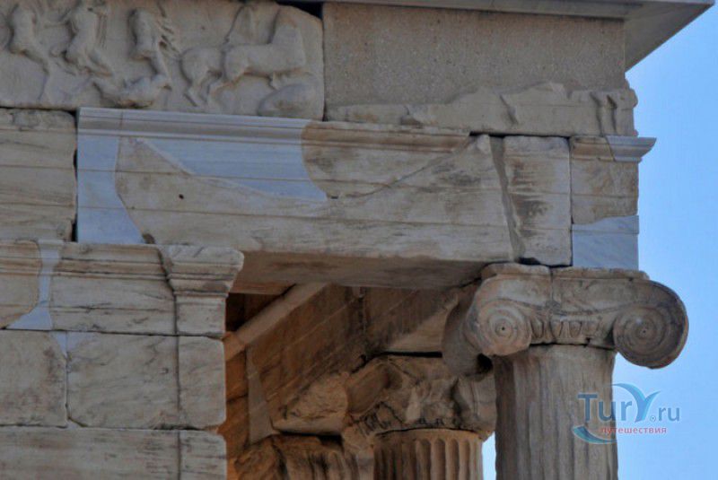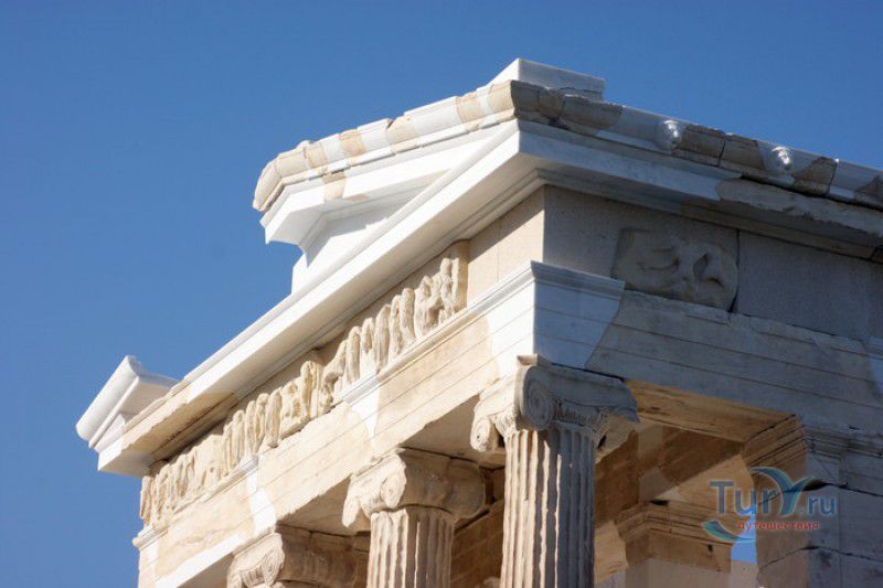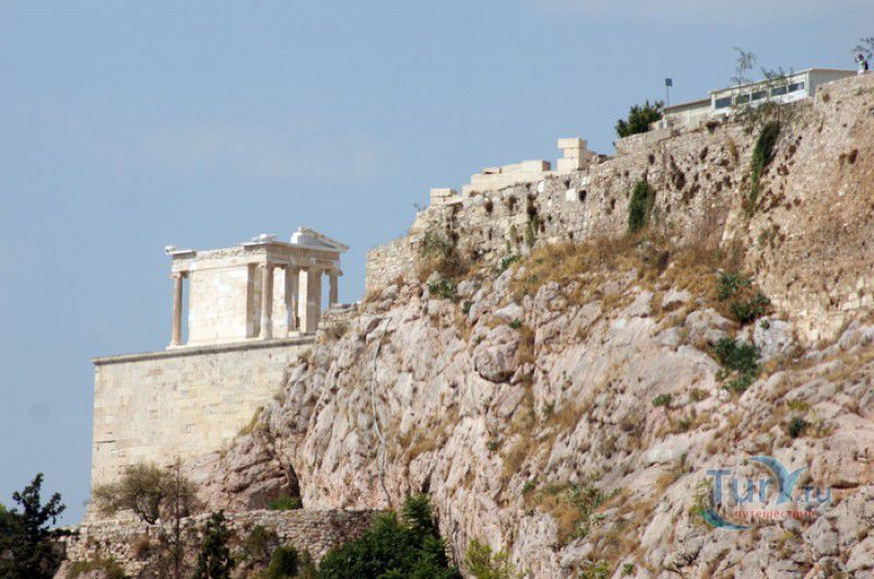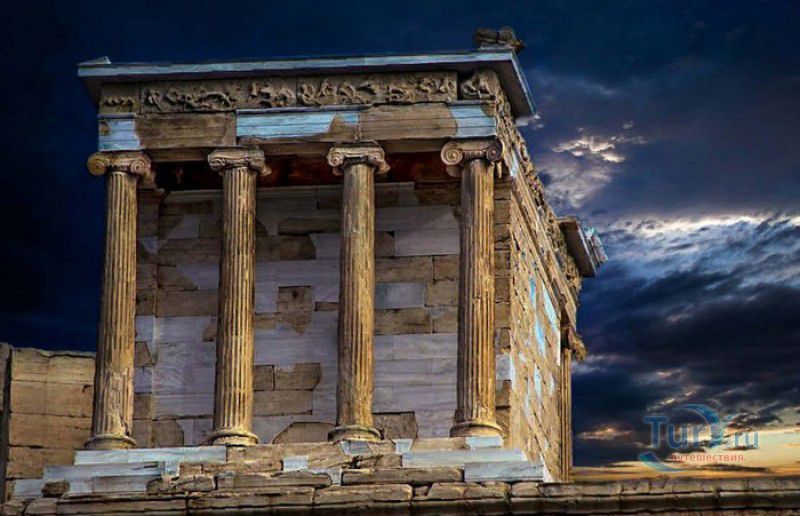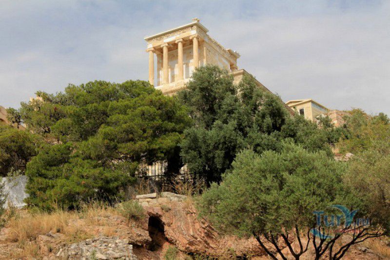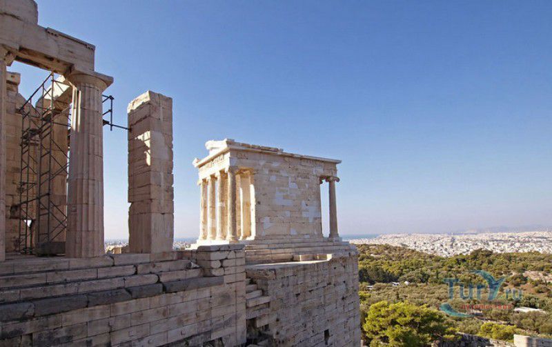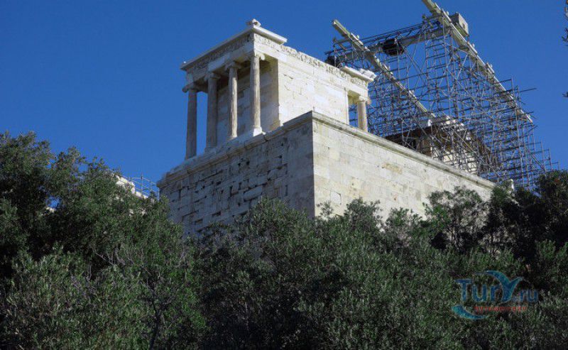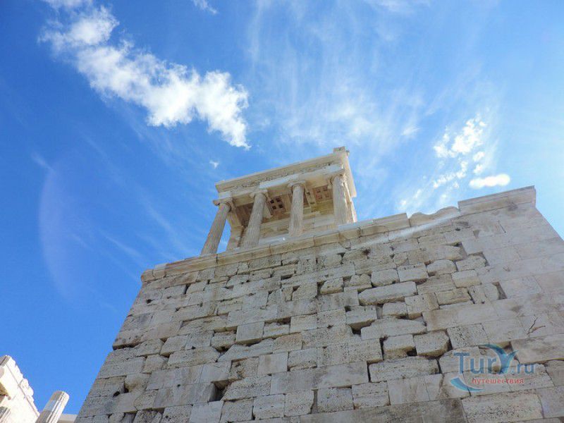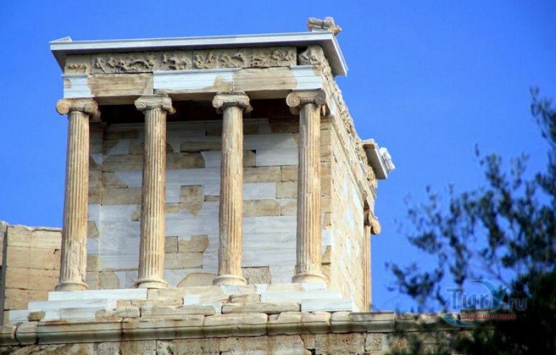 Храм Ники Аптерос расположен в юго-западной части Афинского Акрополя, справа от Пропилей - парадного входа в Акрополь. Храм Ники Аптерос - один из первых храмов на территории Акрополя, он был возведен на месте древнего святилища, построенного на отвесном плато скалистого холма ещё в микенскую эпоху. В VI веке до нашей эры на месте святилища возвели храм, посвящённый богине Афине, но в 480 году до нашей эры, во время вторжения в Элладу войск персидского царя Ксеркса, он был полностью разрушен. На его руинах в 426-421 годах до нашей эры, по проекту древнегреческого архитектора Калликрата, был построен новый храм в ионическом стиле. Сооружение представляет собой амфипростиль (здание с двумя фасадами), один фасад храма обращён к входу в Акрополь, второй "смотрит" на Парфенон. Каждый фасад украшен портиками с четырьмя колоннами ионического ордера. Само здание стоит на трёхступенчатом основании - стилобате. Фризы храма были украшены скульптурными рельефами с изображением олимпийских богов (Афины, Зевса, Посейдона) и сцен сражений между греками и персами. Уцелевшие фрагменты фриза можно увидеть в Музее Акрополя и Британском музее, на самом храме сейчас установлены их копии. Восточнее храма располагался алтарь, а вся храмовая площадка была окружена мраморным парапетом, на плитах которого были размещены барельефы с изображениями богини Ники, в том числе и знаменитый рельеф, на котором Ника изображена застёгивающей свои сандалии. Внутри храма была установлена статуя Афины, в одной руке богиня держала шлем, в другой - плод граната (символ победоносного мира). Столь необычное изображение Афины-Победительницы (обычно она была представлена в доспехах, со шлемом на голове, с копьём и знаменитой эгидой - щитом из козьей шкуры, на внешней стороне которого была размещена голова Горгоны Медузы) ввели в заблуждение древнегреческого писателя и географа Павсания, посетившего Афины во II веке и описавшем их в своём труде "Описание Эллады". Павсаний принял статую Афины за статую богини Ники - вестницы победы, крылатой спутницы Афины. Чтобы объяснить, почему Ника изображена без крыльев, Павсаний придумал красивую легенду о том, что афиняне специально просили скульптора изобразить Нику бескрылой, чтобы Победа никогда не смогла покинуть их город. С лёгкой руки Павсания за храмом закрепилось название храм Ники Аптерос (Ники Бескрылой), хотя на самом деле храм был посвящён Афине-Победительнице, покровительнице города Афины. Храм Ники Аптерос простоял более двух тысячелетий, в V веке в нём была размещена христианская церковь, а в 1686 году, во время оккупации Греции Османской империей, турки демонтировали храм, используя камни, из которых он был сложен, в качестве строительного материала для оборонительных сооружений, возводимых ими вокруг Акрополя. Храм Ники Аптерос был восстановлен в 1835 году, однако, работы были выполнены некачественно, и спустя 100 лет возникла угроза обрушения здания. Храм был разобран и на укреплённом фундаменте отстроен заново, при его восстановлении были использованы каменные блоки и фрагменты колонн, обнаруженные за прошедшее после первой реконструкции столетие. Последняя реставрация храма была проведена в начале XXI столетия. В 1987 году, в составе Акрополя, храм Ники Аптерос внесен в список Всемирного наследия ЮНЕСКО.