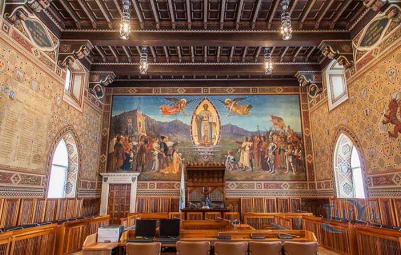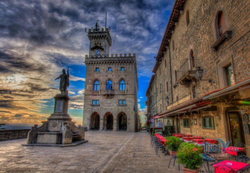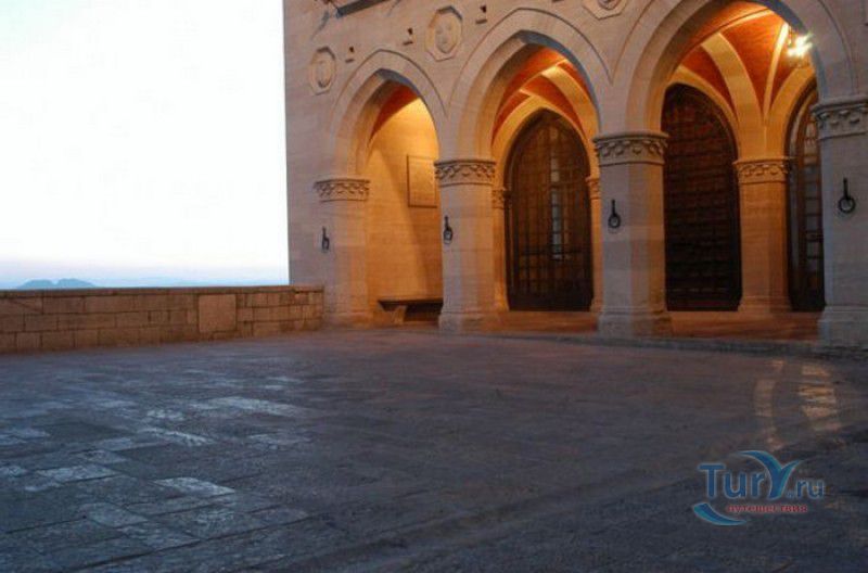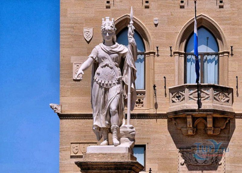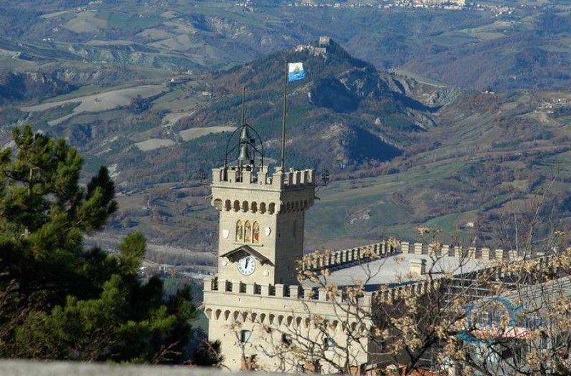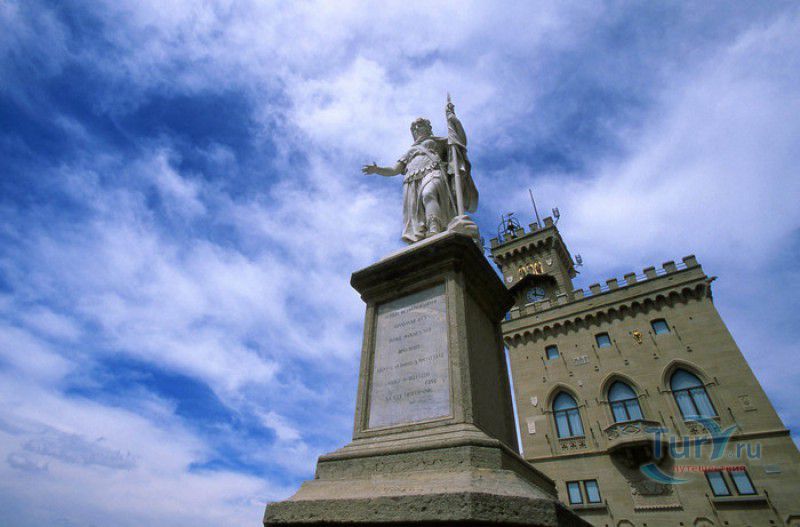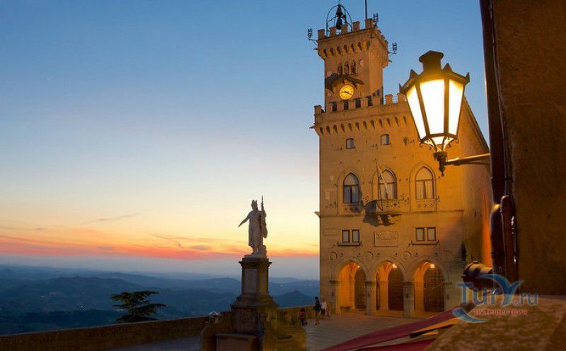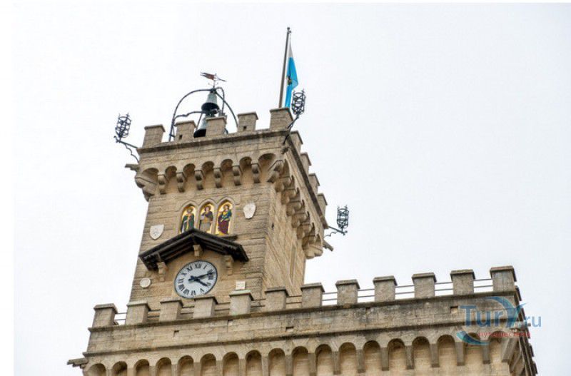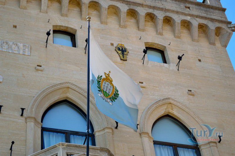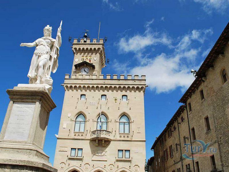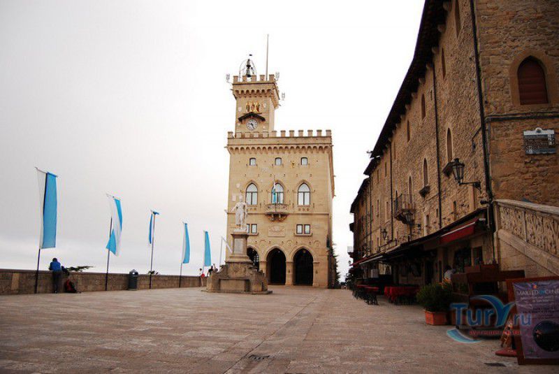 Палаццо Публико (Правительственный Дворец) расположен в историческом центре города Сан-Марино, на площади Свободы. Палаццо Публико занимают законодательные и административные органы Республики Сан-Марино - главы государства (капитаны-регенты), Большой генеральный совет, Совет Двенадцати и Государственный конгресс. Правительственный дворец стоит на месте бывшего Дома Великих Коммунн (Domus Comunis Magna), построенного в 1380-1392 годах и снесенного в конце XIX столетия из-за угрозы его обрушения. Нынешнее здание дворца в стиле средневековых итальянских палаццо было построено в 1884-1894 годах по проекту архитектора Франческо Аззурри - президента Академии Святого Луки в Риме. Для строительства дворца использовали камень, добываемый в пещерах горы Титано, работы выполнялись местными каменщиками под руководством мастера Джузеппе Реффи. Внешне Палаццо Публико является уменьшенной копией флорентийского палаццо Веккьо. Главный фасад здания поддерживают три готические арки, над которыми, на уровне мезонина, расположен многоугольный балкон, с которого капитаны-регенты (коллегиальные главы государства Сан-Марино) принимают парады, с этого же балкона объявляют имена вновь избранных глав государства (в Сан-Марино их двое и избираются они сроком на полгода). Верхняя часть дворца украшена прямоугольными (гвельфскими) зубцами, над крышей возвышается часовая башня-колокольня, оформленная такими же зубцами. На фасаде здания размещены гербы республики Сан-Марино и её четырёх муниципалитетов (Серравалле, Фиорентино, Монтеджардино и Фаэтано), геральдические символы знатных семейств Сан-Марино, над часами башни размещён мозаичный триптих, на котором изображены Святая Агата, Святой Марино и Святой Лео. Первым внутренним помещением Палаццо Публико является просторный атриум с парадной белокаменной лестницей, ведущей на верхние этажи и на балкон мезонина. Стены вестибюля украшены гербами и бюстами знаменитых уроженцев Сан-Марино, оказавших заметное влияние на историю страны. Особого внимания заслуживает великолепный полихромный деревянный потолок атриума, украшенный декоративным бордюром. Главным помещением Правительственного дворца является Зал Большого генерального совета. Одну из стен зала украшает картина, на которой изображено явление Святого Марино народу Сан-Марино. Картина была написана в 1894 году Эмилио Ретроси. В зале установлены трон капитанов-регентов, скамьи для шестидесяти членов Большого совета и трибуна для зрителей. В Зале заседаний Совета Двенадцати, оформленном в стиле XVI века, можно увидеть картину кисти Бартоломео Дженнари, на которой изображён Святой Марино, благословляющий город и его жителей. Стены небольшого зала, в котором два раз в год, во время выборов капитанов-регентов, подсчитывают голоса членов Совета, украшают картины с изображениями Святого Иоанна Крестителя и Святого Марино, написанные Джованни Ланфранко в первой половине XVII века. Спустя 100 лет после того, как Франческо Аззурри закончил строительство Палаццо Публико, стал вопрос о проведении полной реконструкция здания. Работы были выполнены в 1996 году под руководством всемирно известного архитектора Гае Ауленти. В 2008 году Палаццо Публико, в составе исторического центра города Сан-Марино, был внесен в список Всемирного наследия ЮНЕСКО.