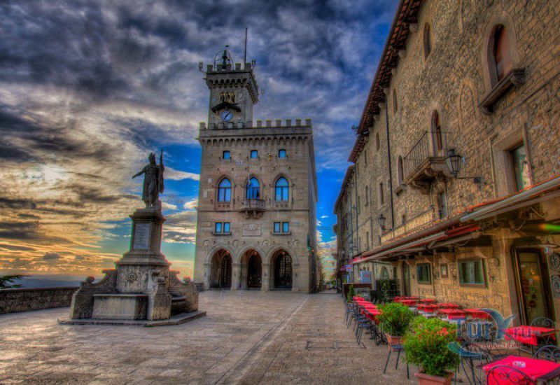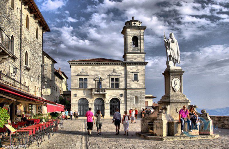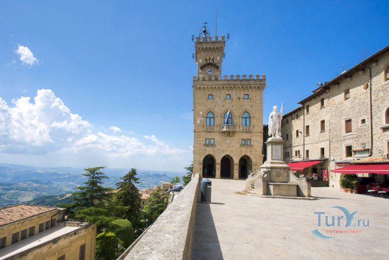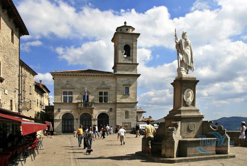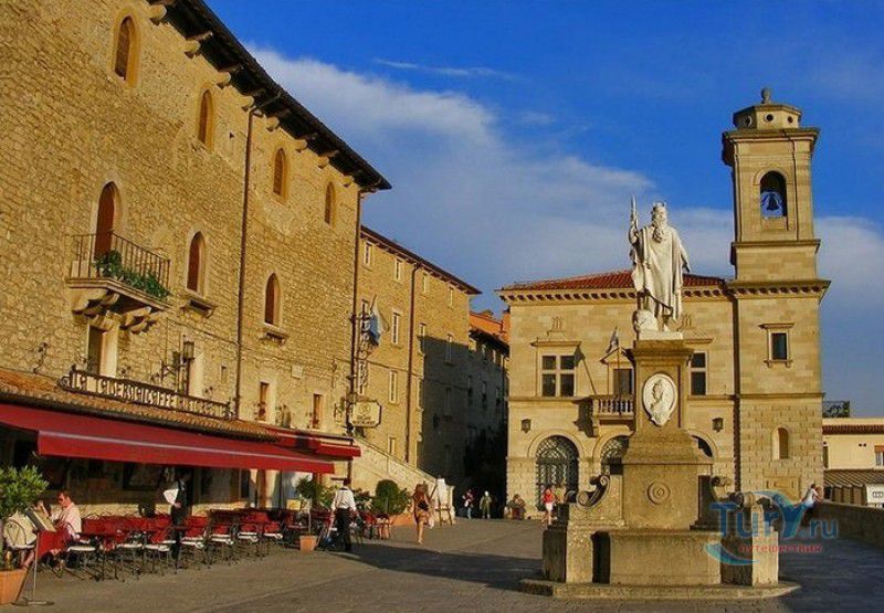 Площадь Свободы (Пианелло) - главная площадь города Сан-Марино, расположена в его историческом центре, в составе которого в 2008 году внесена в список Всемирного наследия ЮНЕСКО. Площадь существовала уже в Средние века, под ней размещались огромные цистерны для хранения дождевой воды - единственный в те времена источник питьевой воды в Сан-Марино. В конце XIV столетия на площади был построен Дом Великих Коммун (Domus Magna Comunis) - первый Общественный дворец, в котором заседал Большой генеральный совет Сан-Марино. В 1884 году старое здание снесли, а на его месте построили Палаццо Публико (Правительственный дворец), который является штаб-квартирой высших законодательных и административных органов Республики Сан-Марино. По давней традиции, два раза в год - 1 апреля и 1 октября, с балкона Палаццо Публико, выходящего на площадь Свободы, оглашают имена вновь избранных глав государства - капитанов-регентов. На противоположной стороне площади Свободы расположено историческое здание Дом Малых Коммун (Parva Domus). Когда оно было построено, достоверно неизвестно. Первые документальные упоминания о здании относятся к 1353-1378 годам. Дом Малых Коммун, перестроенный в XVI веке, отлично сохранился до наших дней, сейчас в нём располагается Государственный секретариат по вопросам внутренних дел Сан-Марино. В центре площади установлена статуя Свободы - символ независимости Республики Сан-Марино. Скульптура из белого каррарского мрамора представляет собой фигуру воина, движущегося вперёд. В руке он держит флаг, голова воина увенчана короной с тремя зубцами, символизирующими башни Гуаита, Честа и Монтале (древние башни Сан-Марино, построенные на трёх вершинах горы Титано). В 1876 году статуя Свободы, автором которой является итальянский скульптор Стефано Галлетти, была преподнесена в дар народу Сан-Марино немецкой графиней Отилией Хейрот Вагенер. На площади Свободы всегда много туристов, особенно многолюдно здесь в летние месяцы - во время туристического сезона у стен Правительственного дворца ежедневно проходит смена почётного караула, который осуществляют гвардейцы отряда Guardia di Rocca (Стражи Крепости). На главной площади Сан-Марино часто проходят концерты, ярмарки, фестивали, здесь есть много кафе и уютных ресторанчиков. Кроме того, площадь Свободы является отличной смотровой площадкой - с её края, ограждённого парапетом, открывается великолепный панорамный вид на город и его живописные окрестности.