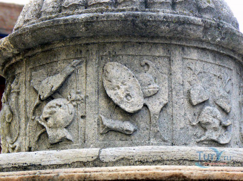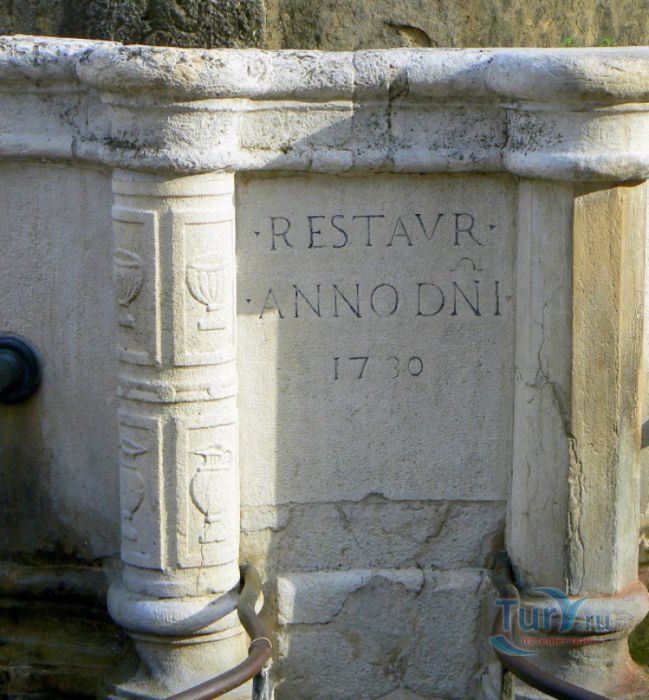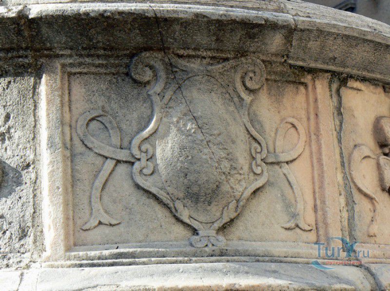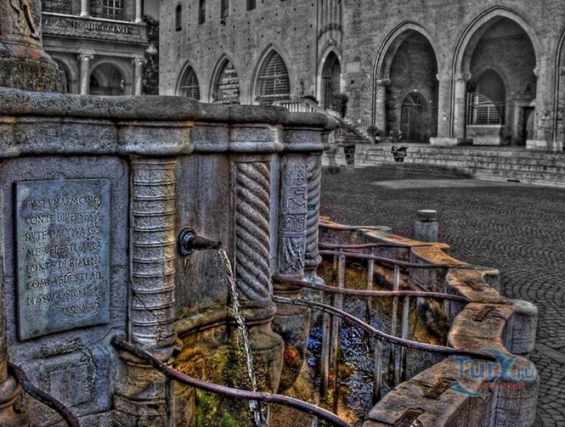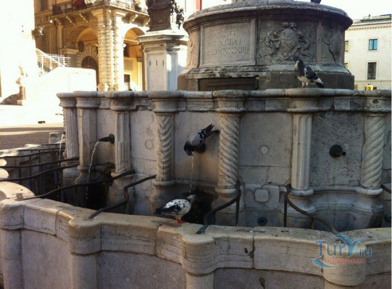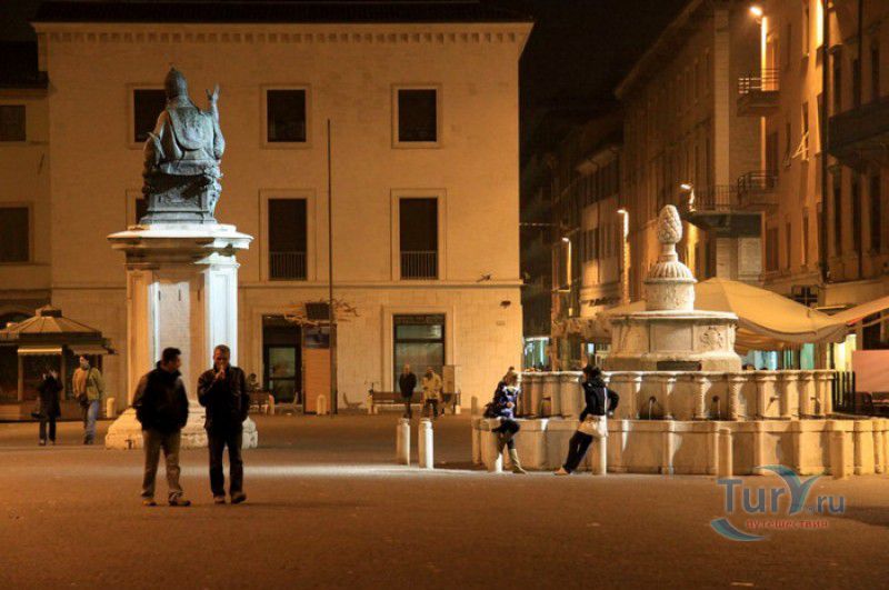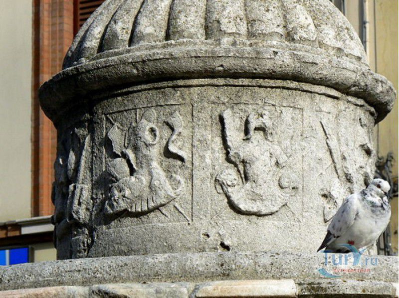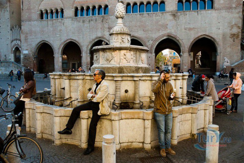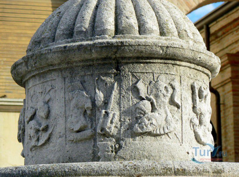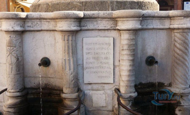 Фонтан Пинья расположен в историческом центре города Римини, на площади Кавур, рядом со статуей папы Павла V. Фонтан в Римини был построен ещё во времена Римской империи, вода в него поступала по трубам из глубокого колодца, расположенного на расстоянии около 900 метров. В 1540 году древний городской фонтан значительно пострадал из-за фейерверка, устроенного на площади Кавур по случаю назначения нового папского легата - кардинала Джованни Мария Чокки дель Монте, ставшего впоследствии папой Юлием III. В 1543 году фонтан был полностью восстановлен архитектором Джованни да Каррара, реконструкция фонтана стала возможна благодаря щедрым пожертвованиям понтифика Павла III, о чём указано на одной мемориальных табличек, прикреплённых к фонтану. Фонтан Пинья (Pigna в переводе с итальянского означает "Шишка") состоит из двух многоугольных концентрических бассейнов и центрального барабана, выполненных из белого мрамора. По всей окружности второго бассейна размещены 15 желобов с краниками, вода из которых стекает в нижний резервуар. На вершине фонтана установлена мраморная еловая шишка - символ независимости Римской Империи. Правда, с 1545 года по 1807 год фонтан венчала не шишка, а статуя папы Павла III, демонтированная во время оккупации Римини наполеоновскими войсками. В 1809 году на верхушке фонтана снова была установлена мраморная шишка, после чего за ним и закрепилось название - Fontana della Pigna. От древнеримского фонтана до наших дней сохранился лишь центральный барабан, украшенный оригинальными барельефами. Во время реконструкции фонтана, выполненной в XVI веке, повреждённые нижние бассейны были восстановлены в своём первоначальном виде, но с использованием мрамора, взятого на руинах других древнеримских сооружений. Уникальная конструкция фонтана Пинья и "мелодия" падающей воды, вызвала восхищение самого Леонардо да Винчи, посетившего Римини в 1502 году в качестве инженера и военного советника Чезаре Борджиа. Его отзыв о фонтане выбит на одной из памятных табличек, расположенных на стенках бассейна. Вплоть до 1912 года, пока в Римини не был построен центральный водопровод, фонтан Пинья был единственным источником питьевой воды в городе. Последняя реставрация фонтана была проведена в 2002 году.