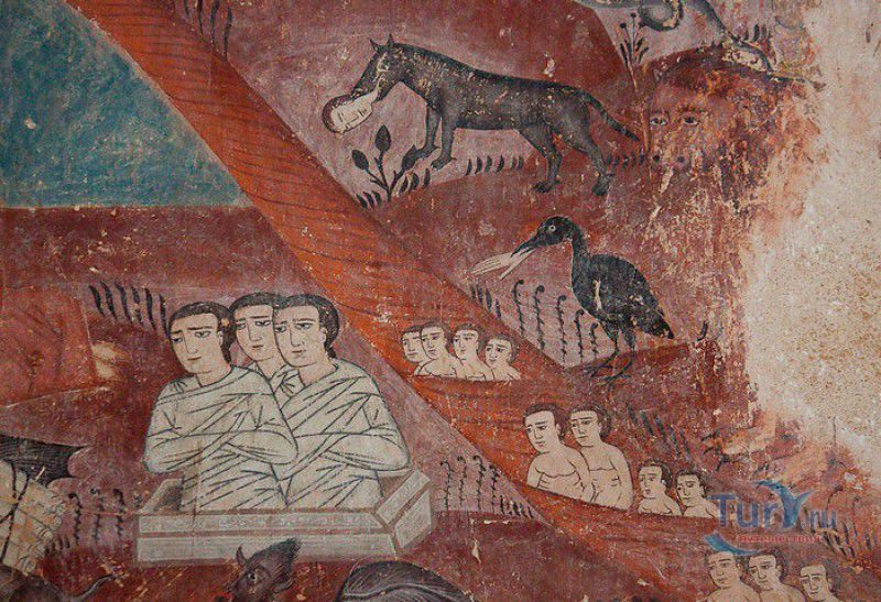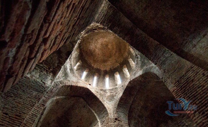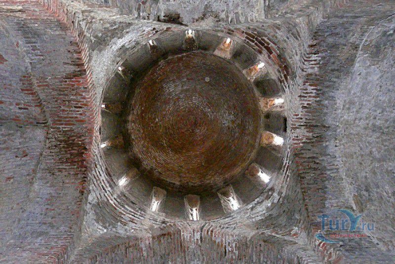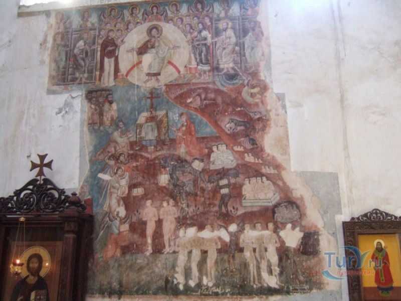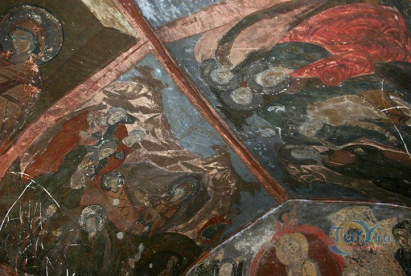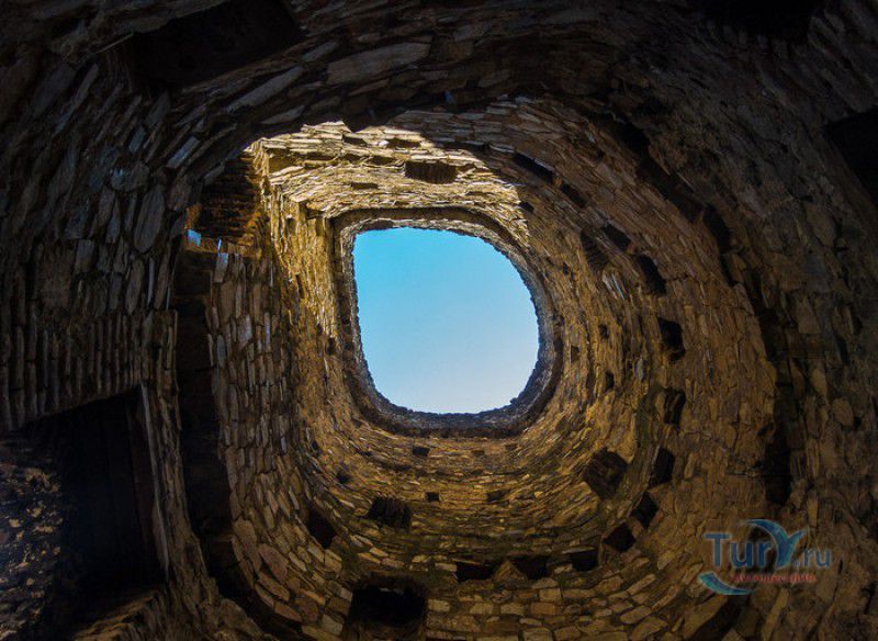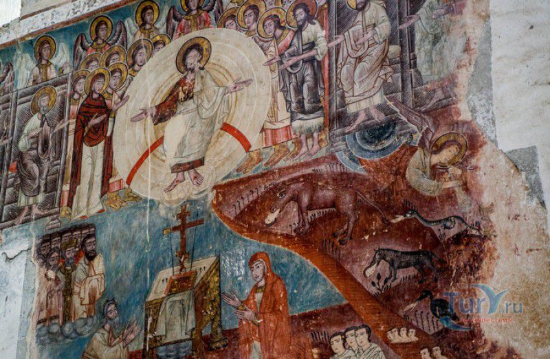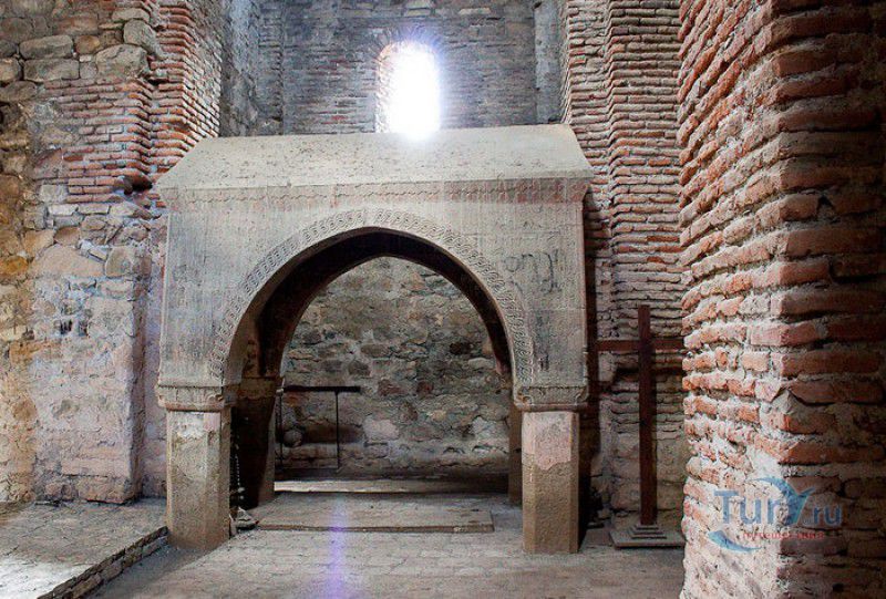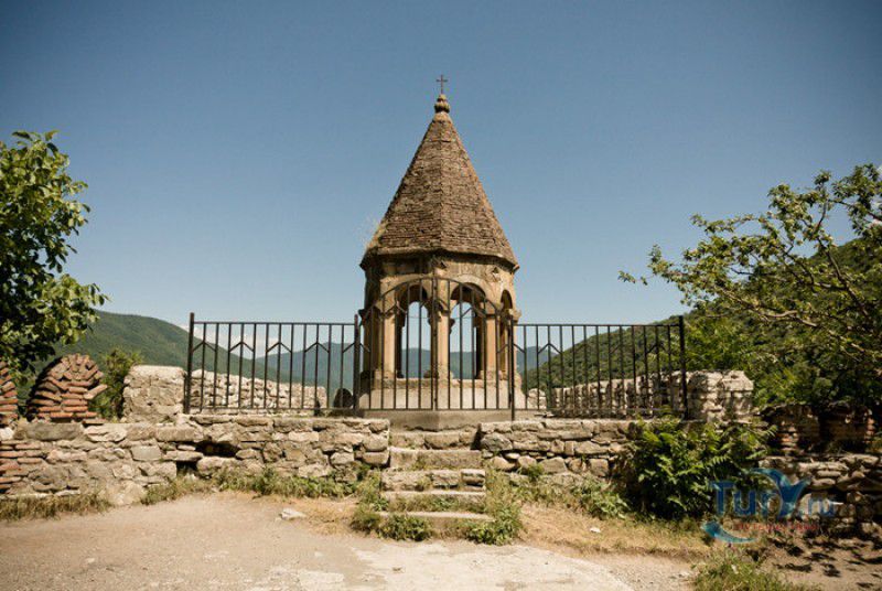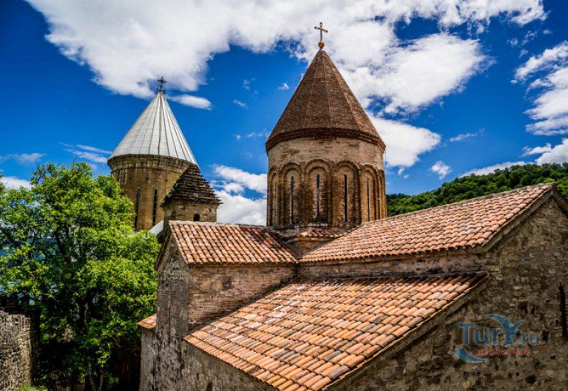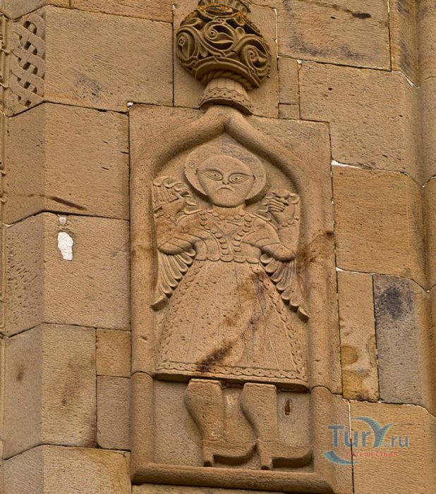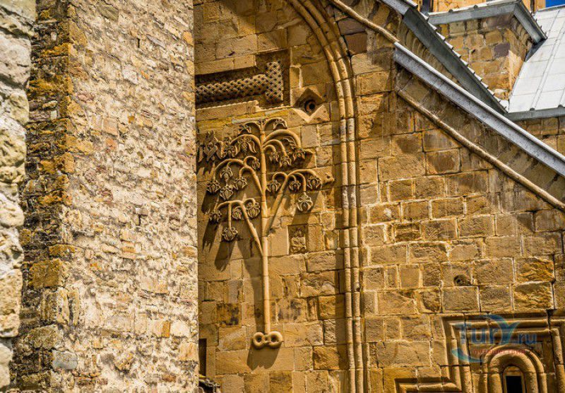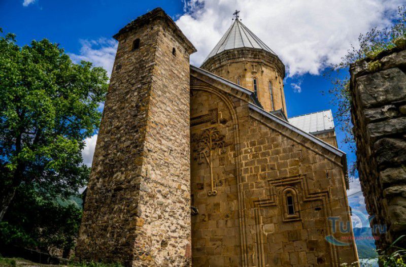 Крепость Ананури - бывший главный форпост Арагвского эриставства (средневекового феодального княжества в Грузии), расположена в 70 километрах к северу от города Тбилиси, на берегу Жинвальского водохранилища, рядом с Военно-Грузинской дорогой. Точная дата строительства крепости неизвестна, учёные сходятся во мнении, что крепость была построена в XVI-XVII веках, главным её предназначением была защита центральных районов эриставства от нападений со стороны Дарьяльского ущелья. Место для строительства крепости было выбрано очень удачно - она перекрывала дорогу, ведущую на север из города Душети - резиденции арагвских эриставов. Эта дорога проходила через узкое ущелье реки Ведзатхеви, в месте слияния которой с рекой Арагви и было возведено мощное оборонительное сооружение - крепость Ананури. Об Ананурском замке в исторических хрониках нет никаких сведений вплоть до первой четверти XVIII века, впервые события, связанные с крепостью Ананури, были описаны грузинским историком Вахушти Багратиони. В XVIII столетии Арагвское эриставство подвергалось постоянным набегам лезгин, иранцев и турок, кроме того, правители княжества вели междоусобные войны за власть. Известно, что крепость Ананури в это время не раз становилась последним оплотом правителей Арагвского эриставства и выдерживала продолжительные осады. После того, как в январе 1801 года Грузия вошла в состав Российской империи, в крепости Ананури был размещён русский гарнизон, который охранял Военно-Грузинскую дорогу - главную магистраль, соединявшую Грузию с Россией. После ухода в 1917 году российских военных частей из Грузии крепость Ананури оказалась заброшенной и постепенно разрушалась. До наших дней от мощного оборонительного сооружения сохранился лишь верхний замок (цитадель) с мощными крепостными стенами, квадратной башней с пирамидальной крышей (самой ранней постройкой на территории крепости), двумя храмами и колокольней. От нижнего замка и двух небольших церквей, расположенных на его территории, остались одни руины. Находящаяся на территории крепости церковь Успения Богородицы была возведена в 1689 году. Храм построен из тёсаного камня, его фасады украшены рельефами с изображением святых, животных и растений. На южном фасаде размещён огромный резной крест, украшенный декоративным орнаментом, а на стене, рядом с центральным порталом, выбиты письмена на грузинском языке. Внутри церкви сохранились старинный алтарь и несколько фресок, на которых изображены сцены из Страшного суда и лики тринадцати Святых отцов - основоположников православия в Грузии. Настенные росписи Успенского храма считаются одними из лучших образцов грузинского церковного искусства эпохи позднего Средневековья. Спасский храм или церковь Девы Марии датируется концом XVI - началом XVII веков, внутри церкви можно увидеть каменное надгробие с надписью, свидетельствующей о том, что под могильной плитой покоится тело эристава Эдишера, умершего в 1674 году. Несколько надгробий сохранились и на территории крепости, они расположены у стен храмов. Почти вплотную к церкви Успения Богородицы примыкает четырёхэтажная квадратная башня, на самом верху которой есть небольшое помещение с узким окном-бойницей - некогда здесь располагался наблюдательный пункт гарнизона крепости. Сохранилась и узкая винтовая лестница