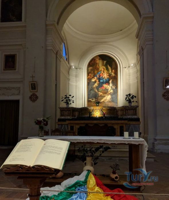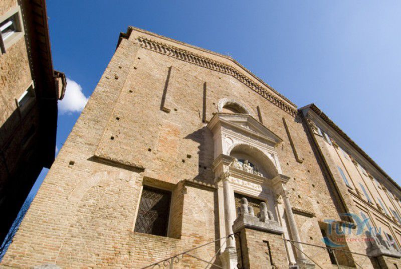 Церковь Сан-Доменико расположена в центре города Урбино, рядом с Палаццо Дукале (Дворцом герцогов Урбино). Церковь в готическом стиле была возведена орденом Доминиканцев в 1362 году и освящена в честь Святого Доминика в 1365 году. Здание, построенное из красного обожжённого кирпича, имело строгие формы и было лишено каких-либо декоративных украшений. Единственной архитектурной деталью, служившей в качестве украшения, была двойная лестница, ведущая к центральному входу церкви. В первой половине XV века центральный портал храма украсили великолепным портиром в стиле ренессанс из травертина (известкового туфа), автором которого является флорентийский скульптор и архитектор Мазо ди Бартоломео. Над входом размещена скульптурная композиция из глазурованной терракоты, на которой изображена Мадонна с младенцем в окружении святых Доминика, Фомы Аквинского, Альберта Великого и Петра Веронского. Автором работы является итальянский скульптор Лука делла Роббиа, в настоящее время в церкви Святого Доминика установлена копия, оригинальный люнет хранится в Палаццо Дукале. В XVIII веке, после реконструкции храма, здание было украшено декоративным фризом, а отверстие купола - декоративным растительным орнаментом. В это же время был полностью обновлён интерьер церкви - к сожалению, большая часть настенных росписей, украшавших апсиду, была безвозвратно утеряна. До наших дней сохранились лишь картина Джованни Конка с изображениями Мадонны с младенцем, святых Доминика, Екатерины Сиенской и Розы Лимской (главный алтарь) и два полотна кисти Франческо Ванни с изображениями ангелов. В настоящее время церковь не действует, посетить её можно только во время культурно-выставочных мероприятий, регулярно в ней проводящихся. В 1998 году церковь Сан-Доменико в составе исторического центра города Урбино была внесена в список Всемирного наследия ЮНЕСКО.