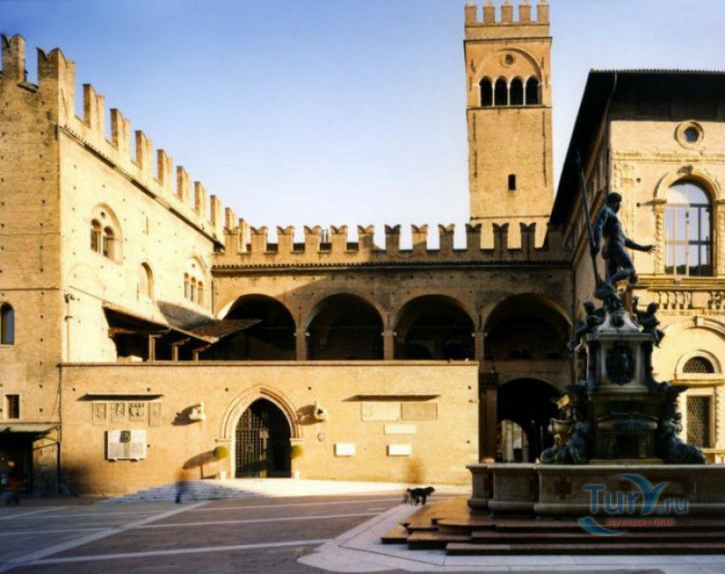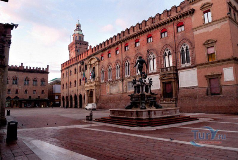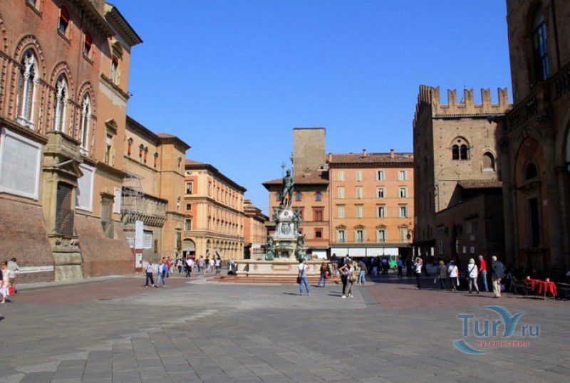 Площадь Нептуна расположена в историческом центре Болоньи и граничит с главной площадью города Пьяцца Маджоре. Площадь Нептуна появилась в Болонье в 1565 году, она была создана по распоряжению папского легата кардинала Пьера Донато Чези, "приложившего руку" к благоустройству Пьяцца Маджоре и исторического центра города. Территория между Ратушей и Палаццо Подеста была очищена от старых построек, в центре вновь созданной площади был установлен фонтан с огромной бронзовой статуей Нептуна, которую в 1567 году изготовил флорентийский скульптор-маньерист, фламандец по происхождению, Джамболонья. Автором проекта самого фонтана и акведука, по которому вода в фонтан Нептуна (и во Дворец Коммуны) поступала из родника Ремонда, расположенного в окрестностях монастыря Сан Микеле, является архитектор из Палермо Томмазо Лаурети. Фонтан Нептуна, по замыслу кардинала-легата Пьера Донато Чези, должен был стать символом долгого и счастливого правления Папы Римского Пия IV - как Нептун повелевает морями, так папа Пий IV - всем католическим миром. Как бы то ни было, но своим названием площадь Нептуна обязана именно этому фонтану. На площади расположен Палаццо Ре Энцо (Palazzo Re Enzo), построенный в готическом стиле в 1244-1246 годах. В его стенах с 1249 года по 1272 год содержался под стражей король Сардинии Энцо - сын императора Фридриха II был захвачен в плен во время битвы при Фоссальте и провёл в заключении 23 года, во дворце-тюрьме он и умер в 1272 году. В настоящее время Палаццо Ре Энцо используется для проведения выставок, ярмарок и конференций. Также на площади находятся Палаццо Подеста (его центральный фасад выходит на площадь Маджоре), здание городской библиотеки Salaborsa и мемориал, посвящённый памяти погибших в годы Второй мировой войны участников антифашистского Сопротивления.