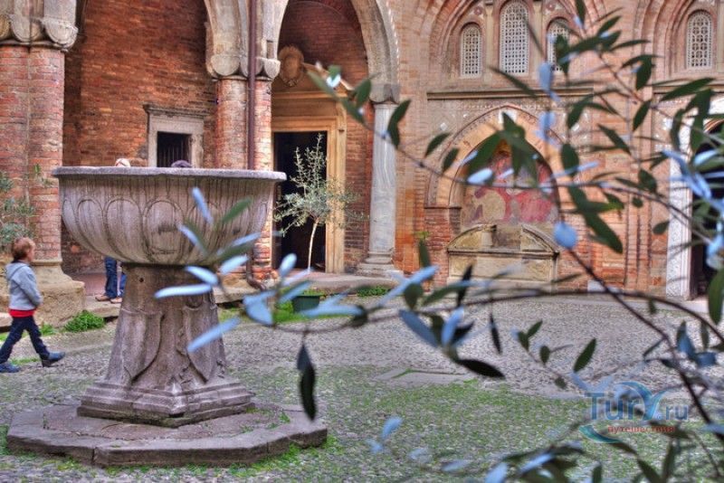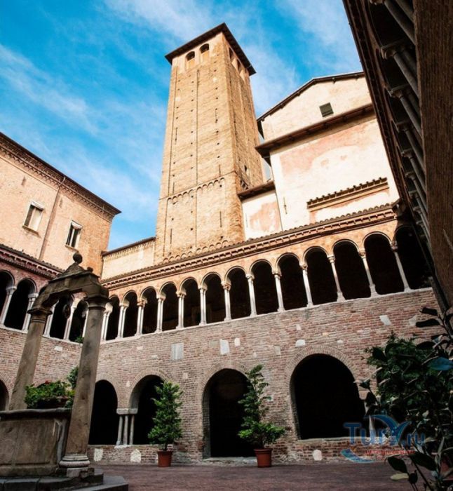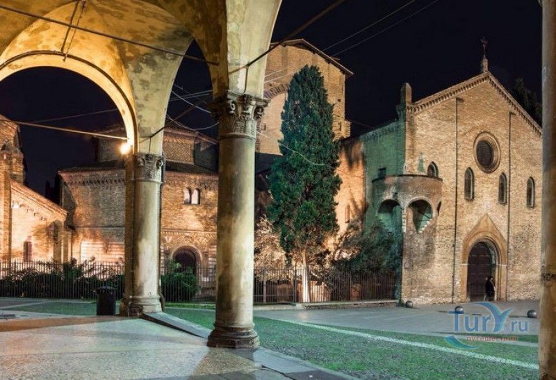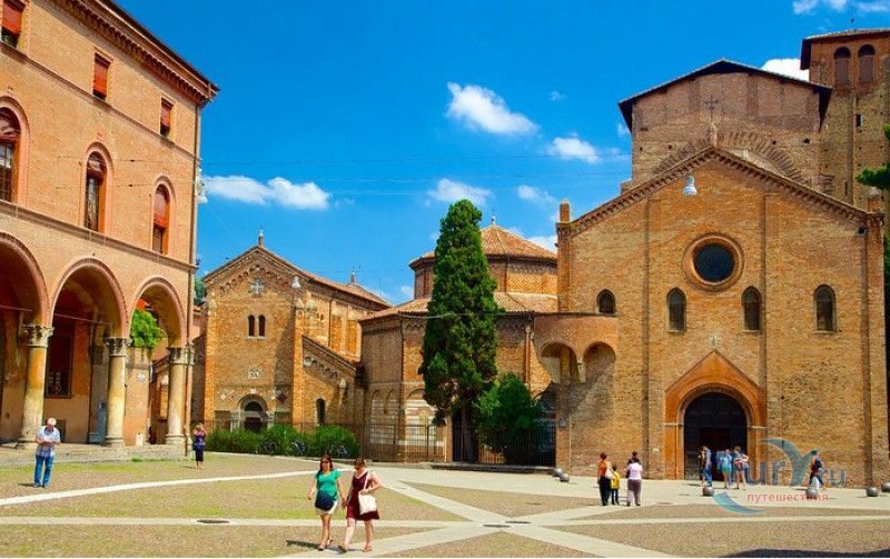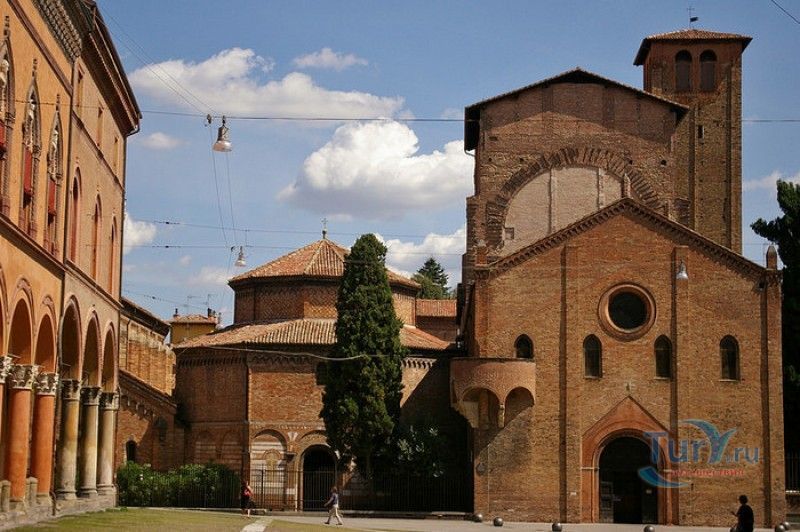Базилика Санто-Стефано (Семь Церквей) представляет собой комплекс христианских религиозных сооружений, расположенный в историческом центре Болоньи, на площади Святого Стафания. По легенде, комплекс был основан в V веке епископом Болоньи Святым Петронием на месте языческого храма, посвящённого египетской богине Исиде. По замыслу Петрония, комплекс должен был стать подобием Храма Гроба Господня в Иерусалиме. Исследования учёных подтверждают древность построек, но, хотя, все здания комплекса относятся к Раннему Средневековью, они были построены в разное время. До наших дней из семи церквей Базилики Санто-Стефано сохранились только четыре, самой старой из которых является церковь Святых Виталия и Агриколы. Она была построена в IV веке, именно в этой церкви находятся саркофаги с мощами Святых Виталия и Агриколы - болонских мучеников, казнённых в 305 году за проповедование христианства по приказу императора Диоклетиана. Сама церковь воздвигнута на месте античного амфитеатра, в котором Святые Виталий и Агрикола были казнены. За свою долгую историю церковь неоднократно перестраивалась, романский облик здание приобрело в XI веке. Базилика Гроба Господня датируется V веком, она представляет собой восьмиугольное в плане здание, купол которого поддерживают 12 колонн (7 мраморных и 5 кирпичных). В центре храма расположена эдикола (часовня), в которой долгое время хранились мощи Святого Петрония. Они были обнаружены в этом же храме в 1141 году, что позволило учёным предположить, что в Базилике Гроба Господня Святой Петроний и был похоронен. В 2000 году его мощи были перенесены в Базилику Святого Петрония (главный собор Болоньи). Одна из мраморных колонн храма, выполненная из полосчатого мрамора (циполино), символизирует колонну бичевания Христа, надпись на ней обещает индульгенцию на 200 лет "каждому, кто видит это место". В XIII веке свод и стены базилики были украшены фресками на библейские сюжеты, но во время реставрации храма, проводившейся в XIX столетии, они были удалены (сохранившиеся фрагменты сейчас хранятся в музее Базилики Санто-Стефано). Во дворе церкви Гроба Господня сохранился святой источник, олицетворяющий воды Иордана. Церковь Распятия была построена лангобардами в VIII веке, она представляет собой однонефный храм с пресвитерием и криптой, расположенной под ним. В центре пресвитерия, к которому ведёт парадная лестница, помещено большое Распятие, выполненное в 1380 году болонским скульптором Симоне деи Крочифисси. На стенах сохранились фрески XV века "Мученичество Святого Стефана". Крипта церкви разделена колоннами различной формы на пять нефов. По легенде, одна из колонн от цоколя до капители имеет высоту, равную росту Иисуса Христа (около 170 сантиметров). У её основания, на алтаре, установлены две урны, в которых хранились мощи Святых Виталия и Агрикола. На стене, с обеих сторон от алтаря, под слоем штукатурки были обнаружены две фрески XVI века, посвященные житию болонских мучеников. В левом нефе сохранилась фреска начала XV века "Богоматерь Снегов" (Madonna della Neve). Троицкая церковь (церковь Святого Креста) своё название получила благодаря частице Святого Креста, привезённого из крестового похода и хранившегося в капелле церкви до 1950 года. Её строительство было начато в V веке, первоначально церковь планировали построить в виде пятинефной б