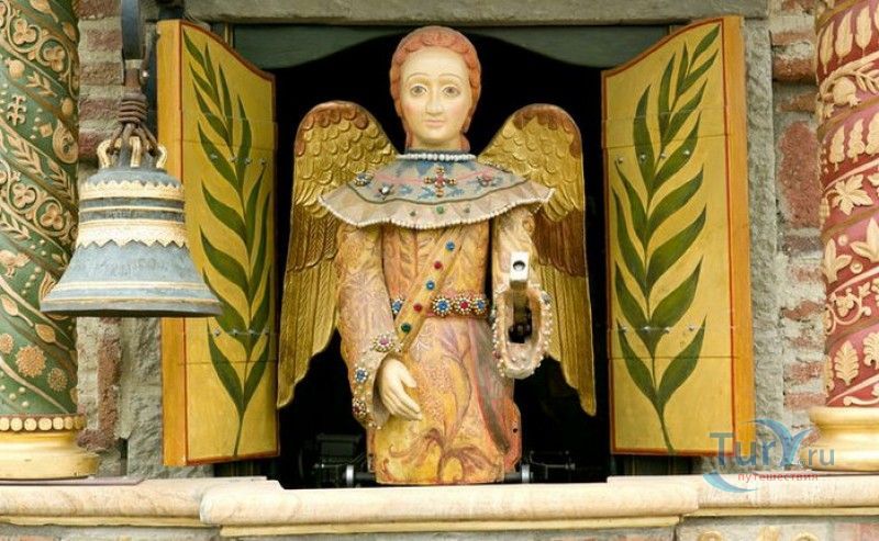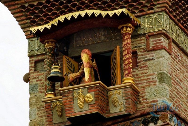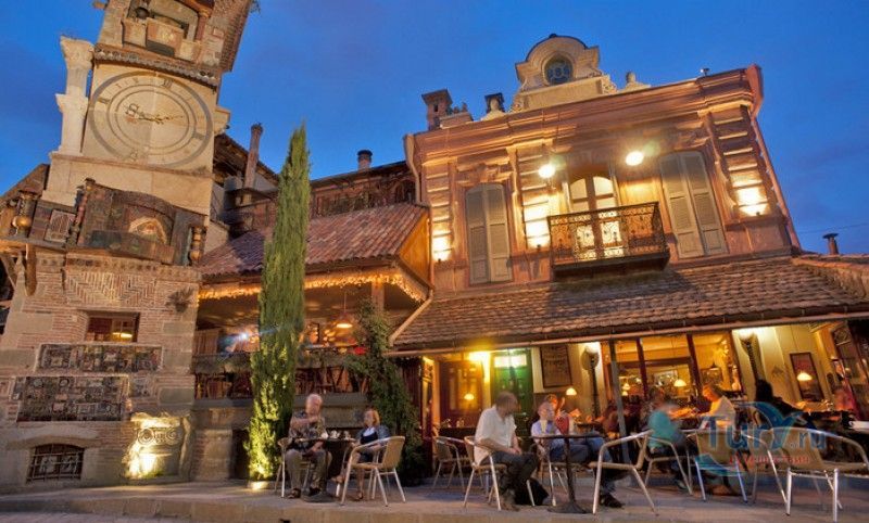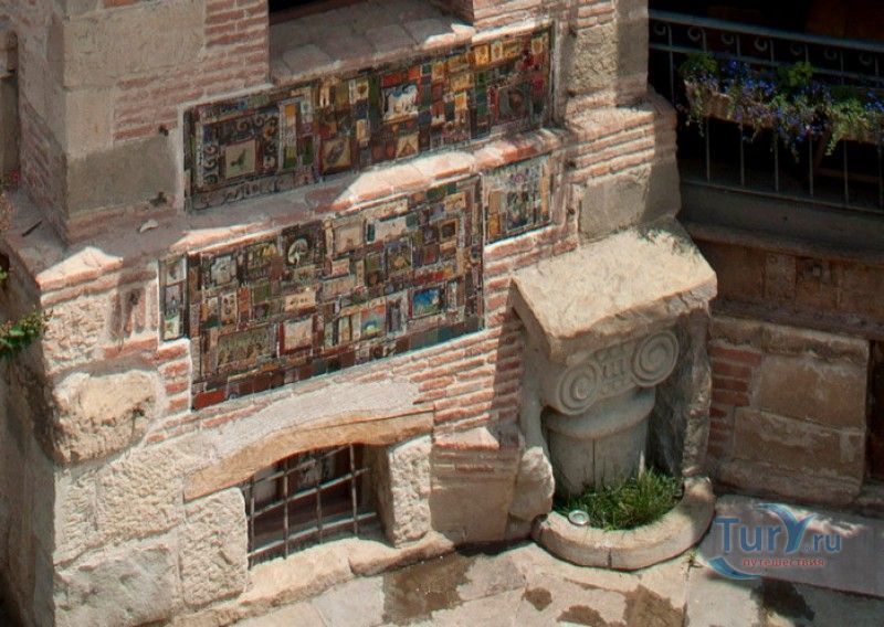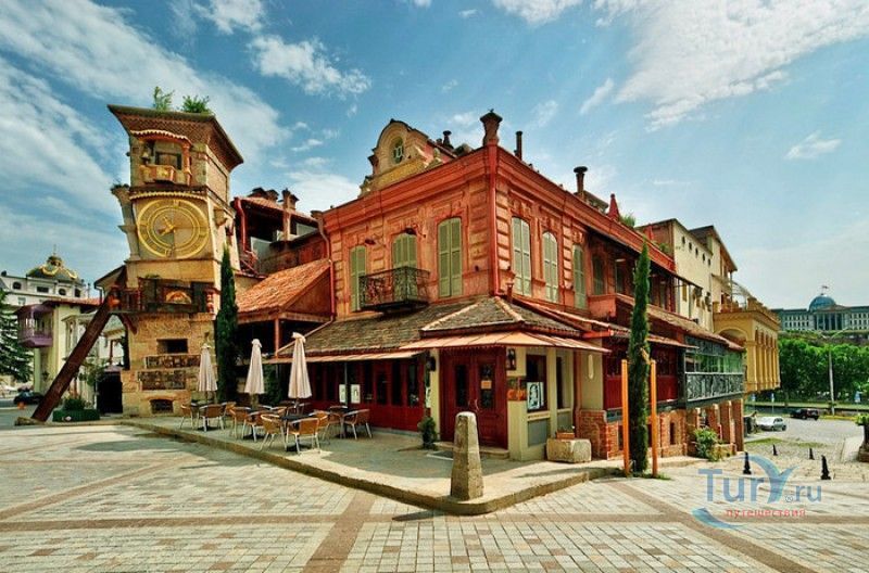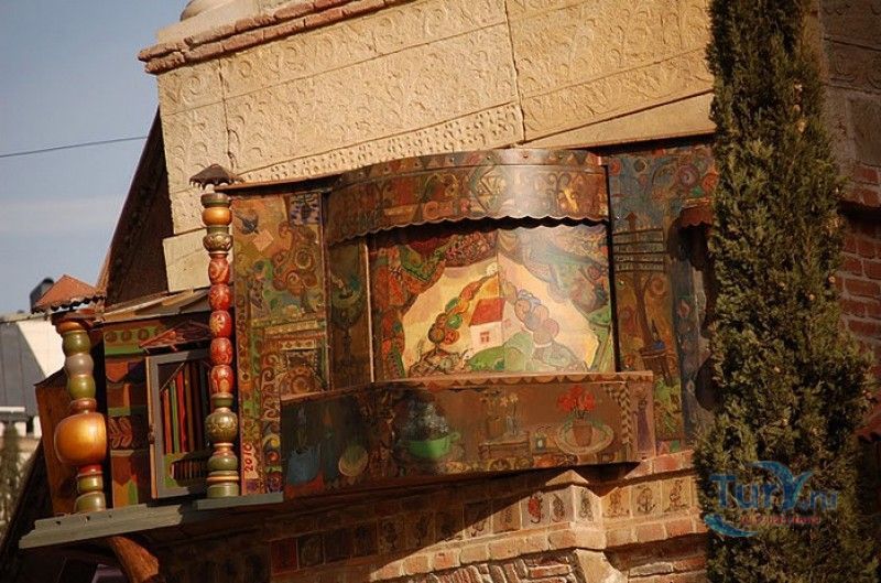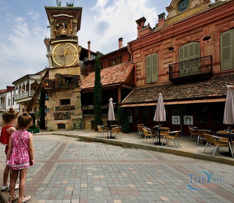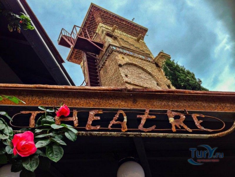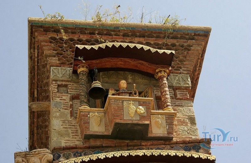 Башня Театра Марионеток Резо Габриадзе - одна из самых популярных достопримечательностей Тбилиси, на фоне которой считают необходимым сфотографироваться многие туристы, посещающие столицу Грузии. Необычная башня была построена в 2010 году по инициативе известного грузинского кинорежиссёра Резо Габриадзе (создателя знаменитых фильмов "Мимино" и "Кин-дза-дза!") и руководителя тбилисского Театра марионеток, к празднованию 30-летнего юбилея которого открытие башни и было приурочено. По замыслу Габриадзе, облик башни должен был органично вписаться в колорит старого Тбилиси и в то же время напоминать средневековые сооружения Византии. Строительный материал для башни собирали всем театром, рассказывая о своём детище Резо Габриадзе вспоминает: "Мы строили, как в старину - собирали камни, кирпичи, некоторым по 200 - 300 лет. Как разрушается дом - так мы появляемся. В этом участвовал весь театр. И четыре года приставляли один камень к другому, потому что камни должны соединяться, как люди - по любви, конфликтуя или обнимаясь". В результате, башня была сконструирована из множества уникальных деталей - древних угловатых камней, старинных кирпичей, фрагментов византийских колонн и перекошенного циферблата часов. Мало того, башня, по подобию Пизанской башни, имеет наклон и подпирается чугунным перекрытием, взятым со старого разрушенного моста. Изразцы, которыми украшено основание башни, были вручную расписаны лично Резо Габриадзе - среди нескольких сотен сюжетов, изображённых на них, нет ни одного повторяющегося рисунка. На крыше башни оборудован небольшой зелёный садик, в котором растёт дерево граната - "древо жизни", символизирующее ростки новой жизни, пробивающиеся "сквозь века цивилизации". Каждый час в верхней части башни раскрываются дверцы и на балконе появляется кукольный ангел с золотыми крыльями. В руке он держит молоточек, которым бьёт в маленький колокол, закреплённый на фасаде башни. Отбив полный час, ангел поворачивается спиной, делает взмах своими золотыми крыльями и скрывается в своём домике. Дважды в день, в полдень и в семь часов вечера, на балконе среднего яруса башни разыгрывается кукольный мини спектакль "Цикл жизни" - под весёлую грузинскую мелодию раскрывается расписной железный занавес, и на балконе появляются счастливые молодожёны. В следующей сцене они уже нянчат малыша, затем зрители видят семейную пару преклонных лет, и в конце - две могилки под высокими елями. Но на этом спектакль не заканчивается - на балконе снова появляются молодожёны, символизируя неизбежное продолжение жизни и круговорот времени. Башня Габриадзе не только стала украшением Театра марионеток, но великолепно вписалась в архитектурный ансамбль старого города, местные жители дали ей своё название - "Башня с ангелом".