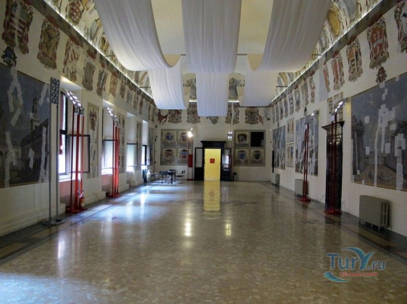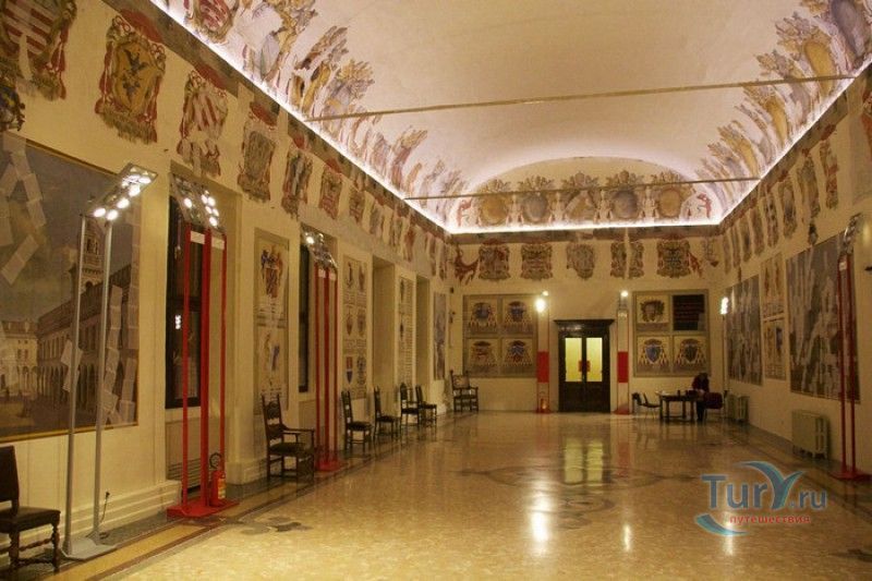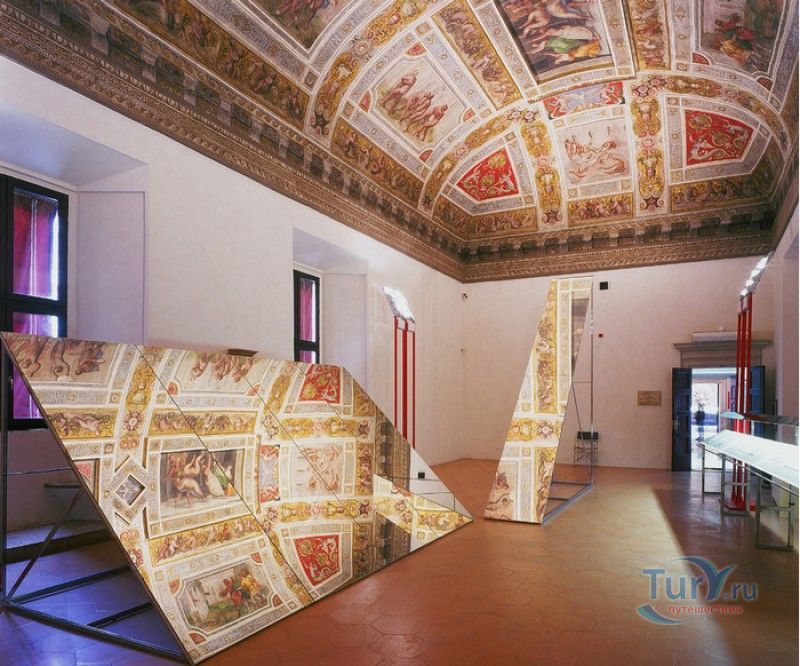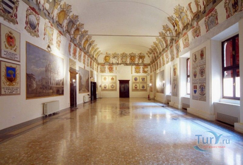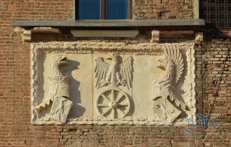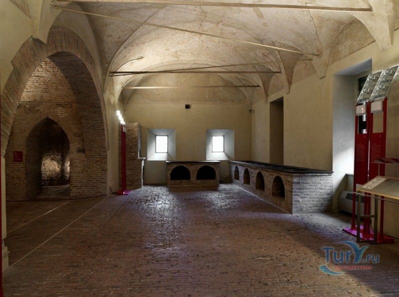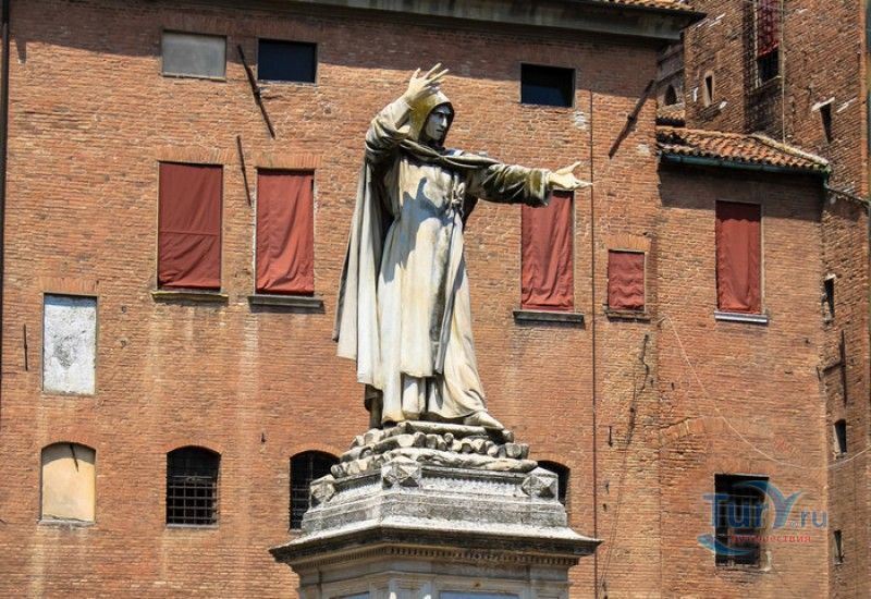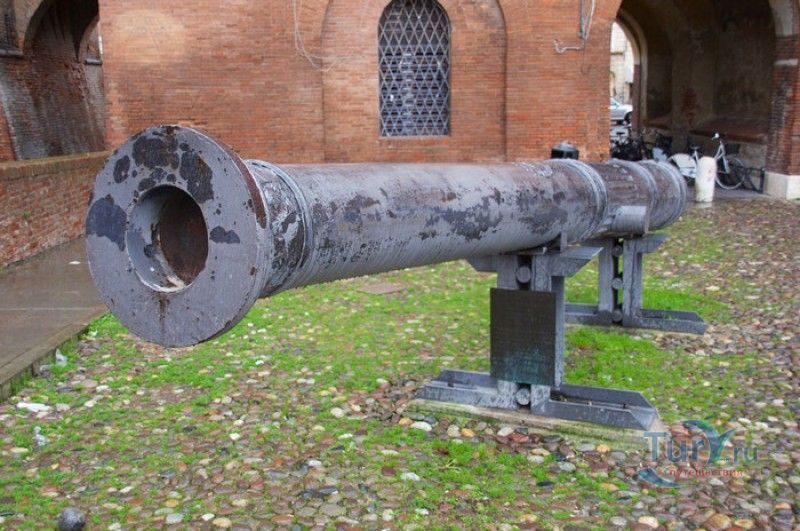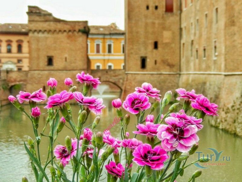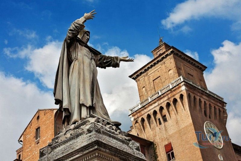 Замок Эстенсе расположен в исторической части города Феррара, в 200 метрах к северу от Кафедрального собора. Замок Эстенсе - средневековый замок, бывшая резиденция древнего и знатного рода д'Эсте, правившего в Ферраре более чем 500 лет. До 1385 года резиденцией семьи д'Эсте был Палаццо Комунале, однако, после бунта жителей Феррары, возмущённых высокими налогами, тогдашний правитель города маркиз Никколо II д'Эсте решил, что нынешний дворец не гарантирует его семье защиту от взбунтовавшейся толпы, и приказал начать строительство нового замка рядом с Палаццо Комунале. Замок, по замыслу правителя Феррары, должен был стать оплотом правящей династии в мятежном городе, а также символом политической власти и военной мощи рода д'Эсте. Возведение замка-крепости было поручено архитектору Бартолино да Новара, который при строительстве использовал часть фортификационных сооружений города, в частности, башню Львов (Torre dei Leoni), датируемую XIII веком и являющуюся частью городской крепостной стены. Первый камень в основание крепости был заложен 29 сентября 1385 года, в день Святого Михаила, поэтому и замок был назван в честь этого святого. Замок Эстенсе представляет собой квадратное сооружение с мощными стенами и четырьмя угловыми башнями, каждая из которых имеет своё название - башня Львов, башня Святого Павла, башня Святой Екатерины и башня Маркизы. Замок окружён рвом, заполненным водой, имеет три подъёмных моста, впереди крепостного рва расположены кирпичные равелины. В XV веке, во время правления Эрколе I д'Эсте, замок стал превращаться в роскошную резиденцию знатного семейства - стали обустраиваться внутренние помещения, большое внимание было уделено оформлению интерьеров, были также значительно расширены жилые апартаменты. Перестройка замка была поручена знаменитому итальянскому архитектору, художнику и декоратору Джироламо да Карпи, благодаря которому замок приобрёл свой нынешний "облагороженный" вид. В 1598 году, ввиду отсутствия законных детей у герцога Альфонсо II, власть в Ферраре перешла к Папскому престолу - фактически правителем города стал папа Климент VIII. Члены семьи д'Эсте переехали в Модену, а в их дворце стали хозяйничать папские легаты. Так продолжалось вплоть до 1860 года, когда Феррара стала частью Королевства Италия. В 1874 году замок Эстенсе перешёл в собственность города и долгое время использовался как штаб-квартира префектуры провинции Феррара. Во время Второй мировой войны замок был почти полностью разрушен, реставрация была проведена в 1998-2003 годах, после чего замок Эстенсе был превращён в музей и открыт для посетителей. В цокольном этаже замка, наиболее сохранившем черты средневековой крепости, расположены большие готические залы с высокими сводчатыми потолками (бывшие личные апартаменты Никколо II, Никколо III, Лионелло и Альфонсо II д’Эсте), замковые кухни (на месте бывшего восточного равелина), а в подземелье, под башней Львов, находится замковая тюрьма, в которой содержали заключённых из знатных дворянских семей, бывших, как правило, личными врагами рода д'Эсте. На стенах темницы до сих пор сохранились надписи, сделанные знаменитыми узниками. На втором этаже расположены лоджия и Апельсиновый сад, Герцогская часовня, приёмные покои и парадные залы - Гербовый зал, комната Вакханалий, зал Игр, зал Авроры, зал Географии, комна