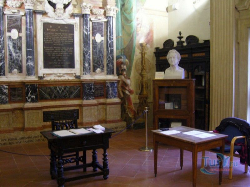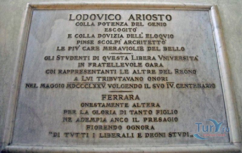 Палаццо Парадизо (Библиотека Ариосто) расположен в историческом центре города Феррара, в составе которого внесен в список Всемирного наследия ЮНЕСКО. Дворец был возведен в 1391 году по заказу Альберто V д'Эсте, правителя Феррары, по случаю его бракосочетания с Джованной да Роберти. Здание дворца состоит из четырёх корпусов, в плане образующих прямоугольник, внутри которого обустроен внутренний двор с садом. Залы палаццо были украшены фресками, которые прославляли великолепие и пышность феррарского двора, а также изображали сцены, прославляющие рыцарские идеалы, соответствующие духу того времени. В 1437-1438 годах, во время проведения Ферраро-Флорентийского Вселенского собора, в Палаццо Парадизо проживали византийский император Иоанн Палеолог и Папа Римский Евгений IV, прибывшие в Феррару для участия в Соборе. Специально к этому событию итальянским живописцем Антонио Альберти была написана большая фреска с изображением Райской жизни, которая украсила парадный зал дворца, но, к сожалению, не сохранилась до наших дней. Во время правления герцога Борсо д'Эсте одноэтажный дворец стал двухэтажным, а в 1567 году кардинал Ипполито II д'Эсте, сын Альфонсо I д'Эсте и Лукреции Борджиа, передал Палаццо Парадизо в собственность Феррарскому университету для размещения в нём учебных факультетов. В это же время дворец был значительно перестроен - его главный фасад переориентирован на Via delle Scienze, построен новый беломраморный портал и возведена часовая башня над ним. Автором проекта реконструкции палаццо является итальянский архитектор Джованни Баттиста Алеотти. В 1731 году на первом этаже дворца был создан Анатомический театр, а в 1753 году в палаццо была размещена Городская библиотека, названная в честь великого итальянского поэта и драматурга эпохи Возрождения - Лудовико Ариосто, автора поэмы "Неистовый Роланд". Ариосто пользовался покровительством герцога Альфонса I д'Эсте и кардинала Ипполита д'Эсте, занимал должность придворного комедиографа, отвечал за организацию различных придворных празднеств и был автором первых театральных постановок при феррарском дворе. В 1801 году урна с прахом Ариосто была перенесена из церкви Святого Бенедикта в Палаццо Парадизо, где была похоронена в мраморном мавзолее, построенном по проекту архитектора Джованни Баттиста Алеотти. В настоящее время библиотека полностью занимает здание Палаццо Парадизо, её фонды насчитывают более 400 000 книг, в том числе старинных, манускриптов, рукописей, инкунабул, иллюстрированных кодексов, карт. Кроме того, в библиотеке хранятся личные вещи Лудовико Ариосто, картины, скульптуры, старинные глобусы и другие произведения искусства, подаренные библиотеке Ариосто меценатами.