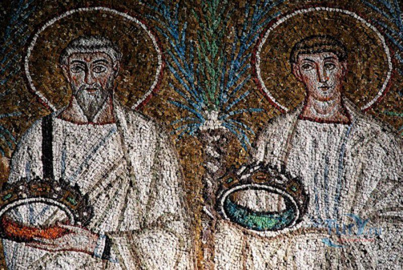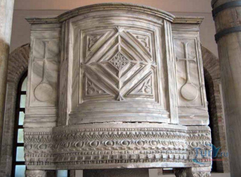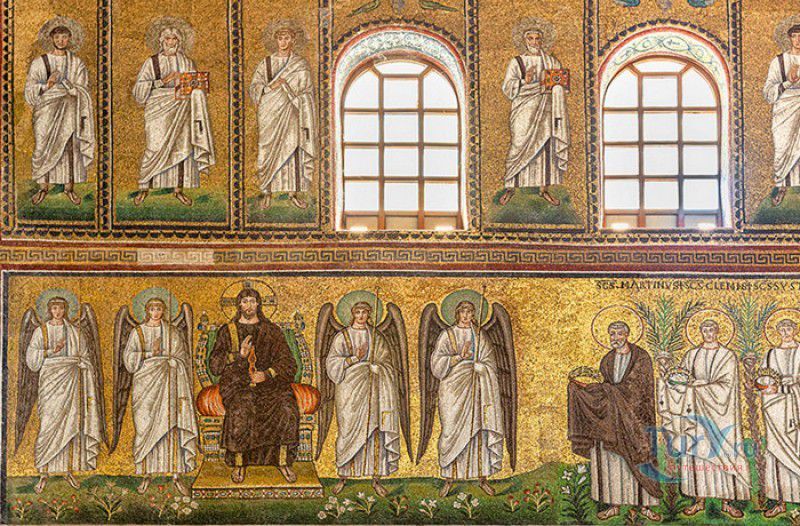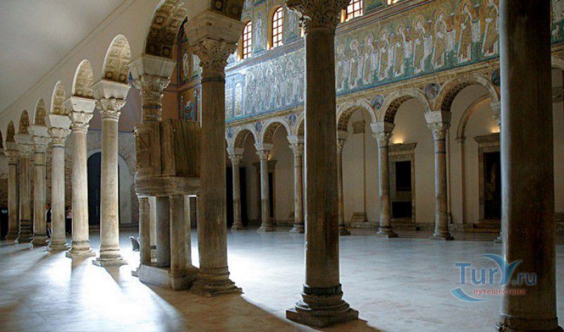 Базилика Сант Аполлинаре Нуово - одна из раннехристианских церквей города Равенна, была построена в 493-526 годах королём остготов Теодорихом Великим. Базилика была возведена рядом с королевским дворцом, от которого до наших дней сохранились лишь развалины, и имела статус придворной церкви Теодориха Великого. Правитель Королевства остготов исповедовал арианство - еретическое течение в христианстве, получившее статус государственной религии в поздней Римской империи в IV-VI веках, поэтому и построенная им церковь, освящённая в честь Христа Спасителя, была арианской и оставалась таковой вплоть до 561 года. После завоевания Равенны византийским императором Юстинианом I все арианские храмы были переданы православным христианам, и в 561 году базилика была освящена в честь святого Мартина Турского - ярого борца с арианской ересью. По требованию Папы Римского Григория I большинство арианских мозаик, украшавших храм, были либо удалены, либо переложены. Своё нынешнее название церковь получила в 856 году, когда в неё из базилики Сант Аполлинаре ин Классе были перенесены мощи Святого Аполлинария - покровителя города Равенна. Храм был освящён в честь Святого Аполлинария, а приставку "нуово" в название базилики добавили, чтобы отличать её от храма с тем же названием, расположенным в районе древнего порта Классе. В 1748 году мощи Святого Аполлинария были возвращены на своё прежнее место, но название базилики Сант Аполлинаре Нуово менять из-за этого не стали. За свою долгую историю базилика несколько раз перестраивалась - в X-XI веках к церкви была пристроена 38-метровая колокольня цилиндрической формы, в XVI веке - мраморный портик и апсида, в XVII веке в базилике появился великолепный кессонный потолок, а в XVIII столетии к северному нефу были пристроены восемь боковых часовен. Внешне базилика Сант Аполлинаре Нуово представляет собой типичное остготское храмовое сооружение, она имеет три нефа, разделённых рядами из мраморных колонн с капителями (по 12 колонн с каждой стороны), привезенных из Константинополя. Центральный неф завершается барочной апсидой, перед которой расположен большой пресвитерий. С арианских времён в церкви сохранились рельефный престол и амвон в главном нефе, сень из порфира, преграда перед престолом с изображениями виноградной лозы, павлина и креста, а также часть мозаик, на которых изображены евангельские сюжеты, дворец Теодориха Великого и порт Классе. Мозаики базилики Сант Аполлинаре Нуово расположены в три яруса - верхний ярус посвящён сюжетам из Нового Завета, а также сценам из Чудес и Страстей Христовых (по 13 мозаик каждого цикла), на мозаиках среднего яруса изображены лики 36 пророков и святых, на мозаиках нижнего яруса - процессии христианских мучеников и мучениц. В 1996 году базилика Сант Аполлинаре Нуово в числе других раннехристианских памятников Равенны была внесена в список Всемирного наследия ЮНЕСКО.
