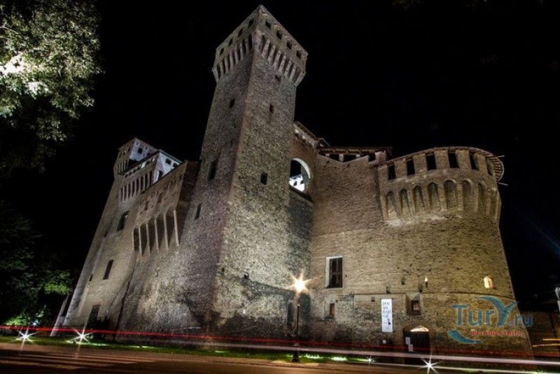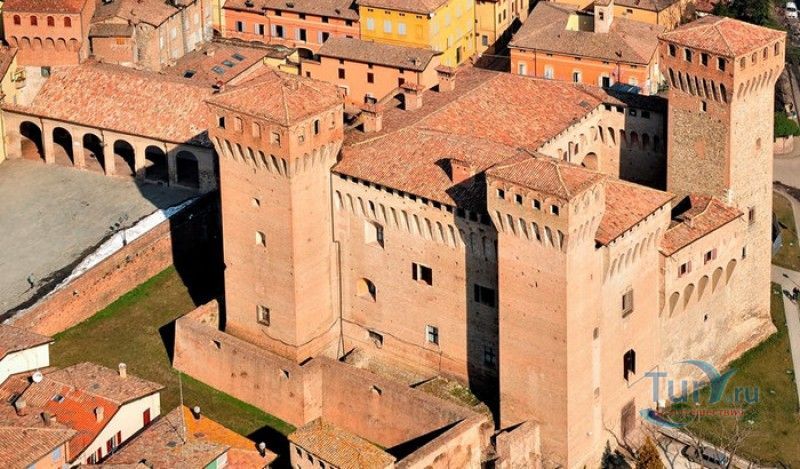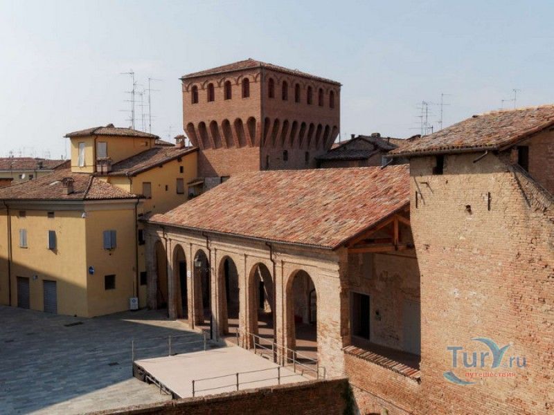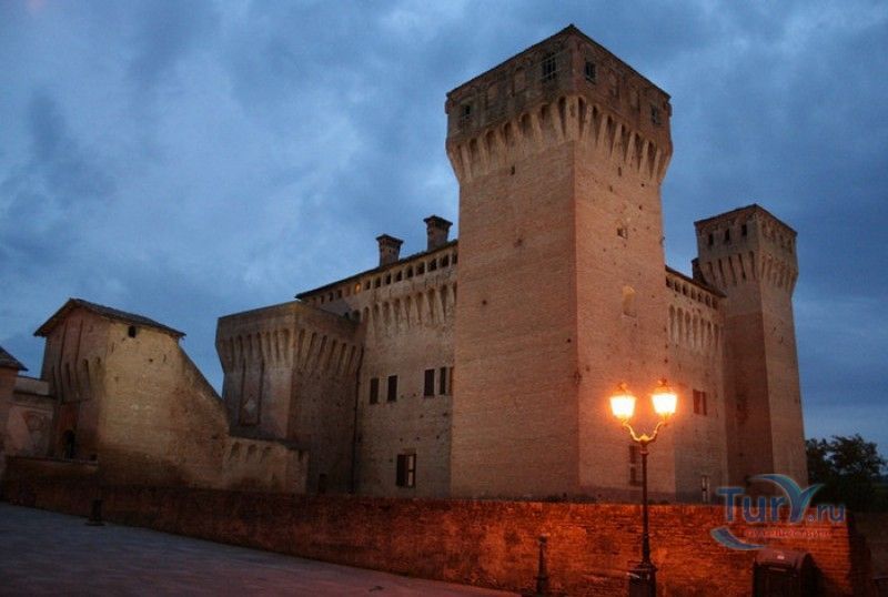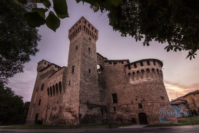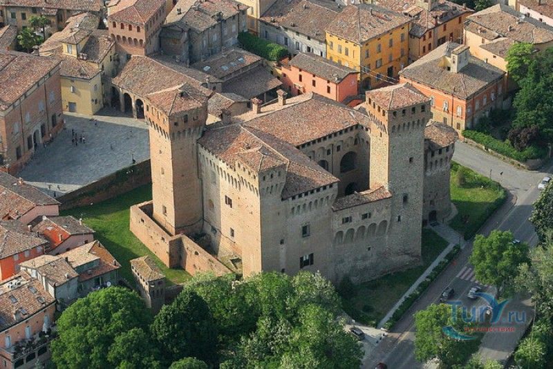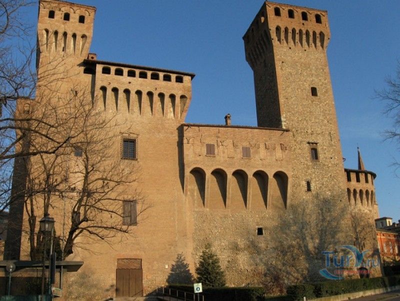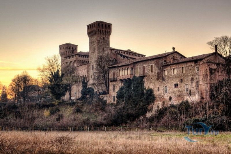 Замок Виньолы (Рокка-ди-Виньола) - средневековый замок в городе Виньола, расположенный на берегу реки Понаро, в 20 километрах к югу от Модены. Точная дата строительства замка неизвестна, в исторических хрониках упоминания о нём датируются концом X века, временем окончания правления династии Каролингов, первое же документальное подтверждение существования крепости в Виньоле появилось в 1178 году. Скорей всего, крепость была построена для защиты города и аббатства Нонантола (Abbazia di Nonantola), расположенного в 10 километрах от Модены, от нападений венгров. Вплоть до XV века фортификационные сооружения Виньолы имели только военно-оборонительное назначение. В XIII столетии крепость часто переходила из рук в руки от гвельфов (Болонья) к гиббелинам (Модена) и наоборот. В 1336 году власть над Виньолой захватил правитель Феррары и Модены герцог Обиццо III д'Эсте, в 1401 году Никколо III д'Эсте передаёт часть своих ленных земель (в том числе и крепость Виньолы) своему верному вассалу - Юджоччино Контрари, при котором Рокка-ди-Виньола была превращена в роскошную резиденцию аристократического семейства. Замок был значительно расширен и перестроен, внутренние помещения богато украшены фресками и лепниной. После смерти последнего наследника семьи Контрари в 1575 году, замок Виньолы снова вернулся во владение рода д'Эсте, а в 1577 году был куплен сыном папы Григория XIII - маркизом Виньола Джакомо Бонкомпаньи. Семья Бонкомпаньи-Людовизи, владеющая замком до 1796 года, никогда постоянно не жила в Рокка-ди-Виньола, управление замком было поручено доверенным лицам. В 1796 году, после завоевания итальянских земель Наполеоном Бонопартом, феодальная собственность была отменена, и замок был конфискован. В конце XIX - начале XX веков в замке размещались муниципалитет, библиотека и отделение банка Виньолы. В 1965 году замок был приобретен Сберегательным банком Виньолы (Cassa di Risparmio di Vignola), а в 1998 году владельцем Рокка-ди-Виньола стал Фонд Виньолы (Fondazione di Vignola), занимающейся защитой, сохранением и популяризацией исторического и художественного наследия Виньолы. Замок Виньолы состоит из пяти этажей, в цокольном этаже расположены залы Контрари и Грассони со сводчатыми потолками, используемые в настоящее время для проведения конференций и концертов. Этажом выше расположены парадные покои - зал Львов и Леопардов, зал Голубей и зал Колец, а также личные апартаменты бывших владельцев замка - Дамский номер, Павильонный зал, зал Гербов, зал Деревьев и часовня Контрари. Стены и потолки помещений богато украшены фресками, гобеленами и декоративной лепниной. Часовню украшает цикл фресок в стиле поздней готики с изображением сцен из жизни Иисуса Христа, написанных в начале XV века по заказу Юджоччино Контрари неизвестным художником, оставившим свой след в истории под именем "Мастер из Виньолы". На второй этаж ведёт крутая лестница, здесь расположены помещения, в которых жили солдаты гарнизона крепости и прислуга. После того, как Рокка-ди-Виньола утратила своё военное назначение, большинство этих помещений использовались в качестве тюрьмы. На верхнем этаже были оборудованы дорожки и крытые проходы с рядами небольших арочных окон, соединяющие все три башни Рокка-ди-Виньола - башню Нонантола, Женскую башню и башню Понелло. Эти проходы использовались гарнизоном для патрулирования и защиты замка