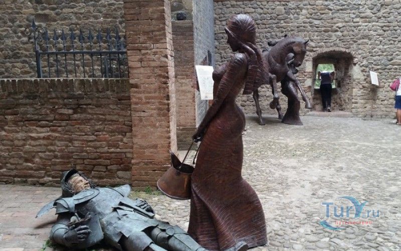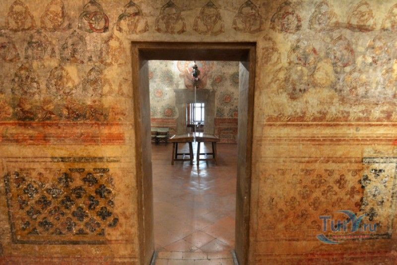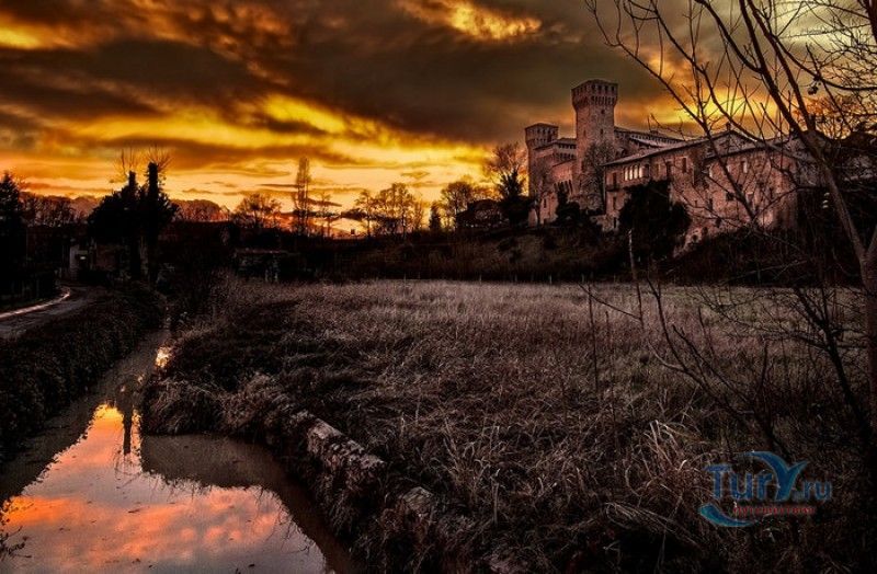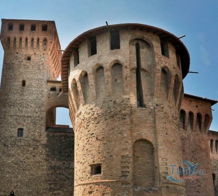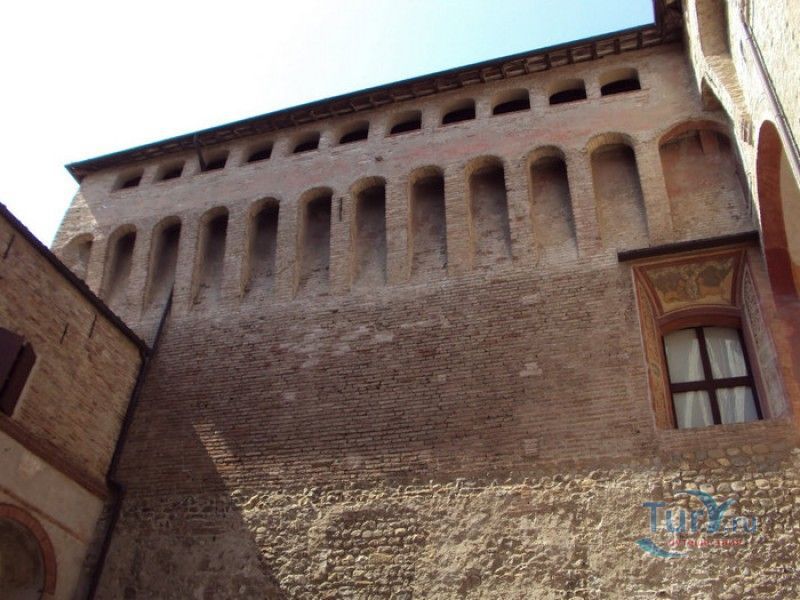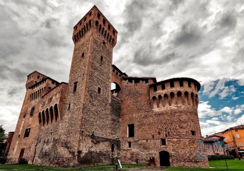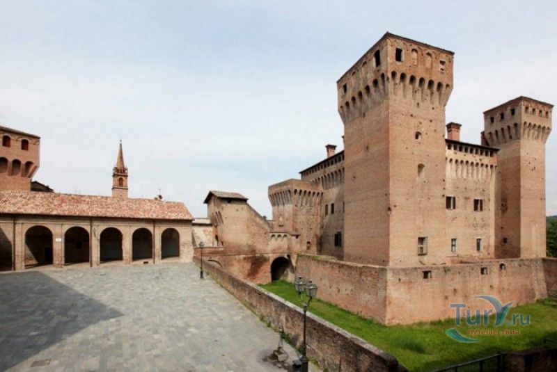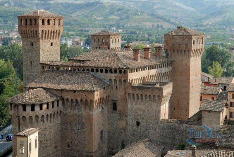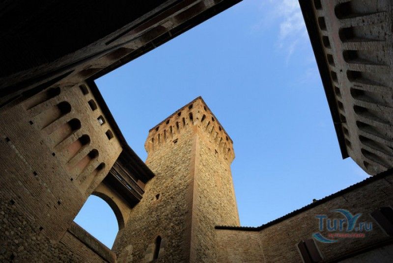Замок Виньолы (Рокка-ди-Виньола) - средневековый замок в городе Виньола, расположенный на берегу реки Понаро, в 20 километрах к югу от Модены. Точная дата строительства замка неизвестна, в исторических хрониках упоминания о нём датируются концом X века, временем окончания правления династии Каролингов, первое же документальное подтверждение существования крепости в Виньоле появилось в 1178 году. Скорей всего, крепость была построена для защиты города и аббатства Нонантола (Abbazia di Nonantola), расположенного в 10 километрах от Модены, от нападений венгров. Вплоть до XV века фортификационные сооружения Виньолы имели только военно-оборонительное назначение. В XIII столетии крепость часто переходила из рук в руки от гвельфов (Болонья) к гиббелинам (Модена) и наоборот. В 1336 году власть над Виньолой захватил правитель Феррары и Модены герцог Обиццо III д'Эсте, в 1401 году Никколо III д'Эсте передаёт часть своих ленных земель (в том числе и крепость Виньолы) своему верному вассалу - Юджоччино Контрари, при котором Рокка-ди-Виньола была превращена в роскошную резиденцию аристократического семейства. Замок был значительно расширен и перестроен, внутренние помещения богато украшены фресками и лепниной. После смерти последнего наследника семьи Контрари в 1575 году, замок Виньолы снова вернулся во владение рода д'Эсте, а в 1577 году был куплен сыном папы Григория XIII - маркизом Виньола Джакомо Бонкомпаньи. Семья Бонкомпаньи-Людовизи, владеющая замком до 1796 года, никогда постоянно не жила в Рокка-ди-Виньола, управление замком было поручено доверенным лицам. В 1796 году, после завоевания итальянских земель Наполеоном Бонопартом, феодальная собственность была отменена, и замок был конфискован. В конце XIX - начале XX веков в замке размещались муниципалитет, библиотека и отделение банка Виньолы. В 1965 году замок был приобретен Сберегательным банком Виньолы (Cassa di Risparmio di Vignola), а в 1998 году владельцем Рокка-ди-Виньола стал Фонд Виньолы (Fondazione di Vignola), занимающейся защитой, сохранением и популяризацией исторического и художественного наследия Виньолы. Замок Виньолы состоит из пяти этажей, в цокольном этаже расположены залы Контрари и Грассони со сводчатыми потолками, используемые в настоящее время для проведения конференций и концертов. Этажом выше расположены парадные покои - зал Львов и Леопардов, зал Голубей и зал Колец, а также личные апартаменты бывших владельцев замка - Дамский номер, Павильонный зал, зал Гербов, зал Деревьев и часовня Контрари. Стены и потолки помещений богато украшены фресками, гобеленами и декоративной лепниной. Часовню украшает цикл фресок в стиле поздней готики с изображением сцен из жизни Иисуса Христа, написанных в начале XV века по заказу Юджоччино Контрари неизвестным художником, оставившим свой след в истории под именем "Мастер из Виньолы". На второй этаж ведёт крутая лестница, здесь расположены помещения, в которых жили солдаты гарнизона крепости и прислуга. После того, как Рокка-ди-Виньола утратила своё военное назначение, большинство этих помещений использовались в качестве тюрьмы. На верхнем этаже были оборудованы дорожки и крытые проходы с рядами небольших арочных окон, соединяющие все три башни Рокка-ди-Виньола - башню Нонантола, Женскую башню и башню Понелло. Эти проходы использовались гарнизоном для патрулирования и защиты замка