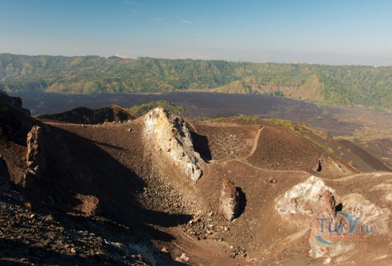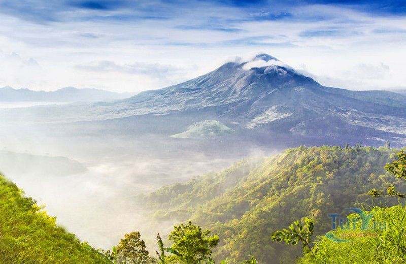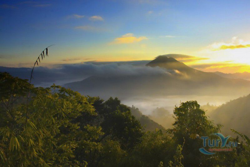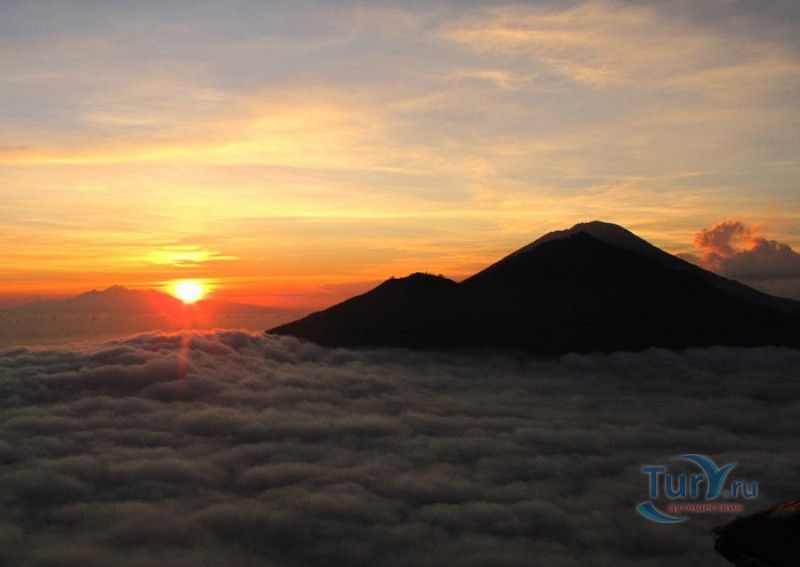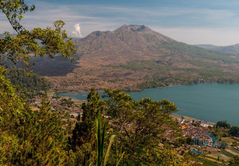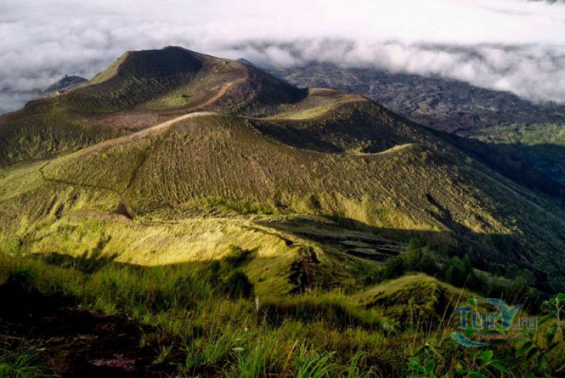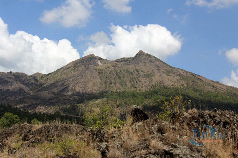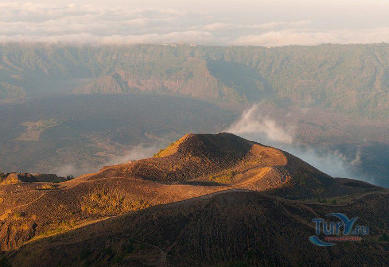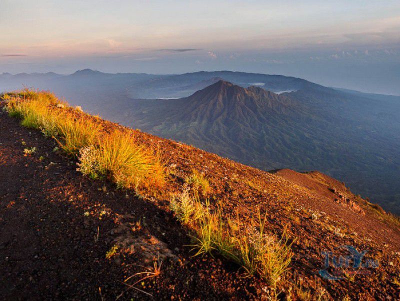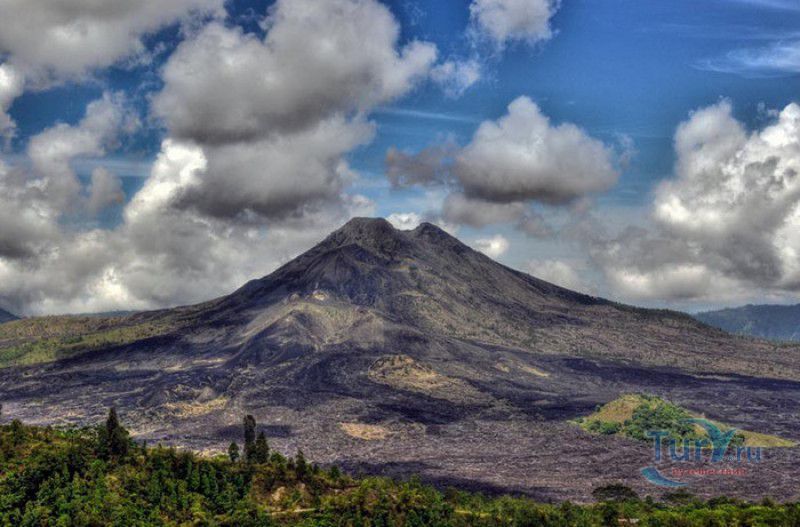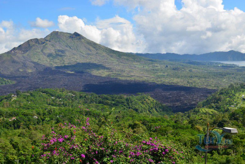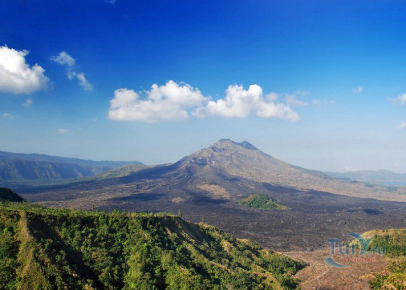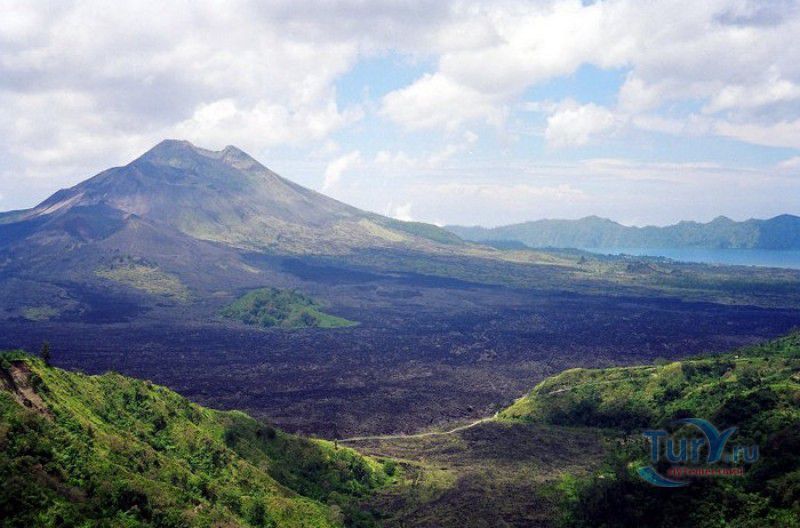 Вулкан Батур - священная гора и активный стратовулкан, расположен в северо-восточной части острова Бали, в районе Кинтамани, на территории геопарка Батур, получившего в 2012 году статус Глобального геопарка ЮНЕСКО. Гора Батур расположена в центре двух концентрических кальдер, образованных 29300-20150 лет назад в результате активной вулканической деятельности на острове Бали. Вершина вулкана находится на высоте 1717 метров над уровнем моря, внешняя кальдера имеет размеры 13,8 на 10 километров, внутренняя - 6,4 на 9,4 километра, в юго-восточной части кальдеры расположено вулканическое озеро Батур - самое большое и красивое озеро на Бали. Первое зарегистрированное извержение вулкана Батур произошло в 1804 году, последнее - в 1999-2000 годах, во время которого столб пепла, выбрасываемого из кратера вулкана, достигал в высоту трёхсот метров. Всего за это время было зафиксировано 22 извержения, одно из самых сильных произошло в 1968 году - потоки лавы достигали озера Батур, и сейчас этот склон горы полностью покрыт застывшими лавовыми полями. Вулкан Батур активен и в настоящее время, периодически здесь происходят подземные толчки и наблюдается фумарольная активность. В 2009 году восхождение на гору Батур было запрещено из-за опасности извержения вулкана - в период с 1 по 11 ноября было зафиксировано 136 подземных толчков. Тем не менее, вулкан Батур является одной из главных туристических достопримечательностей острова Бали - восхождение на его вершину совершают тысячи иностранных туристов. Подъём занимает около двух часов, обычно он начинается в 4 часа утра, чтобы достигнув вершины, можно было успеть увидеть один из самых красивых восходов на Бали. Кроме того, на рассвете видимость не заслоняют облака, большую часть суток окутывающие вершину горы Батур. На вершине горы оборудованы несколько смотровых площадок, на одной из них есть небольшая палатка, в которой продрогшие от ночной прохлады туристы могут выпить горячего чая и съесть по бутерброду. Но большинство туристов отдают предпочтение экзотическому "вулканическому" завтраку - спустившись в кратер можно сварить яйца и запечь бананы на горячем пару, вырывающемся на поверхность вулкана из многочисленных фумарол. Обратный путь - не менее захватывающая часть треккинга, тропа походит по самой кромке кратера, на некоторых участках она настолько узкая, что, идя по ней, следует соблюдать большую осторожность. Зато отсюда открываются великолепные виды на кальдеру, гору Абанг (Красную гору), вулкан Агунг, расположенный на юго-восточной окраине внешней кальдеры, и озеро Батур. Восхождение на вулкан, как правило, начинается либо от храма Пура Джати (Pura Jati), расположенного на берегу озера Батур, - в этом случае путь пролегает через безжизненные лавовые поля, либо от деревни Тоя Бунгках (Toya Bungkah) - здесь большая часть пути на вершину вулкана проходит через лес. В Тоя Бунгках находятся знаменитые горячие источники Batur Natural Hot Spring. Приняв ванну в одном из открытых бассейнов из вулканического камня с термальной минеральной водой, температура которой достигает 50 градусов по Цельсию, можно быстро восстановить силы после восхождения на гору Батур.