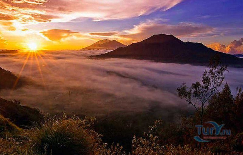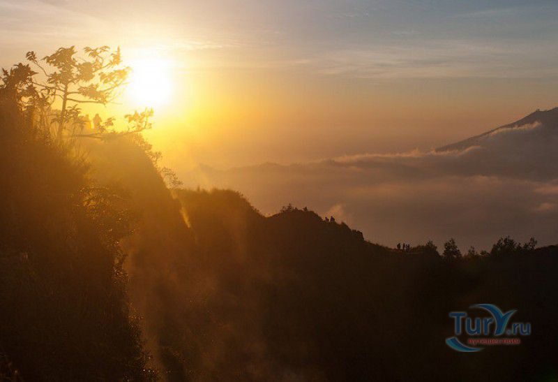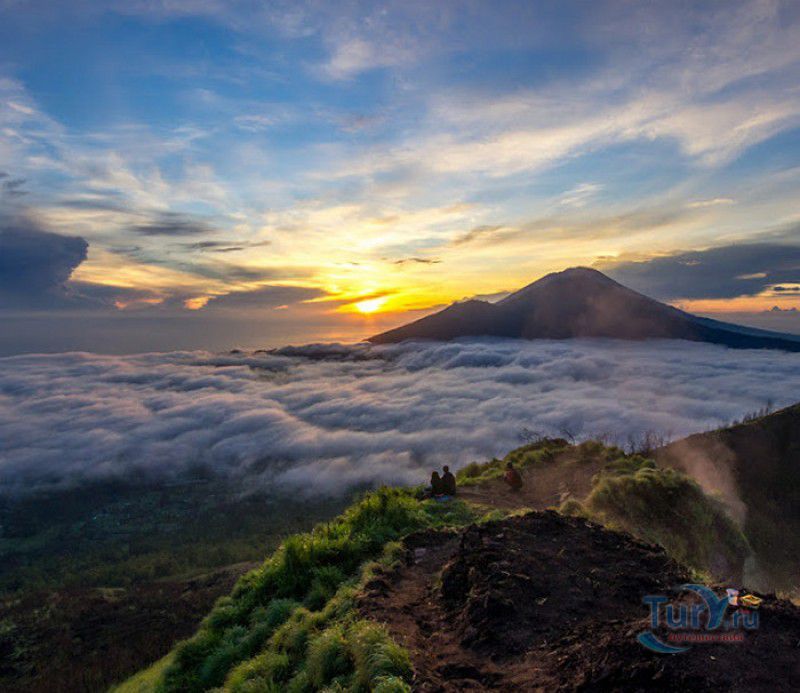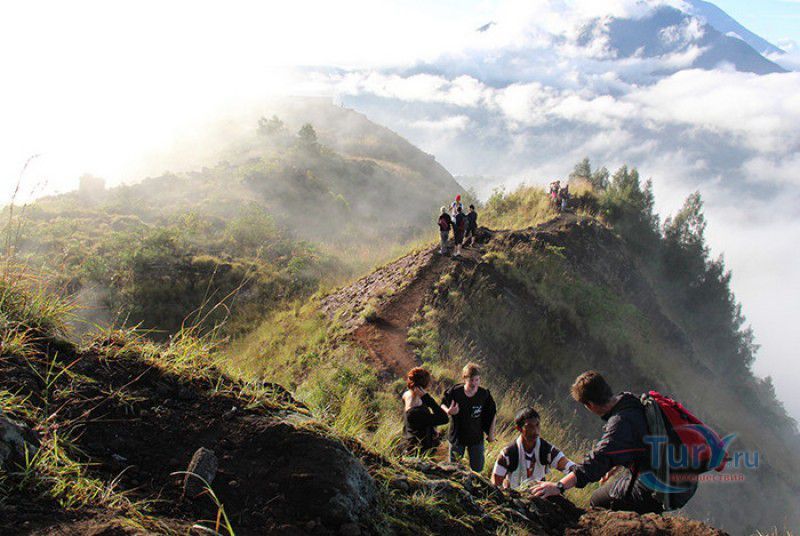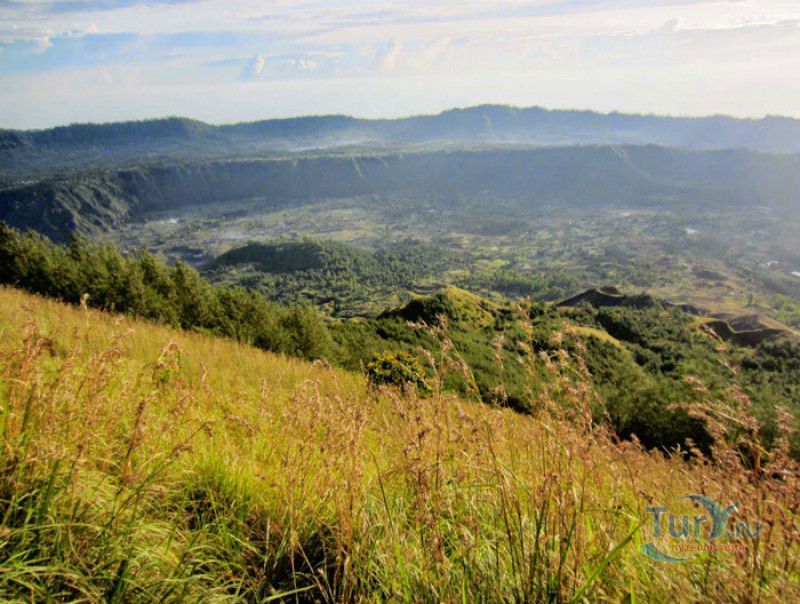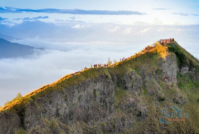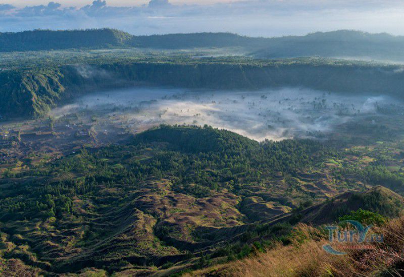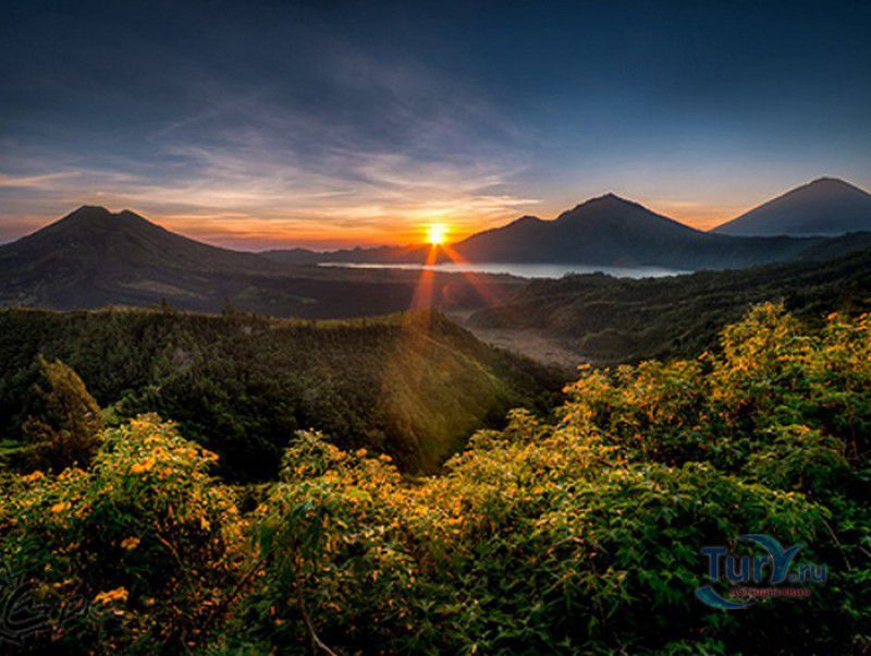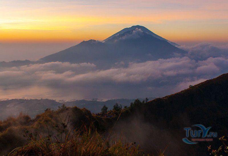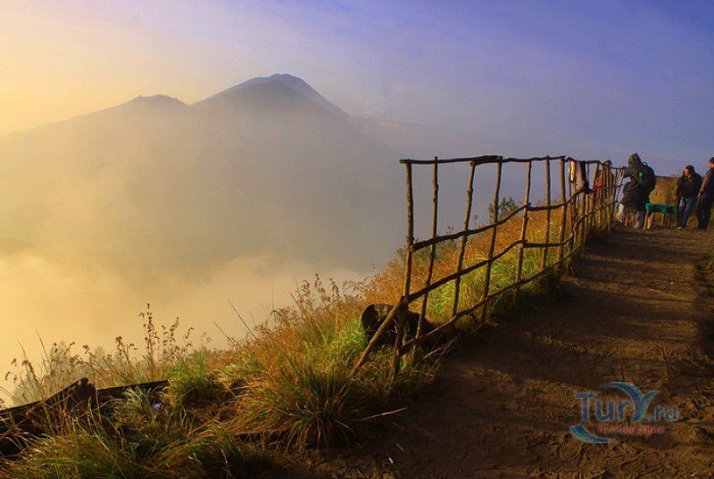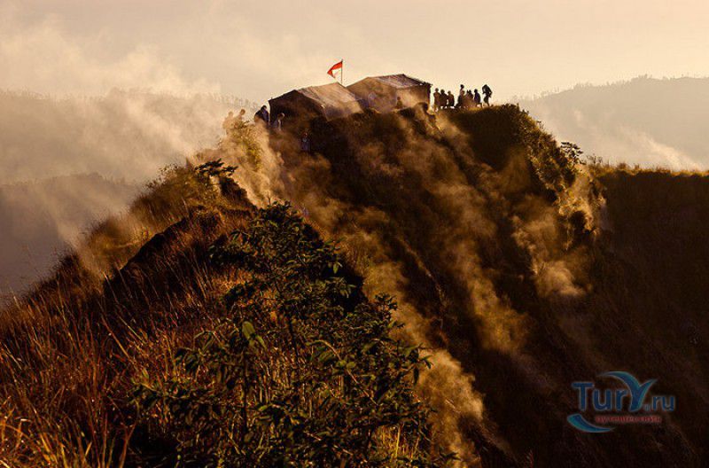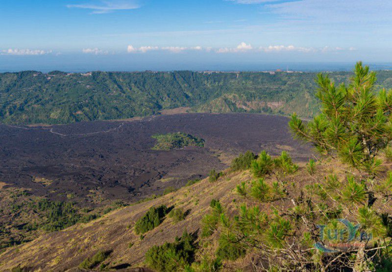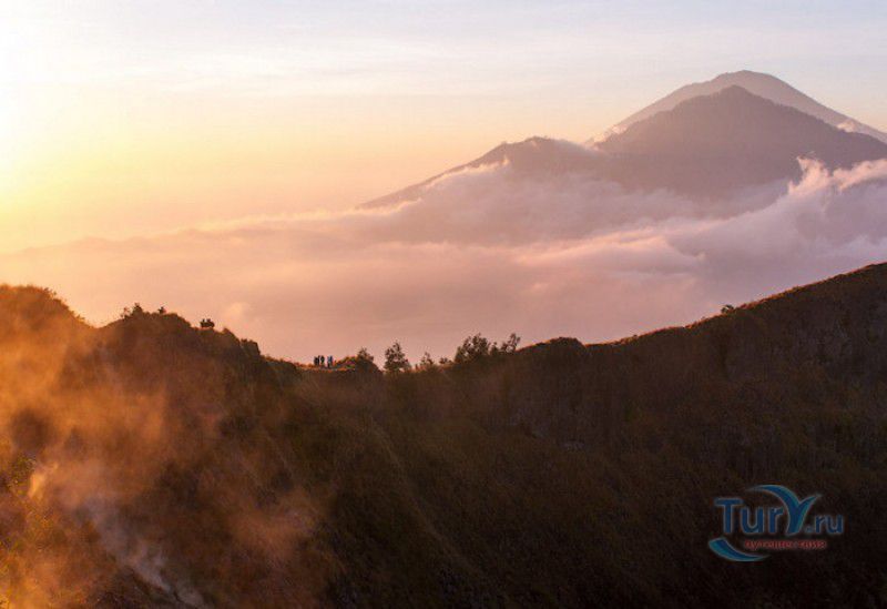 Вулкан Батур - священная гора и активный стратовулкан, расположен в северо-восточной части острова Бали, в районе Кинтамани, на территории геопарка Батур, получившего в 2012 году статус Глобального геопарка ЮНЕСКО. Гора Батур расположена в центре двух концентрических кальдер, образованных 29300-20150 лет назад в результате активной вулканической деятельности на острове Бали. Вершина вулкана находится на высоте 1717 метров над уровнем моря, внешняя кальдера имеет размеры 13,8 на 10 километров, внутренняя - 6,4 на 9,4 километра, в юго-восточной части кальдеры расположено вулканическое озеро Батур - самое большое и красивое озеро на Бали. Первое зарегистрированное извержение вулкана Батур произошло в 1804 году, последнее - в 1999-2000 годах, во время которого столб пепла, выбрасываемого из кратера вулкана, достигал в высоту трёхсот метров. Всего за это время было зафиксировано 22 извержения, одно из самых сильных произошло в 1968 году - потоки лавы достигали озера Батур, и сейчас этот склон горы полностью покрыт застывшими лавовыми полями. Вулкан Батур активен и в настоящее время, периодически здесь происходят подземные толчки и наблюдается фумарольная активность. В 2009 году восхождение на гору Батур было запрещено из-за опасности извержения вулкана - в период с 1 по 11 ноября было зафиксировано 136 подземных толчков. Тем не менее, вулкан Батур является одной из главных туристических достопримечательностей острова Бали - восхождение на его вершину совершают тысячи иностранных туристов. Подъём занимает около двух часов, обычно он начинается в 4 часа утра, чтобы достигнув вершины, можно было успеть увидеть один из самых красивых восходов на Бали. Кроме того, на рассвете видимость не заслоняют облака, большую часть суток окутывающие вершину горы Батур. На вершине горы оборудованы несколько смотровых площадок, на одной из них есть небольшая палатка, в которой продрогшие от ночной прохлады туристы могут выпить горячего чая и съесть по бутерброду. Но большинство туристов отдают предпочтение экзотическому "вулканическому" завтраку - спустившись в кратер можно сварить яйца и запечь бананы на горячем пару, вырывающемся на поверхность вулкана из многочисленных фумарол. Обратный путь - не менее захватывающая часть треккинга, тропа походит по самой кромке кратера, на некоторых участках она настолько узкая, что, идя по ней, следует соблюдать большую осторожность. Зато отсюда открываются великолепные виды на кальдеру, гору Абанг (Красную гору), вулкан Агунг, расположенный на юго-восточной окраине внешней кальдеры, и озеро Батур. Восхождение на вулкан, как правило, начинается либо от храма Пура Джати (Pura Jati), расположенного на берегу озера Батур, - в этом случае путь пролегает через безжизненные лавовые поля, либо от деревни Тоя Бунгках (Toya Bungkah) - здесь большая часть пути на вершину вулкана проходит через лес. В Тоя Бунгках находятся знаменитые горячие источники Batur Natural Hot Spring. Приняв ванну в одном из открытых бассейнов из вулканического камня с термальной минеральной водой, температура которой достигает 50 градусов по Цельсию, можно быстро восстановить силы после восхождения на гору Батур.