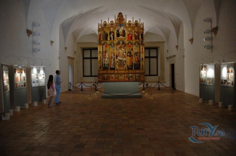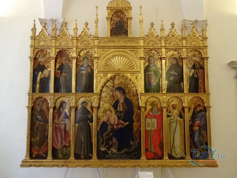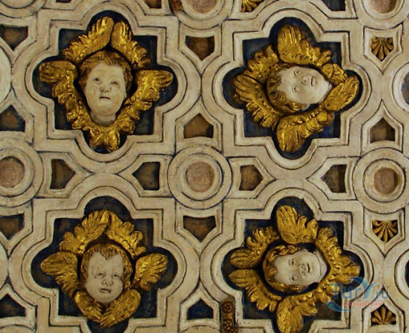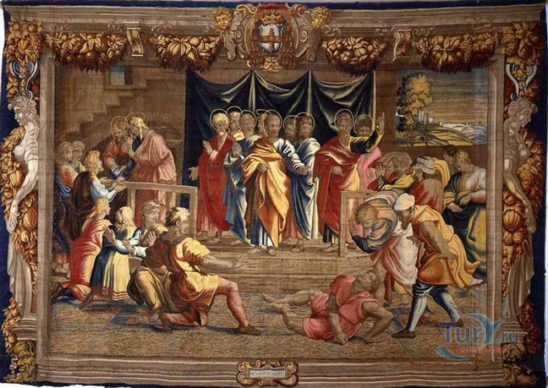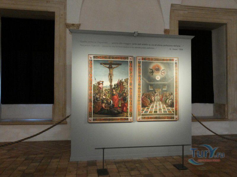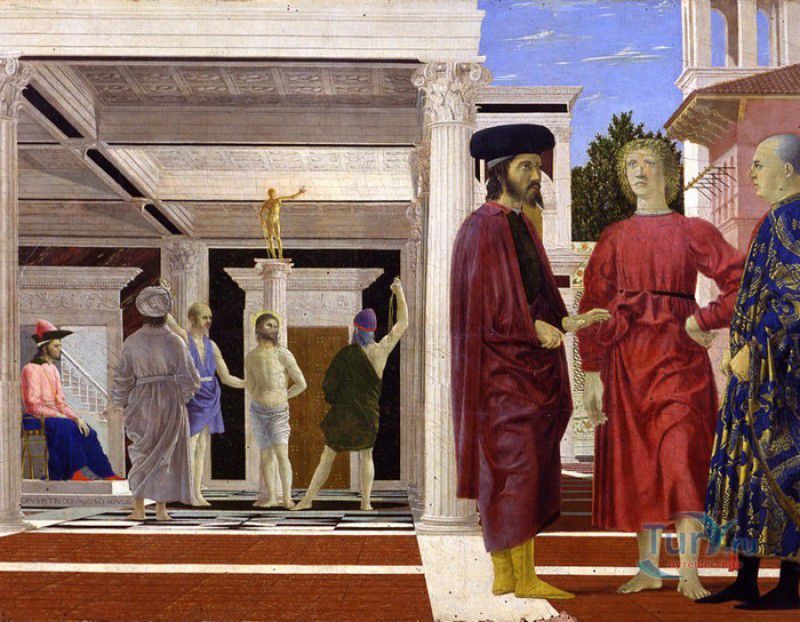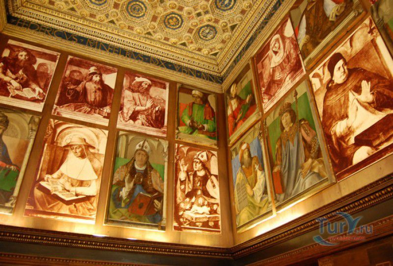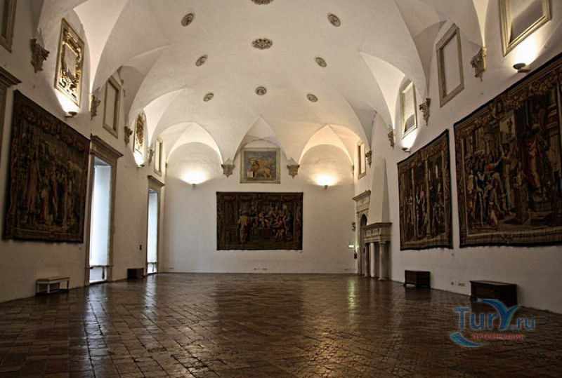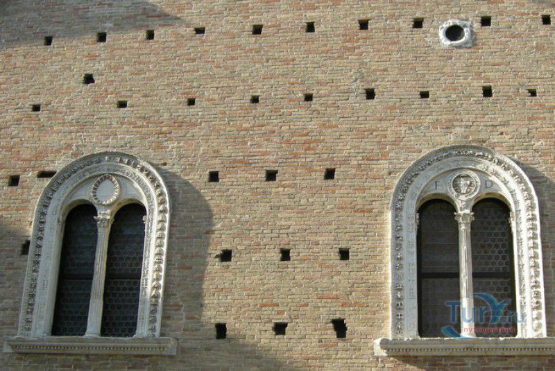Дворец Герцогов Урбино (Палаццо Дукале) - бывшая резиденция дожей Урбино, расположен в историческом центре города Урбино, в составе которого в 1998 году внесен в список Всемирного наследия ЮНЕСКО. Строительство дворца было начато в 1459 году по приказу герцога Федерика да Монтефельтро, ставшего правителем Урбино в 1444 году. Свою лепту в строительство величественного дворца в стиле ренессанс внесли три известных итальянских архитектора - флорентиец Мазо ди Бартоломео, Лучано де Лаурана из Далмации и Франческо ди Джорджо Мартини из Сиены. Над оформлением внутреннего убранства работали лучшие художники и скульпторы того времени - Пьеро делла Франческа, Амброджио Бароччи, Педро Берругете, Джованни Боккати, Юстус ван Гент. Палаццо Дукале должен был стать одновременно и укреплённой герцогской резиденцией, и роскошным дворцом, соответствующим статусу его владельца - гуманиста и мецената, покровителя искусства и науки. Дворец, по задумке Федерика да Монтефельтро, должен был стать воплощением "идеального города", концепция которого (гармония, красота и функциональность) была изложена ещё Платоном. После смерти герцога в 1482 году строительные работы приостановились и были завершены только в XVI веке. Герцогский Дворец в Урбино приобрёл славу идеальной резиденции для просвещённого монарха, его величественный фасад с двумя элегантными башнями-близнецами, виден из любой точки города. Архитектурными "изюминками" палаццо являются внутренний двор с крытыми арочными галереями, лёгкие пропорции открытых лоджий на фасаде и изящный скульптурный декор оконных наличников и входных порталов. Во внутренние помещения дворца ведёт парадная мраморная лестница. На первом этаже, выходящем во внутренний двор, находилась знаменитая герцогская библиотека, которая располагала огромным собранием старинных манускриптов. Во дворце также есть несколько помещений, оформление которых отражает увлечение герцога Фредерико античными искусством и литературой, наукой, поэзией и музыкой - лариум (святилище античного типа) и студиоло (небольшой кабинет), на стенах которого с помощью художественной техники интарсия (инкрустации, выполняемой деревом по дереву) изображены полки с книгами, астрономическими и музыкальными инструментами, а также символами свободных искусств. Верхнюю часть стен кабинета украшают двадцать восемь портретов выдающихся личностей (философов, учёных, поэтов, религиозных деятелей), в числе которых - Платон, Аристотель, Моисей, Петрарка, Гиппократ, Цицерон, Данте, Соломон, Сенека, Святой Августин, папа Пий II и другие. Из студиоло можно было попасть в парные часовни - христианскую "Часовню отпущения грехов" и языческую, получившую название "Храм муз". На втором этаже располагались парадные апартаменты - Зал почёта (Тронный зал), Зал Рыцарей и героев, Зал для аудиенций, Зал короля Англии и альков герцога Федерико да Монтефельтро. Комнаты были богато украшены позолоченной штукатуркой, скульптурным декором, наборными люнетами, фресками, изящными рельефами из мрамора, терракоты или майолики и мраморными каминами. В подвалах дворца располагались хозяйственные помещения - кухня, кладовые, прачечная, "ледяная" комната, в которой хранились съестные припасы, здесь же можно увидеть остатки старого водопровода, снабжавшего водой Палаццо Дукале. В 1625 год