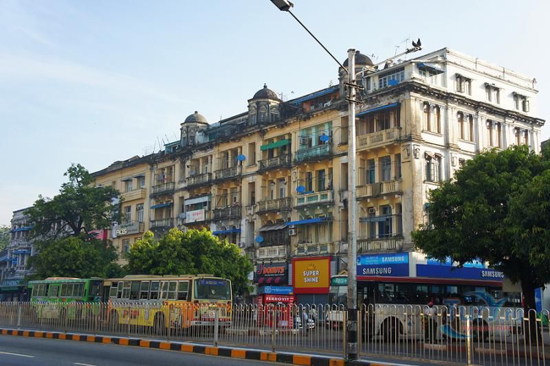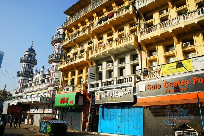В окружении знаменитой пагоды Суле расположен ансамбль колониальных построек начала 20-го века. Большинство зданий относится к стилю барокко, они все еще дышат былой роскошью, хотя находятся в плачевном состоянии - фасады разрушены и обшарпаны, некоторые постройки в аварийном состоянии. Большинство зданий были созданы архитекторами, которые никогда не бывали в Янгоне. Их необычная архитектура придает этому району города неповторимый шик и очарование.