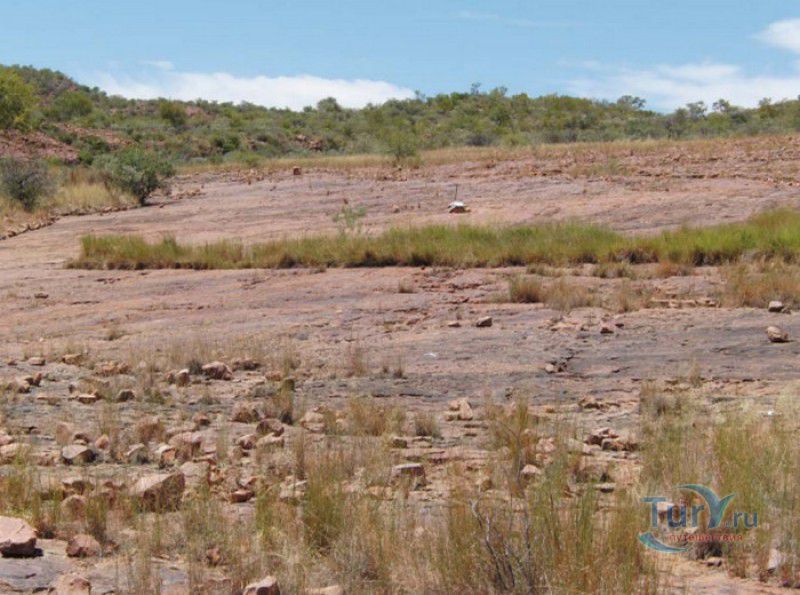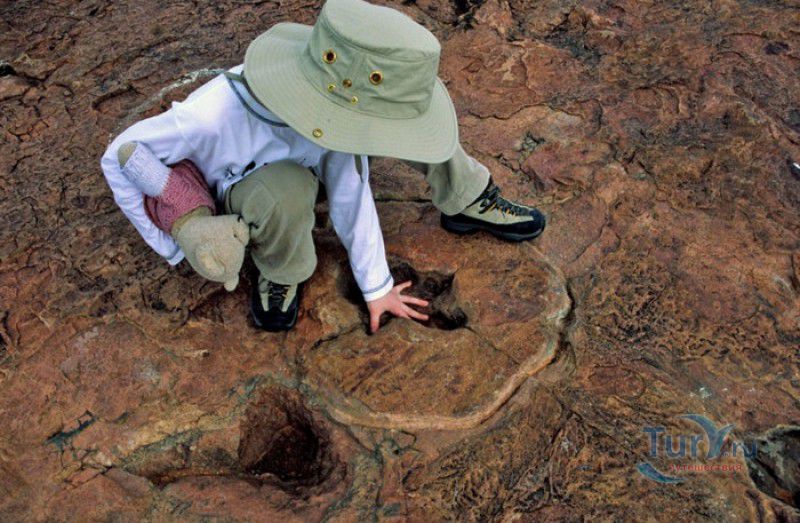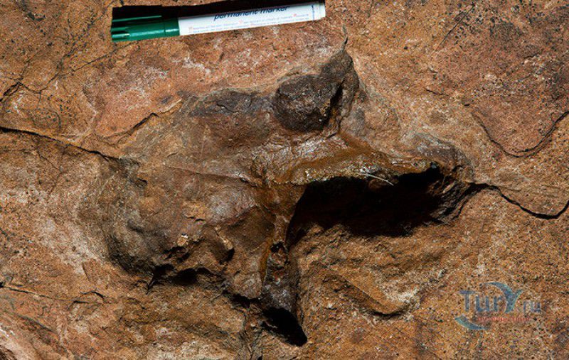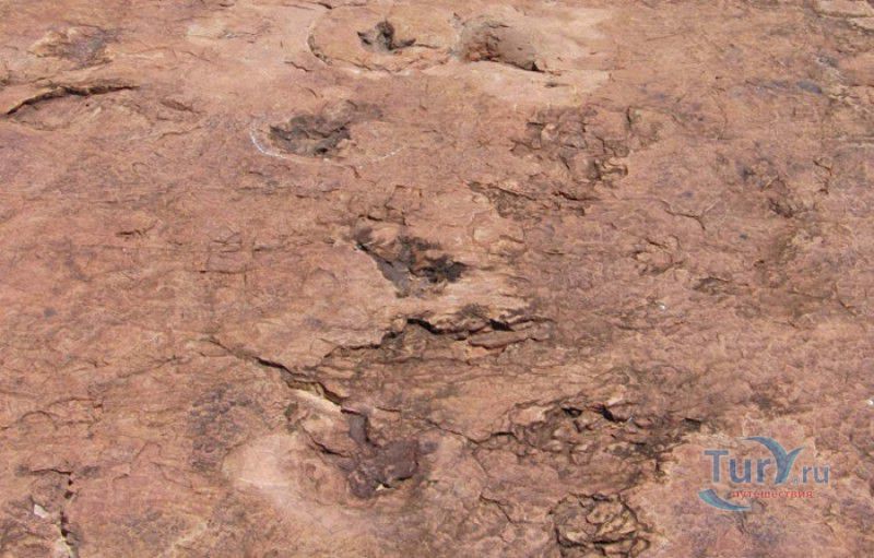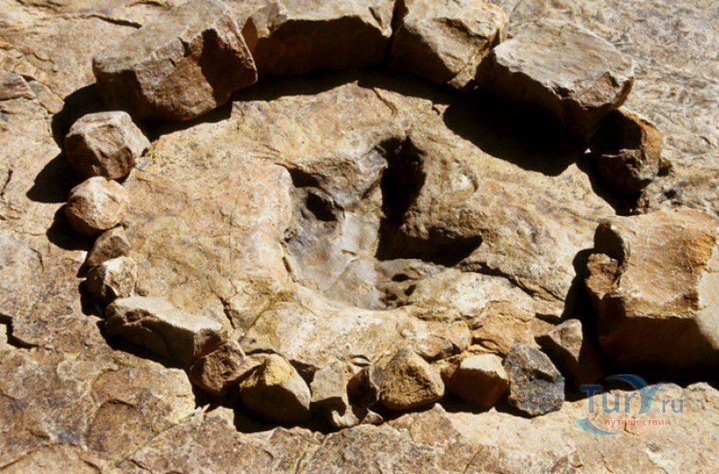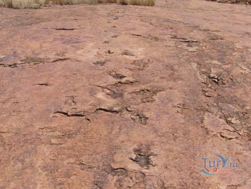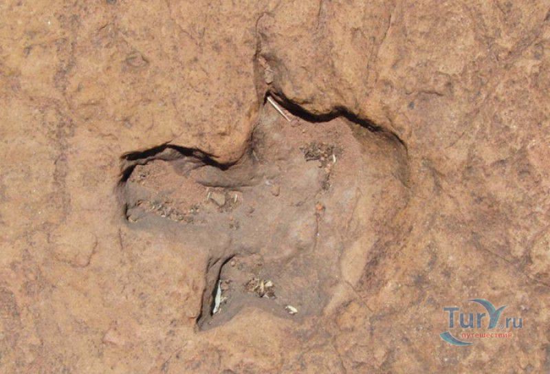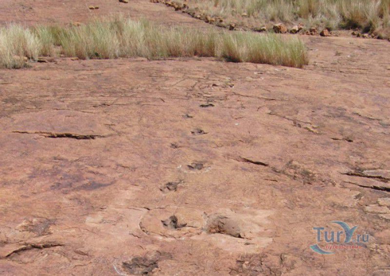 Следы Динозавров, обнаруженные на северо-западе Намибии, у подножия горы Этжо, в 30 километрах от посёлка Калькфельд, представляют собой цепочки окаменелых следов, оставленных двуногими трёхпалыми динозаврами (скорей всего, Тероподами) около 190 миллионов лет назад. В доисторические времена почва в этой области представляла собой песчаники, на которых хорошо отпечатывались следы животных. Со временем следы оказались под толстым слоем песка, верхние слои песка давили на нижние, превращая их в камень, а следы динозавров - в окаменелости. Ихнофоссилии (окаменелые отпечатки), обнаруженные в районе Калькфельда, представляют собой две дорожки из 30 следов динозавров, передвигающихся на задних конечностях, размером 45х35 сантиметров, расстояние между которыми (длина шага) составляет 70-90 сантиметров. Протяжённость самой дорожки - 28 метров. Рядом есть несколько следов меньших размеров, длиной около 7 сантиметров, расположенных на расстоянии 28-33 сантиметра друг от друга. Окаменелости были обнаружены в 1925 году немецким палеонтологом Фридрихом фон Хюне. В 1951 году Следы динозавров в Очихенамапареро (название фермы, на земле которой обнаружены следы) признаны объектом Национального Наследия Намибии и охраняются государством. Туристы, посещающие ферму Очихенамапареро, чтобы увидеть Следы динозавров, могут остановиться в гостевом доме или кемпинге Dinosaur's Tracks.
