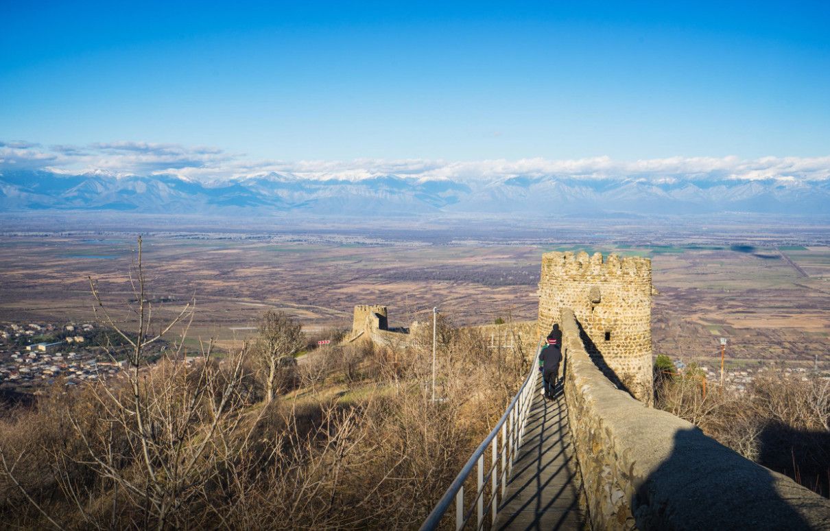 Как оборонительное сооружение, Сигнахи очень своеобразен. Это территория в форме многоугольника площадью около 40 га, окруженная крепостными стенами. С северной стороны ограждения спускаются в глубокое ущелье. Остальные стены выстроены на возвышенности на разных высотах. Стены крепости имеют два яруса: нижний и верхний, перед которым проложена боевая тропа. Контрфорсы, бойницы и выступы имеются только в верхнем ярусе, нижний – это сплошная стена. По углам ограждение защищают башни в несколько этажей, квадратные или прямоугольные по форме. Между ними вдоль стен построены цилиндрические башни, увенчанные полукруглыми зубцами. В восточной части к одной из них примыкают ворота – главный вход в крепость. Кроме них, есть ещё несколько входов. Размещение Сигнахи на горе и окружение его крепостными стенами свидетельствует о том, что город был построен для защиты от захватчиков. В те времена на территорию Кахетии особенно активно совершали набеги лезгины. Это коренной народ Кавказа, предки современных дагестанцев и азербайджанцев. Легенды гласят, что Сигнахская крепость успешно выдерживала осады многочисленных завоевателей. Кстати, название города в переводе с тюркского означает «бункер» или «неприступный».