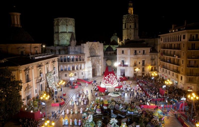 Площадь Святой Девы Марии - одна из главных достопримечательностей Валенсии, расположена в историческом центре города, на месте, где ещё во времена Римской империи, на пересечении двух главных городских дорог, был построен форум. На площади расположены главные исторические здания Валенсии - Кафедральный собор (на площадь Святой Девы выходит западный фасад собора с великолепным готическим порталом Апостольские врата), Базилика Святой Девы Защитницы Обездоленных и Дворец Генералитета (Дом правительства Валенсии). Первым на площади был возведен Валенсийский Кафедральный собор, строительство которого было начато в 1262 году, а завершено лишь в XV веке. В то время площадь носила название Соборная площадь. В 1562-1667 годах на восточной стороне площади было возведено здание Базилики Пресвятой Девы Марии Защитницы Обездоленных в стиле позднего Ренессанса. Базилика была построена специально для хранения чудотворного образа Пресвятой Девы Марии Защитницы Обездоленных - покровительницы города Валенсия. После возведения храма площадь была переименована в площадь Святой Девы Марии. Дворец Генералитета (Palacio de la Generalidad Valenciana), расположенный на северной стороне площади, был построен в 1421 году в стиле поздней готики, а в XVI веке к нему была пристроена башня в стиле Ренессанс. Первоначально во дворце заседала Делегация Генерального королевства Валенсии (специальная комиссия, контролирующая уплату налогов жителями города), затем здание стало штаб-квартирой правительства провинции Валенсия. В 1976 году на площади Святой Девы Марии был установлен фонтан Турия, выполненный по проекту архитектора Мануэля Сильвестра Монтесиноса. Скульптурная композиция фонтана символизирует собой реку Турия, некогда протекавшую через центр города Валенсия, и восемь оросительных каналов реки. Сама река аллегорически изображена в виде мужской фигуры, а каналы - в виде юных дев. В настоящее время площадь Святой Девы Марии является одним из излюбленных мест отдыха жителей и гостей Валенсии, здесь проходят фестивали, праздники, концерты и другие культурные мероприятия, есть много кафе и ресторанов. Кроме того, по многовековой традиции, каждый четверг перед Апостольскими вратами собора проходят заседания Водного суда, занимающегося урегулированием споров между водопользователями оросительных каналов Турии. Ежегодно с 15 по 19 марта, во время фестиваля Фальяс, приуроченного ко дню памяти Святого Иосифа, на площади устанавливается гигантская статуя Пресвятой Девы Марии с Младенцем, мантия которой полностью выполнена из цветов. Традиционно 17 и 18 марта жители города преподносят свой покровительнице цветы, буквально засыпая площадь перед статуей красочными букетами.