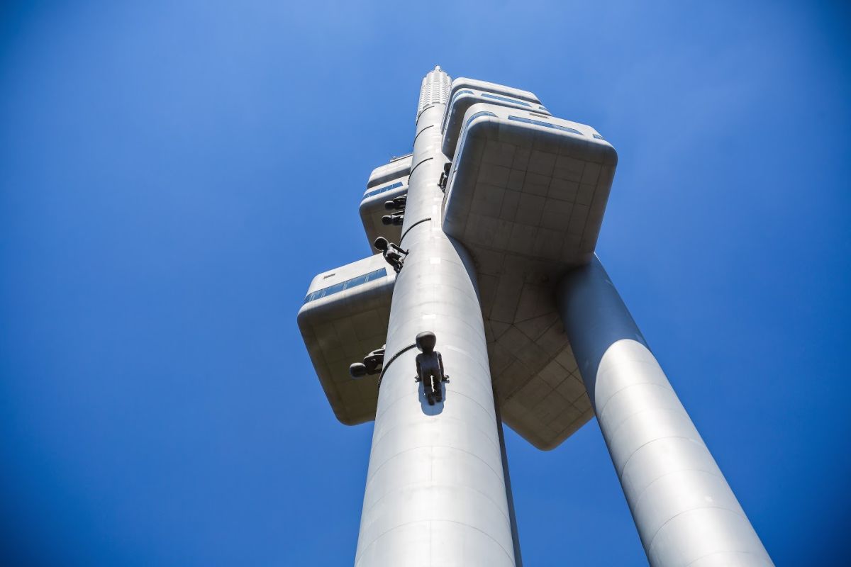 Безусловно, главной доминантой района Жижков является это 216-метровое, самое высокое строение столицы. Круговая панорама на высоте 93 м укажет вам Прагу, словно на ладони. Один этаж башни полностью отдан релаксации и первоклассной гастрономии. Авторы грандиозного проекта 80-х годов 20-го столетия – В. Аулицки и Й. Козак. На башне «разместились» и 10 скульптур ползущих малышей (Babies) знаменитого чешского скульптора Давида Черного.