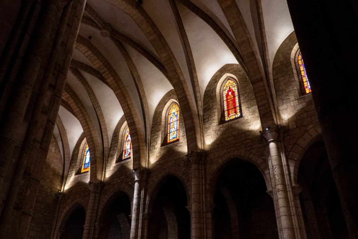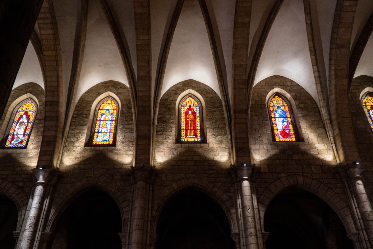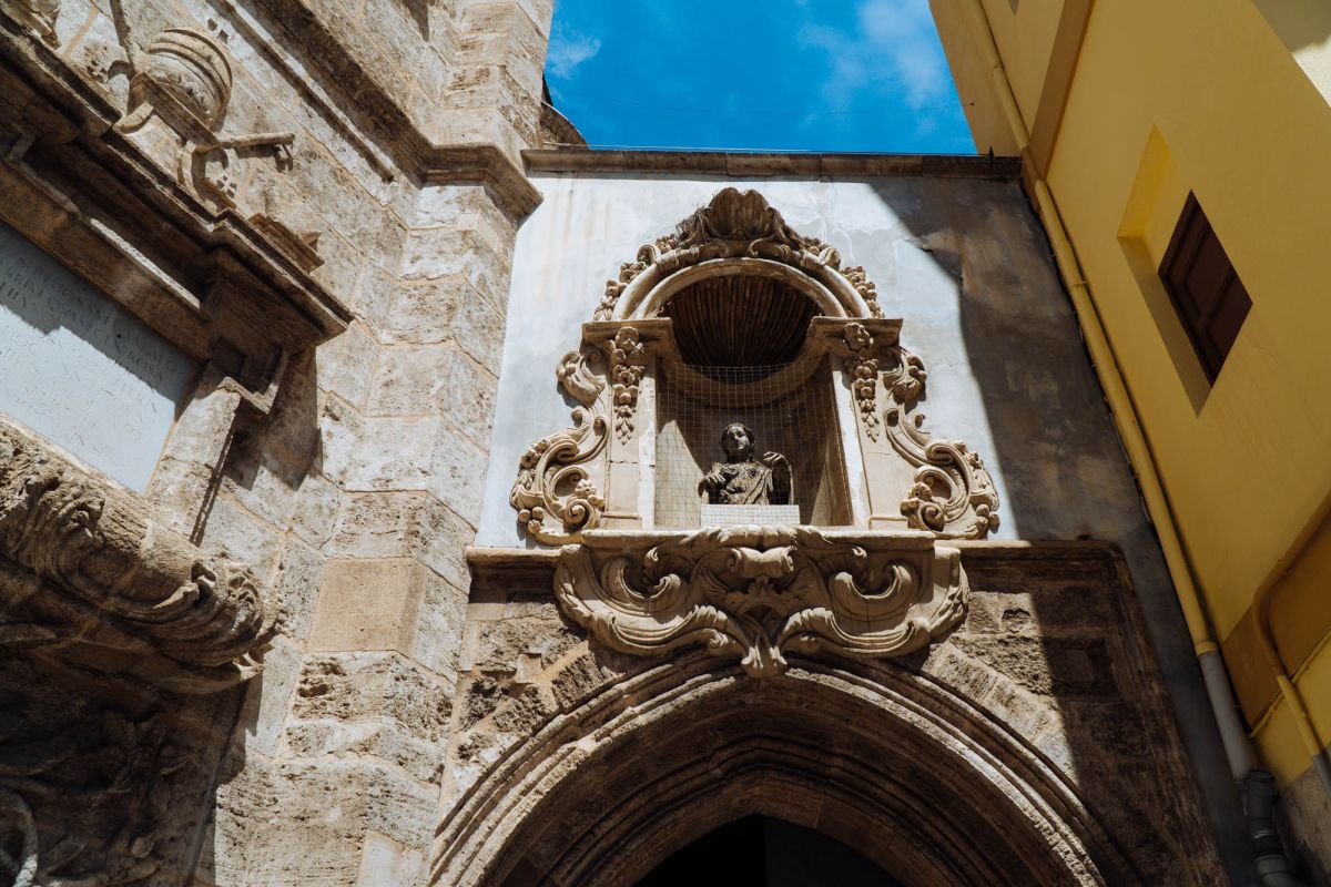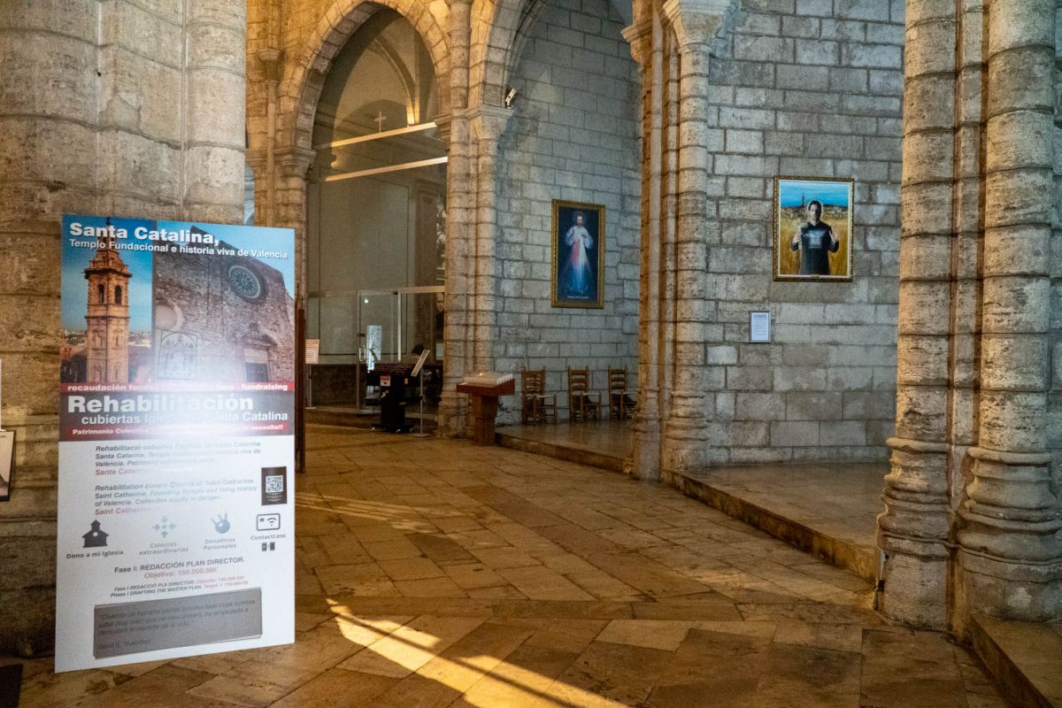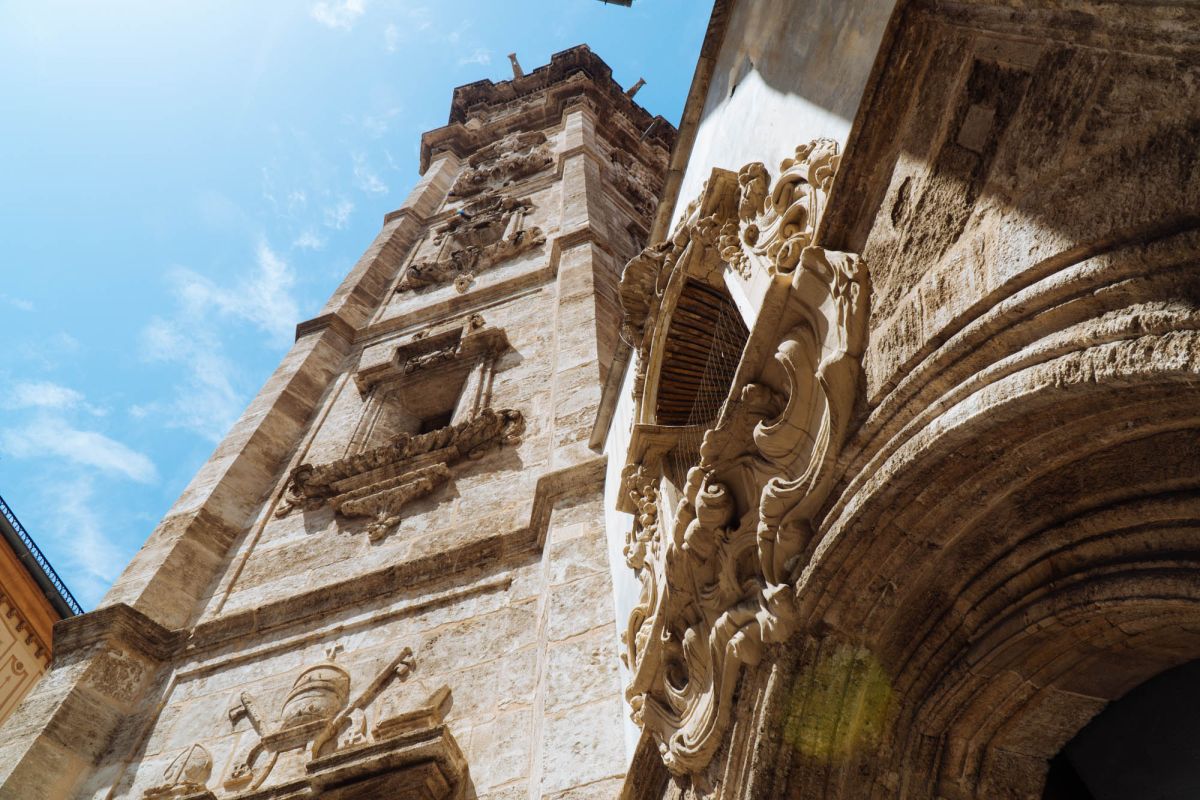 Церковь Святой Каталины расположена в историческом центре города Валенсия, в пяти минутах ходьбы от Кафедрального собора. Церковь была возведена на месте разрушенной арабской мечети в 1245 году, во времена правления короля Хайме I, завоевавшего Валенсию в 1238 году и изгнавшего мавров с территории королевства. Именно Хайме I повелел освятить новую церковь в честь мученицы Святой Каталины и основал приход, названный её именем. Изначально церковь была построена в стиле средиземноморской готики, однако, за последующие столетия её неоднократно перестраивали, благодаря чему внешний облик храма приобрёл черты других архитектурных стилей. Так, после сильного пожара 1548 года, уничтожившего главный алтарь и боковые капеллы церкви, здание пришлось практически заново перестраивать, во время реконструкции фасад церкви был оформлен в стиле Ренессанс. В 1785 году, следуя моде того времени, здание церкви Святой Каталины было перестроено в стиле барокко. В 1936 году, во время гражданской войны в Испании, в церкви снова вспыхнул пожар, нанесший зданию храма значительный ущерб. В ходе реставрационных работ, которые проводились в 1950-1960 годах под руководством архитектора Луиса Гая Рамоса, церкви был возвращён её первоначальный готический облик. Церковь имеет один неф, многоугольную апсиду с ребристыми готическими сводами, амбулаторий (обходную галерею за апсидой) и капеллы, разделённые боковыми контрфорсами. В храме три входа, главный портал, выходящий на площадь Лопе де Вега (Plaza de Lope de Vega), выполнен в стиле барокко и украшен рельефом с изображением королевской короны, над входом расположено большое окно-роза. Один из боковых входов ведёт на улицу Тапинерия, другой - на улицу Святой Каталины. Главной достопримечательностью церкви Святой Каталины является её 56-метровая колокольня, возведенная в 1688-1705 годах по проекту архитектора Хуана Баутисты Виньеса, имя которого выгравировано на мемориальной доске у подножия башни. Колокольня, построенная в стиле барокко, имеет шестиугольное форму, она состоит из четырёх ярусов, звонницы и венчающей её часовни с маленьким куполом и флюгером в виде креста. Этажи башни отделены друг от друга горизонтальными молдингами, каждая секция имеет окна, обрамлённые богатым барочным декором, выступы верхнего яруса украшены соломоновыми столбами (колоннами со спиральным стволом), часовню от звонницы отделяет ажурная каменная балюстрада. Шесть колоколов для церкви Святой Каталины были отлиты в Лондоне, в Валенсию они были доставлены в октябре 1729 года. 9 ноября 1729 года колокола были установлены на башне, а 21 ноября горожане услышали их первый звон. Подняться на самый верх колокольни можно по узкой винтовой лестнице, с вершины башни открывается красивый панорамный вид на Валенсию.