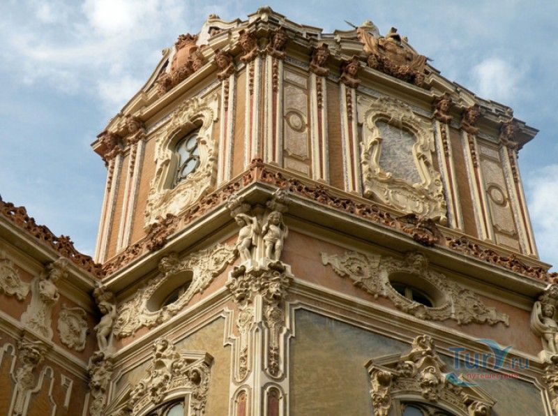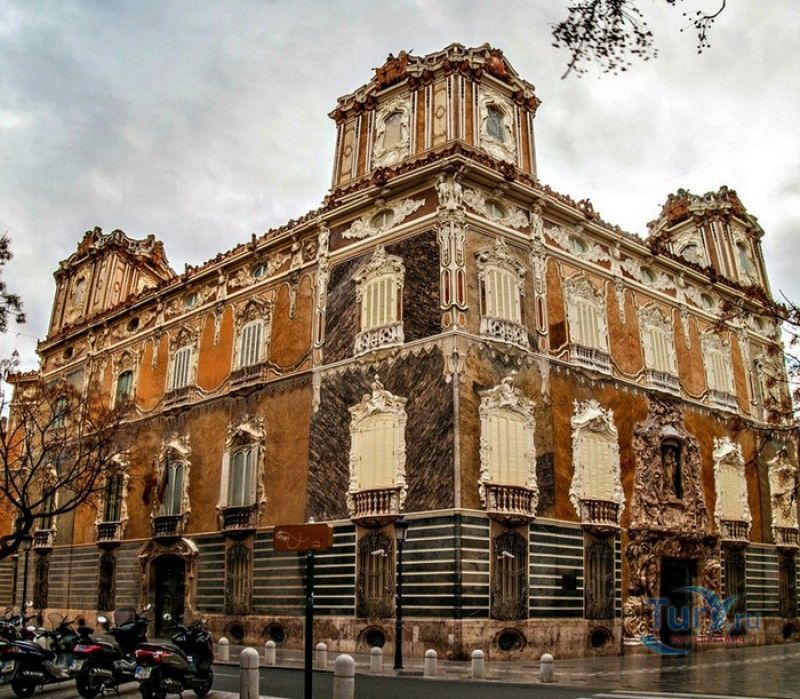 Национальный Музей Керамики и Предметов Роскоши имени Гонсалеса Марти занимает одно из красивейших исторических зданий города Валенсия - Дворец маркизов Дос Агуас (Palacio del Marqués de Dos Aguas). Дворец был построен в XV веке для одной из самых знатных и богатых валенсийских семей - аристократического рода Рабасса де Перельос, в 1496 году получившего титул баронов, а в конце XVII столетия - маркизов Дос-Агуас. Изначально дворец был возведен в позднеготическом стиле и представлял собой здание из трёх корпусов, расположенных вокруг внутреннего дворика. В северо-западном углу дворца располагалась зубчатая башня, фасад украшала длинная галерея. В 1740 году, по инициативе третьего маркиза Дос-Агуас, дворец был перестроен в стиле барокко. По четырём углам здания были возведены небольшие башни, фасады украшены декоративной лепниной и фресками. Но главной достопримечательностью здания стал его великолепный барочный портал, выполненный из алебастра валенсийским скульптором Игнасио Вергарой. На рельефах портала изображены обнаженные атланты, опирающиеся на сосуды, из которых извергаются потоки воды, - аллегорическое изображение рек Турия и Хукар, омывающих владения маркизов Дос Агуас (Dos Aguas в переводе означает "две реки"). На рельефах главного входа также изображены фигуры людей, животных, птиц и растительные орнаменты. Следующая перестройка здания была проведена в XIX веке, в ходе которой фасады дворца были украшены в эклектичном стиле, соединившем в себе элементы стилей рококо, ампир и восточные декоративные мотивы. Фрески, украшавшие фасад, были заменены на имитирующую мрамор штукатурку серо-розовых тонов, появились французские окна и балконы с волнообразными балюстрадами, кованые решётки и мраморный фонтан в центре внутреннего дворика. В нише верхней части барочного портала была установлена статуя Богоматери Розария работы мадридского скульптора Франсиско Молинелли. Внутренние помещения дворца были богато отделаны мрамором, позолотой и декоративной лепниной, украшены статуями, картинами и другими произведениями искусства. В великолепных залах дворца до наших дней сохранились оригинальная мебель из ценных пород дерева, потолочная и настенная росписи. В 1941 году Дворец маркизов Дос Агуас был объявлен историко-архитектурным памятником, а в 1949 году приобретен государством. После проведенной реставрации во дворце разместился Национальный Музей керамики и предметов роскоши имени Гонсалеса Марти, открывший свои двери посетителям 18 июня 1954 года. Основой музея стала коллекция керамики, собранная профессором Мануэлем Гонсалесом Марти и его женой. В музее представлена античная керамика, греческие и римские вазы, большая коллекция средневековой зелёной и силикатно-марганцевой керамики из Патерны, отделанная золотом керамика из Манисес, керамические изразцы и панно, изделия XVIII века, произведённые на Королевской фабрике в Алкоре, произведения XX века в стиле модерн, а также керамические изделия ручной работы, выполненные Пабло Пикассо и переданные в дар музею самим художником. Помимо уникальных образцов керамики, в музее выставлена также антикварная мебель, старинные ювелирные изделия, предметы из стекла и кожи, монеты и картины. Отдельного внимания заслуживают сами помещения дворца - великолепный бальный зал, личные апартаменты маркизо
