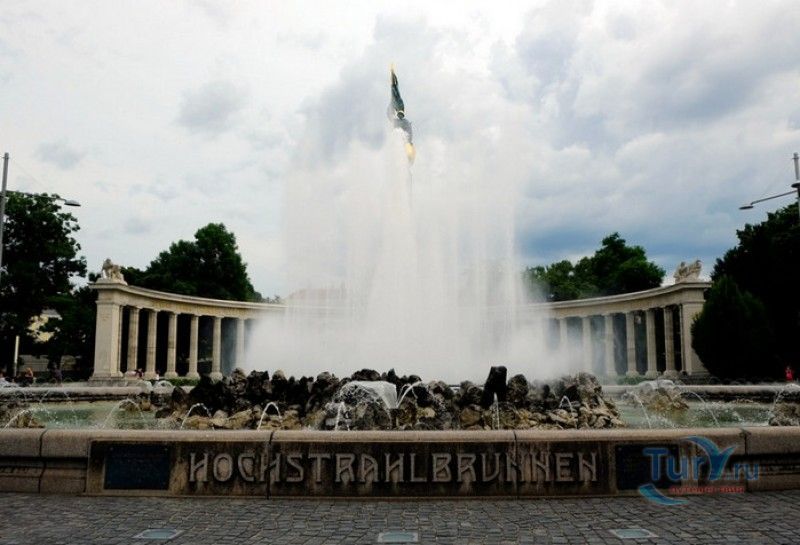 Фонтан Высокая Струя расположен в центре Вены, на площади Шварценберг. Он был установлен в 1873 году в честь завершения строительства первого венского водопровода высокого давления, обеспечившего столицу Австрии чистой питьевой водой, доставляемой из родниковых источников, расположенных в 95 километрах от Вены, на территории горного массива Ракс-Шнееберг-Группе (Rax-Schneeberg-Gruppe). Инициировал и финансировал постройку фонтана проектировщик и главный подрядчик строительных работ по прокладке водопровода инженер Антон Габриэлли, пожертвовавший на строительство фонтана 200 000 крон. Фонтан Высокая Струя был торжественно открыт 24 октября 1873 года в присутствии императора Франца Иосифа I. Задуманный как своеобразный памятник венскому водопроводу, фонтан символизирует собой круглогодичную бесперебойную подачу воды в дома жителей Вены. Фонтан выполнен в виде огромной круглой чаши, из которой бьют 365 маленьких струй, символизирующих количество дней в году. В центре чаши фонтана и по её окружности расположены семь скальных островков, олицетворяющих семь дней недели. В центре фонтана бьют двенадцать высоких струй, символизирующих количество месяцев в году, 30 менее высоких струй олицетворяют количество дней месяца, а самые низкие 24 струи символизируют 24 часа в сутках. В 1906 году фонтан был оборудован подсветкой - с наступлением темноты его струи стали подсвечиваться красными, розовыми, жёлтыми, фиолетовыми, синими и зелёными огнями. В 2013 году старая система подсветки фонтана была заменена на современные светодиодные лампы. Новые огни фонтана, при ежедневном включении подсветки на 4 часа, способны бесперебойно работать в течение 100 лет, в то время как старые лампы необходимо было заменять не реже одного раза в год. Ежедневно с 22 марта по 26 октября жители и гости Вены могут наблюдать красочное световое шоу фонтана Высокая Струя, которое начинается в 8 часов вечера и длится до полуночи. Фонтан Высокая Струя по праву считается главным украшением площади Шварценберг, а площадка вокруг него служит излюбленным местом отдыха для туристов и горожан.