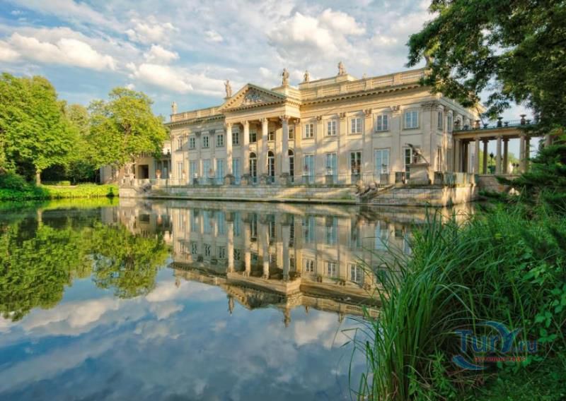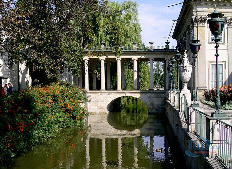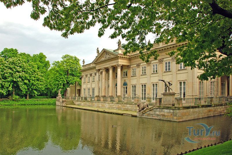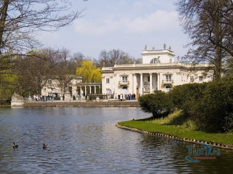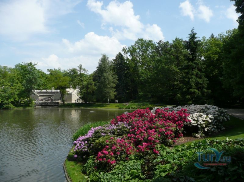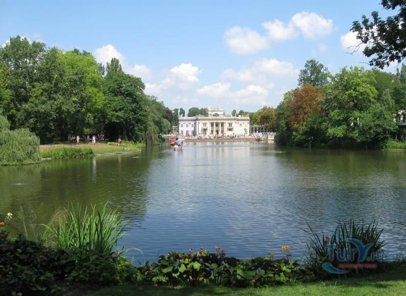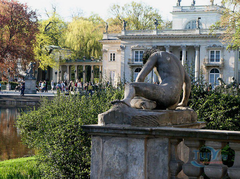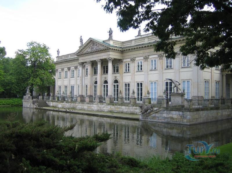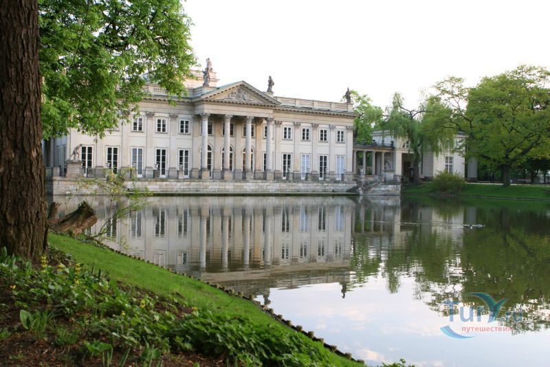 Дворцово-Парковый Комплекс Королевские Лазенки состоит из трех разных парков, которые стилистически отличаются друг от друга и были созданы в разное время: Королевский парк, Бельведерский парк и парк в стиле модерн. Территория комплекса занимает площадь 78 гектаров. По соседству с ними расположены павильоны 18-19 веков и парковые дворики, а также скульптуры 18-20 веков. В состав Дворцово-Паркового Комплекса входят старинные здания конца 18 века, кождое из которых имеет свое предназначение и название: Дворец на воде, Белый домик, Большой флигель Подхоронжувка, Охотничий дворец, Старая оранжерея с придворным Театром Станислава. Там же размещена глиптотека, собрание копий античных скульптур, закупленных в Западной Европе и доступных для учеников художественных школ. Дворец на воде является летней резиденцией последнего короля Польши Станислава Августа и представляет собой виллу-музей, в котором представлена экспозиция королевской коллекции живописи 17-18 веков и скульптуры. Король оставил как бы свое духовное завещание будущим поколениям. Белый домик представляет собой павильон, полный звуков камерного характера и гармонично вписывающийся в окружающий пейзаж. Расположен Белый домик рядом с Королевским Променадом. Перед южным фасадом здания стоят солнечные часы в форме преклоненного сатира, который держит на своей спине мраморный щит с позолоченными цифрами и бронзовыми стрелками. Большой флигель Подхоронжувка расположен рядом с Дворцом на воде и Охотничьим дворцом и имеет форму прямоугольной подковы. По инициативе короля здание построено в классическом стиле и предназначалось для проживания. Во времена короля из Большого флигеля во Дворец на воде проходил коридор, по которому приносили блюда на королевский стол. Позже коридор был разобран. В 1822 году в этом здании разместилась школа пехотинских офицеров. Отсюда и происходит название этого места. Это здание примечательно тем, что именно здесь Петр Высоцкий призвал подхорунжих к оружию, начав тем самым Ноябрьское восстание. Охотничий дворец построен в стиле раннего классицизма в форме квадрата с увеличивающими его боковыми павильонами и двухэтажными башенками, соединенными с главным корпусом. На центральном фронтоне хорошо видна ниша с фигурами Зефира и Флоры. Особого внимания заслуживает французская женская дорожная библиотека конца 18 века, содержащая 210 миниатюрных фолиантов в кожаных переплетах. Старая оранжерея находится в западной части парка и построена в классическом стиле в форме прямоугольной подковы. Используется оранжерея для сохранения экзотических деревьев и кустарников в зимнее время, а летом растения выставляются в парке для его украшения. В восточном крыле Старой оранжереи расположен Театр Станислава, который имеет богатые театральные декорации, показывающие изысканный вкус Станислава Августа. Это один из немногих подлинных придворных театров 18 века, которые сохранились до наших дней. Внимание посетителей привлекают женские фигуры из искусственного мрамора, одетые в античные одежды и держащие в руках деревянные позолоченные подсвечники на 6 свечей. Театральный зал выдержан в кремовых, золотых, голубых и бежевых цветах. В здании Старой оранжереи находится коллекция гипсовых копий античных скульптур, собранных королем Станиславом Августом, 
