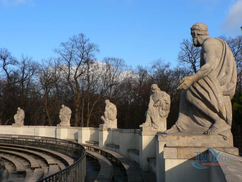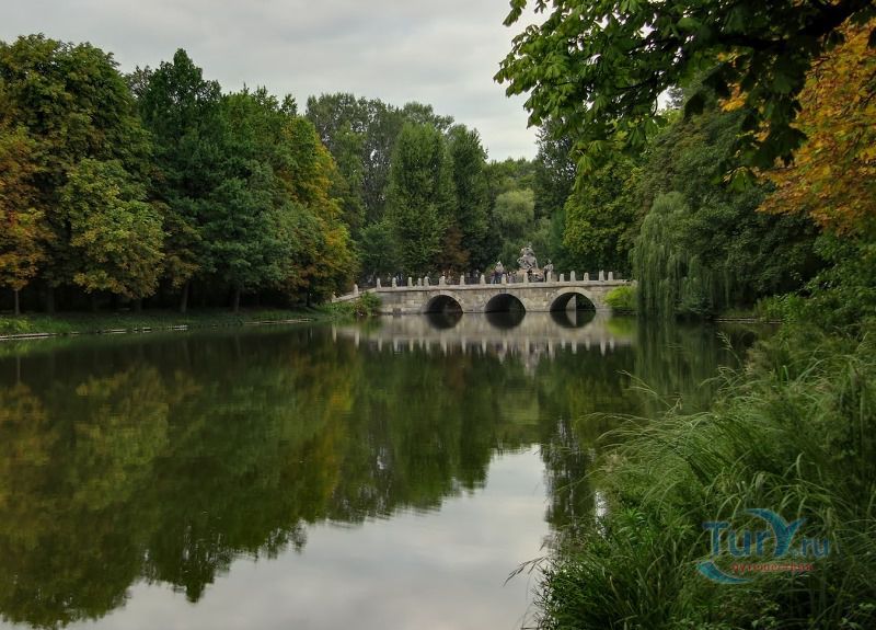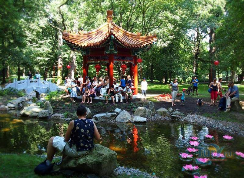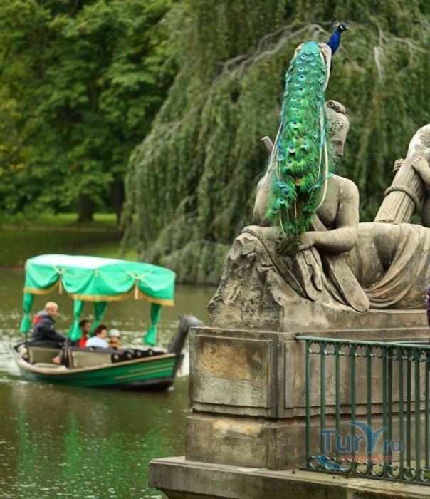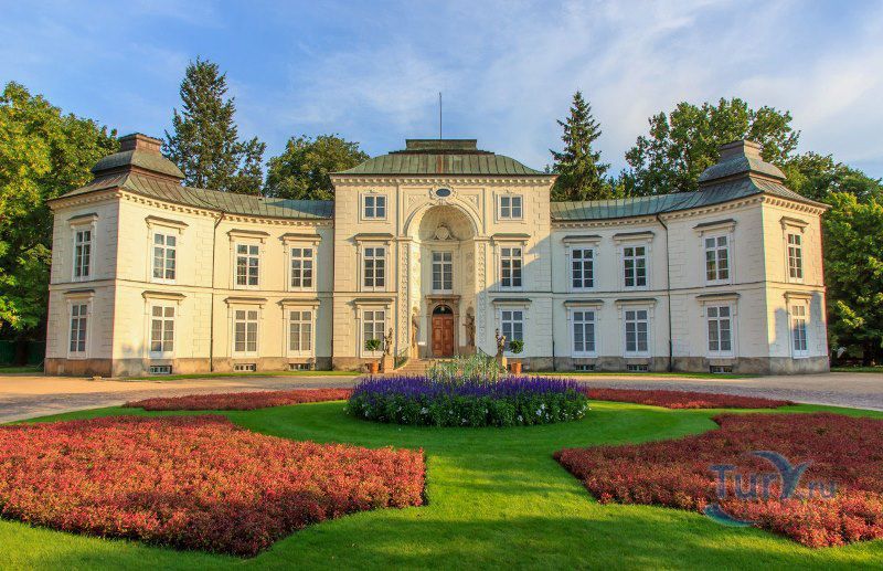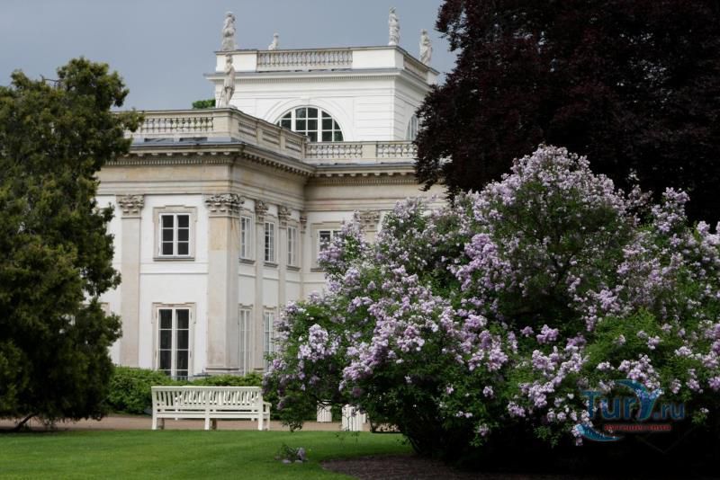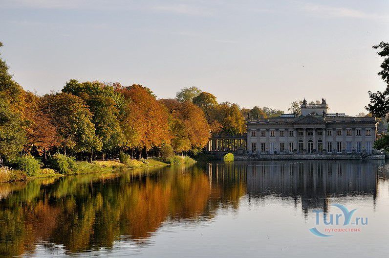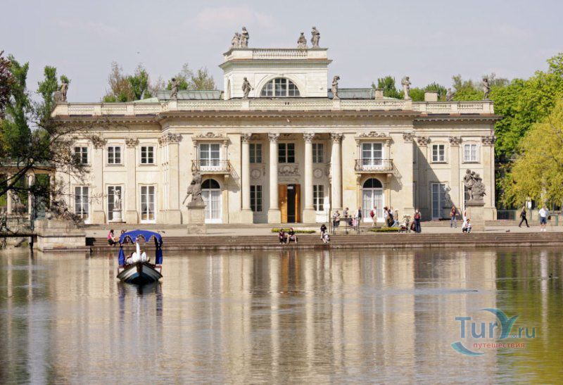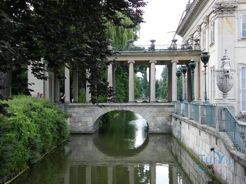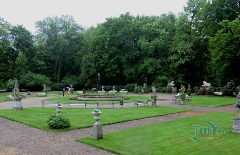 Дворцово-Парковый Комплекс Королевские Лазенки состоит из трех разных парков, которые стилистически отличаются друг от друга и были созданы в разное время: Королевский парк, Бельведерский парк и парк в стиле модерн. Территория комплекса занимает площадь 78 гектаров. По соседству с ними расположены павильоны 18-19 веков и парковые дворики, а также скульптуры 18-20 веков. В состав Дворцово-Паркового Комплекса входят старинные здания конца 18 века, кождое из которых имеет свое предназначение и название: Дворец на воде, Белый домик, Большой флигель Подхоронжувка, Охотничий дворец, Старая оранжерея с придворным Театром Станислава. Там же размещена глиптотека, собрание копий античных скульптур, закупленных в Западной Европе и доступных для учеников художественных школ. Дворец на воде является летней резиденцией последнего короля Польши Станислава Августа и представляет собой виллу-музей, в котором представлена экспозиция королевской коллекции живописи 17-18 веков и скульптуры. Король оставил как бы свое духовное завещание будущим поколениям. Белый домик представляет собой павильон, полный звуков камерного характера и гармонично вписывающийся в окружающий пейзаж. Расположен Белый домик рядом с Королевским Променадом. Перед южным фасадом здания стоят солнечные часы в форме преклоненного сатира, который держит на своей спине мраморный щит с позолоченными цифрами и бронзовыми стрелками. Большой флигель Подхоронжувка расположен рядом с Дворцом на воде и Охотничьим дворцом и имеет форму прямоугольной подковы. По инициативе короля здание построено в классическом стиле и предназначалось для проживания. Во времена короля из Большого флигеля во Дворец на воде проходил коридор, по которому приносили блюда на королевский стол. Позже коридор был разобран. В 1822 году в этом здании разместилась школа пехотинских офицеров. Отсюда и происходит название этого места. Это здание примечательно тем, что именно здесь Петр Высоцкий призвал подхорунжих к оружию, начав тем самым Ноябрьское восстание. Охотничий дворец построен в стиле раннего классицизма в форме квадрата с увеличивающими его боковыми павильонами и двухэтажными башенками, соединенными с главным корпусом. На центральном фронтоне хорошо видна ниша с фигурами Зефира и Флоры. Особого внимания заслуживает французская женская дорожная библиотека конца 18 века, содержащая 210 миниатюрных фолиантов в кожаных переплетах. Старая оранжерея находится в западной части парка и построена в классическом стиле в форме прямоугольной подковы. Используется оранжерея для сохранения экзотических деревьев и кустарников в зимнее время, а летом растения выставляются в парке для его украшения. В восточном крыле Старой оранжереи расположен Театр Станислава, который имеет богатые театральные декорации, показывающие изысканный вкус Станислава Августа. Это один из немногих подлинных придворных театров 18 века, которые сохранились до наших дней. Внимание посетителей привлекают женские фигуры из искусственного мрамора, одетые в античные одежды и держащие в руках деревянные позолоченные подсвечники на 6 свечей. Театральный зал выдержан в кремовых, золотых, голубых и бежевых цветах. В здании Старой оранжереи находится коллекция гипсовых копий античных скульптур, собранных королем Станиславом Августом, 