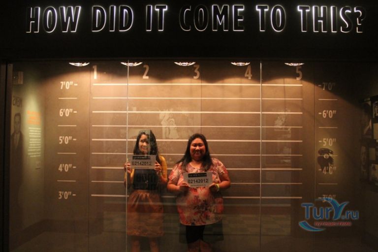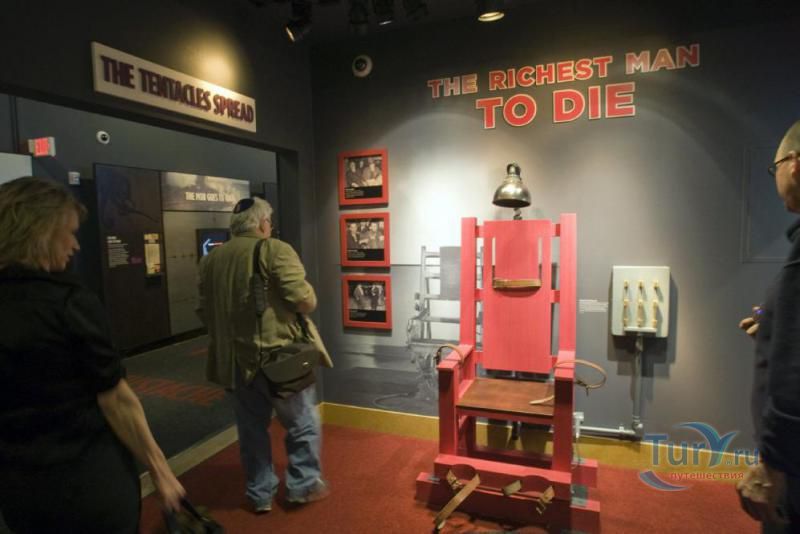 Посетители музея могут посидеть на настоящем, но уже не работающем электрическом стуле, пострелять из автомата или пройти процедуру допроса в полиции.