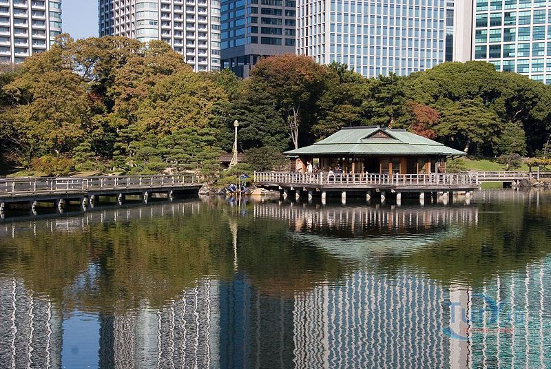 Дворцовый сад расположен у места впадения реки Сумида в Токийский залив, этот сад площадью 25 га был построен в 1654 году для отдыха семьи сёгуна, который охотился здесь на уток. В 1879 году Император Мэйдзи угощал зелёным чаем президента США Улисс С. Гранта в чайном домике Накадзима. В точности восстановленный чайный домик Накадзима и сейчас словно бы плывёт по поверхности пруда. Также как и император с президентом Вы можете здесь побаловать себя зелёным чаем и сладостями.