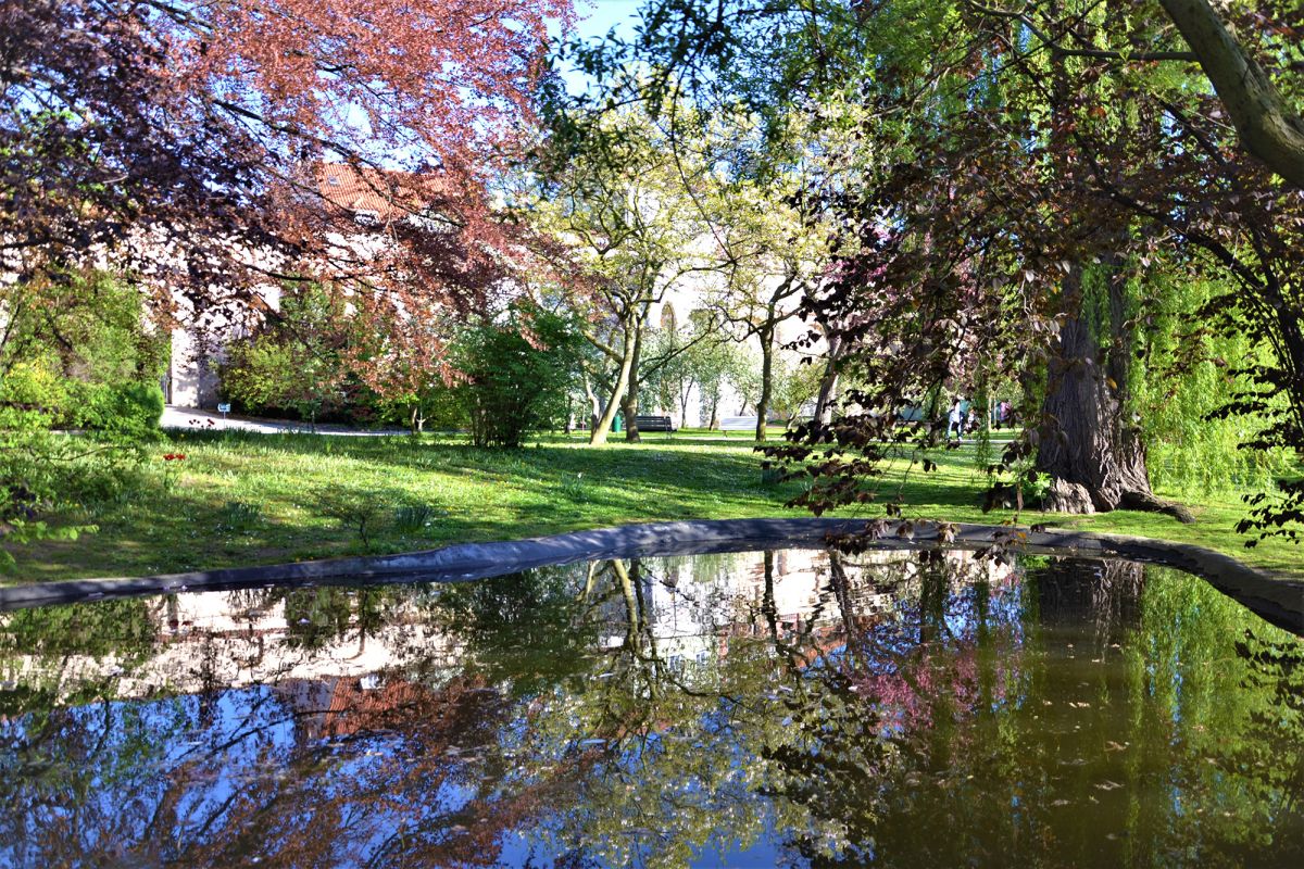 Сад считается самым старым из сохранившихся садов Праги. Его умиротворенная обстановка унаследована со времен средневековья, когда сад принадлежал монастырю. От суеты города можно отдохнуть на скамейке, под сенью листвы, восхищаясь капеллой св. Ильи (раннее барокко) в виде грота, или солнечными часами 17-го века, украшающими стену монастырского флигеля. Широкая лестница ведет к розарию и на террасу со скамейками и беседками.