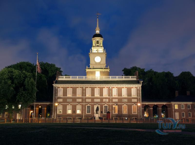 Independence Hall был построен в 1753 году и назывался тогда Pennsylvania State House. В те времена это было самое претенциозное здание во всех тринадцати колониях, оно было и остается национальным символом. Именно здесь была подписана знаменитая американская Декларация Независимости. В обсуждении статей декларации принимали участие 12 делегаций от 13 колоний. Председателем совета был Президент Джордж Вашингтон. Само обсуждение продолжалось с мая по сентябрь 1787 года. В итоге была создана декларация, состоящая из преамбулы и семи статей, которую подписали все 12 делегаций, а в марте 1789 года, после ратификации декларации последним штатом, Нью Хемпширом, она вступила в силу.