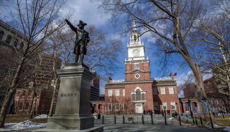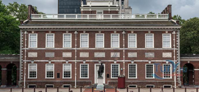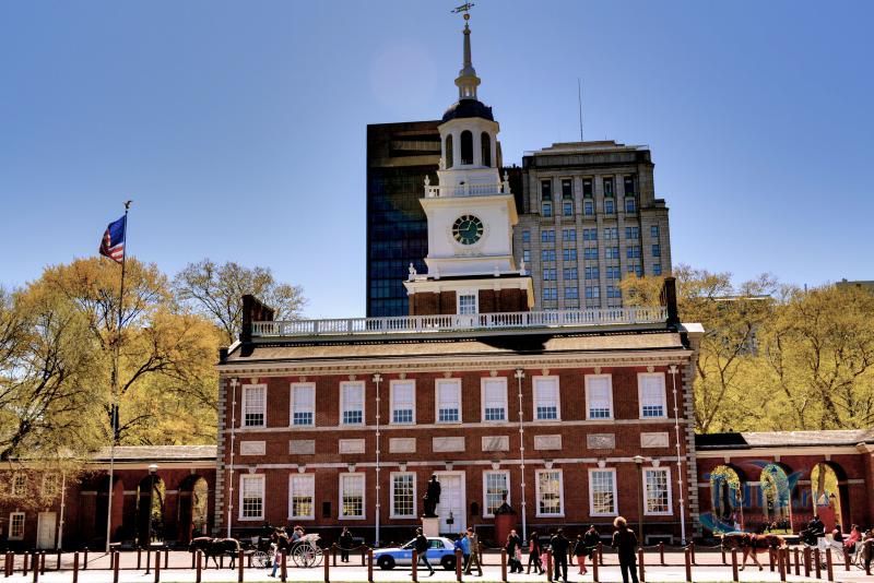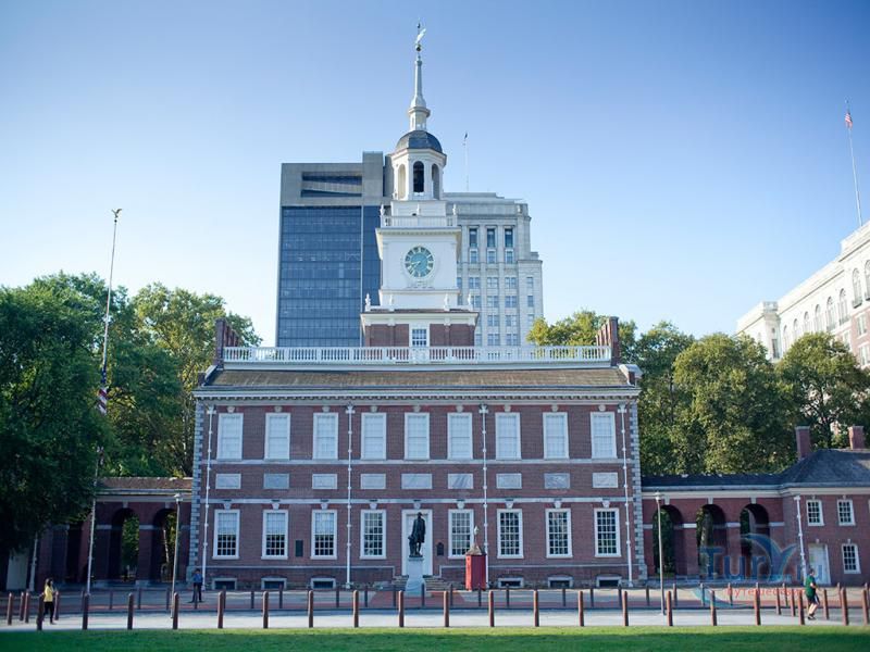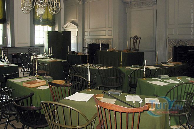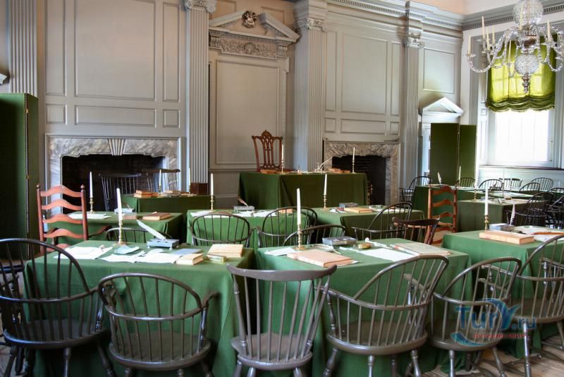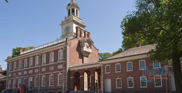 Independence Hall был построен в 1753 году и назывался тогда Pennsylvania State House. В те времена это было самое претенциозное здание во всех тринадцати колониях, оно было и остается национальным символом. Именно здесь была подписана знаменитая американская Декларация Независимости. В обсуждении статей декларации принимали участие 12 делегаций от 13 колоний. Председателем совета был Президент Джордж Вашингтон. Само обсуждение продолжалось с мая по сентябрь 1787 года. В итоге была создана декларация, состоящая из преамбулы и семи статей, которую подписали все 12 делегаций, а в марте 1789 года, после ратификации декларации последним штатом, Нью Хемпширом, она вступила в силу.