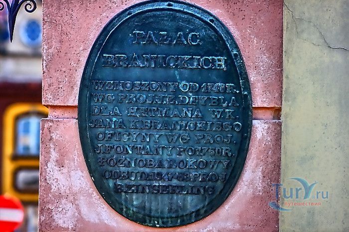 Один из самых роскошных особняков польской знати в Варшаве, дворец Браницких, расположен рядом с Королевским замком. В первой половине XVII века на этом месте находилась резиденция шляхетского рода Сапеги. В XVIII столетии Стефан Миколай Браницкий приобрёл земельный участок, на котором в 1743-1750 годах был возведен двухэтажный особняк в стиле позднего барокко. Автором проекта был архитектор Ян Зигмунт Дейбель. Дворец имеет два больших крыла, которые примыкают под прямым углом к главному корпусу здания и образуют большой двор, закрытый оградой со стороны улицы Подвале. Оба крыла венчают декоративные стенки над карнизами (аттики), украшенные скульптурами и большими окнами-люкарнами. Дворцовый вход оформлен портиком с аттиком, на котором установлены скульптуры работы Яна Хризостома Редлера. Оформлением интерьеров руководил Якуб Фонтана. В 1771-1804 годах дворец был важным центром культурной жизни Варшавы. Получить приглашение на рауты и балы, которые организовывала графиня Изабелла Браницкая, урождённая Понятовская, сестра польского короля Станислава Августа Понятовского, считалось величайшей честью. С 1918 года дворец стал принадлежать Францишеку Потоцкому, а после Второй мировой войны был конфискован на основании декрета о национализации от 26 октября 1945 года. К этому времени особняк имел значительные разрушения, полученные во время осады Варшавы в 1939 году и Варшавского восстания 1944 года. Реконструкция здания была проведена 1947-1953 годах, работами руководил архитектор Цинзерлинг. В послевоенные годы в здании располагались Министерство образования и науки, Комитета по науке и технике и Варшавский муниципалитет. В 2008 году Дворец Браницких был возвращён своим владельцам - наследникам графа Потоцкого. В начале 2009 года городские власти освободили помещение, а Потоцкие приняли решение сдавать особняк в аренду. Дворец вместе с хозяйственными постройками и оградой внесен в список памятников культуры Польши.